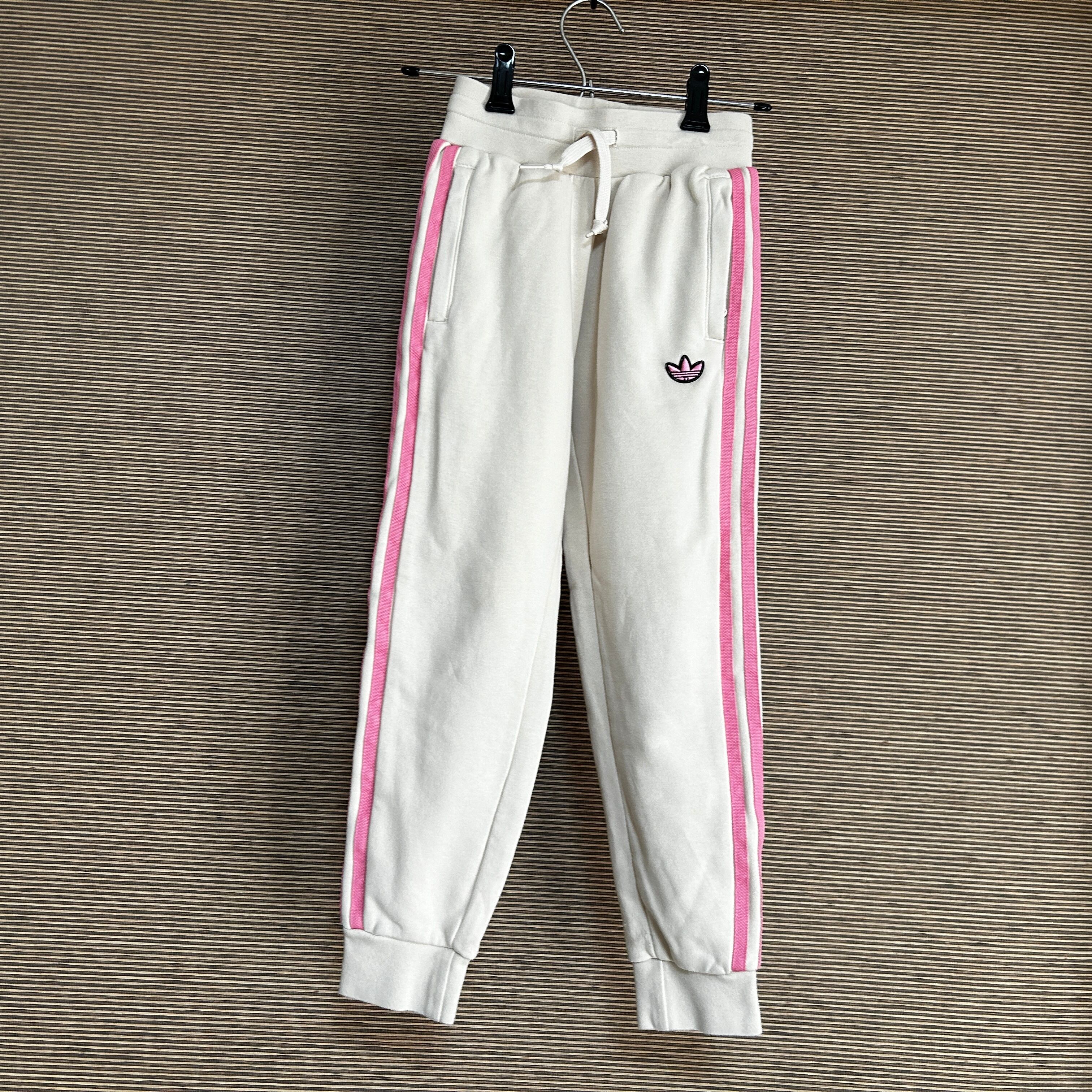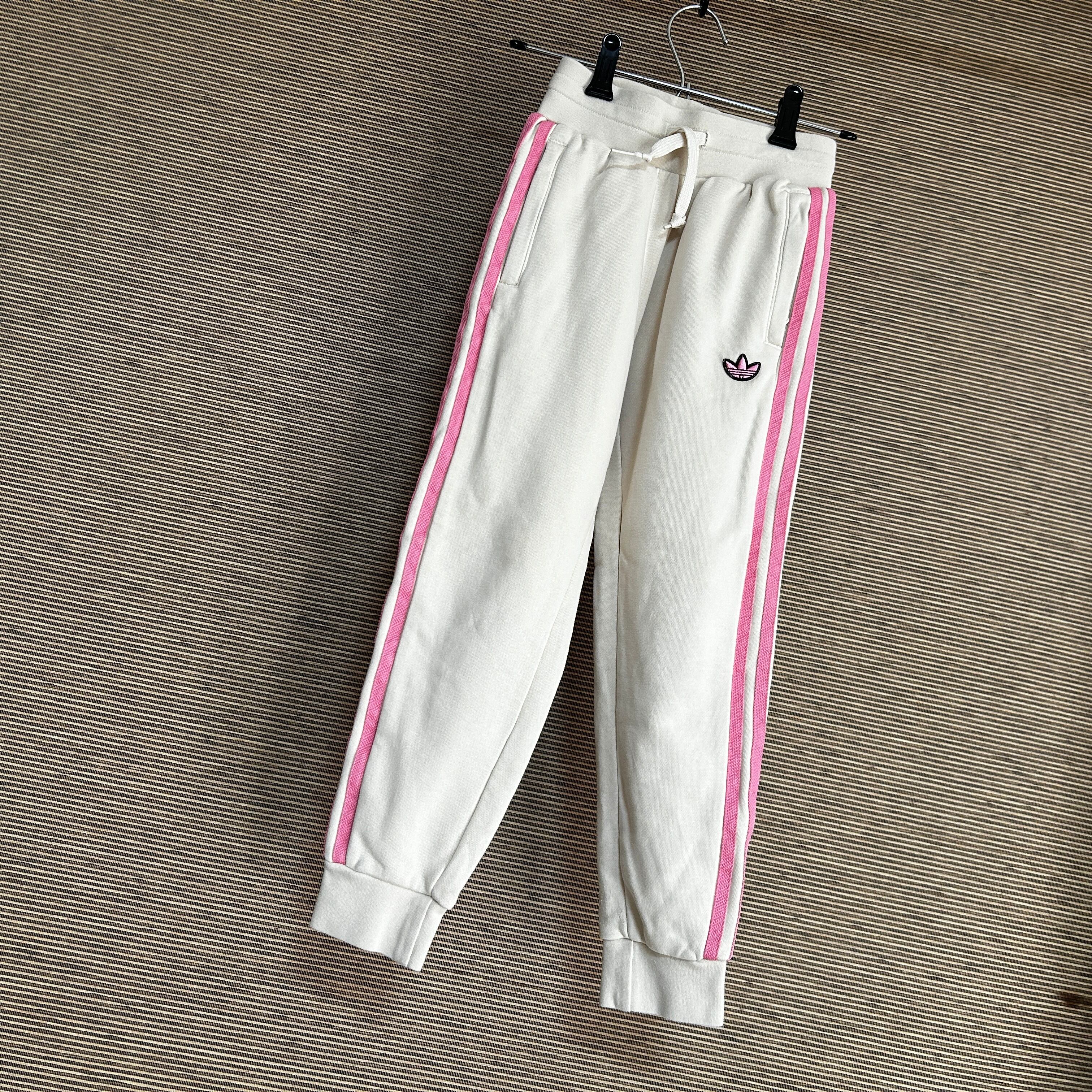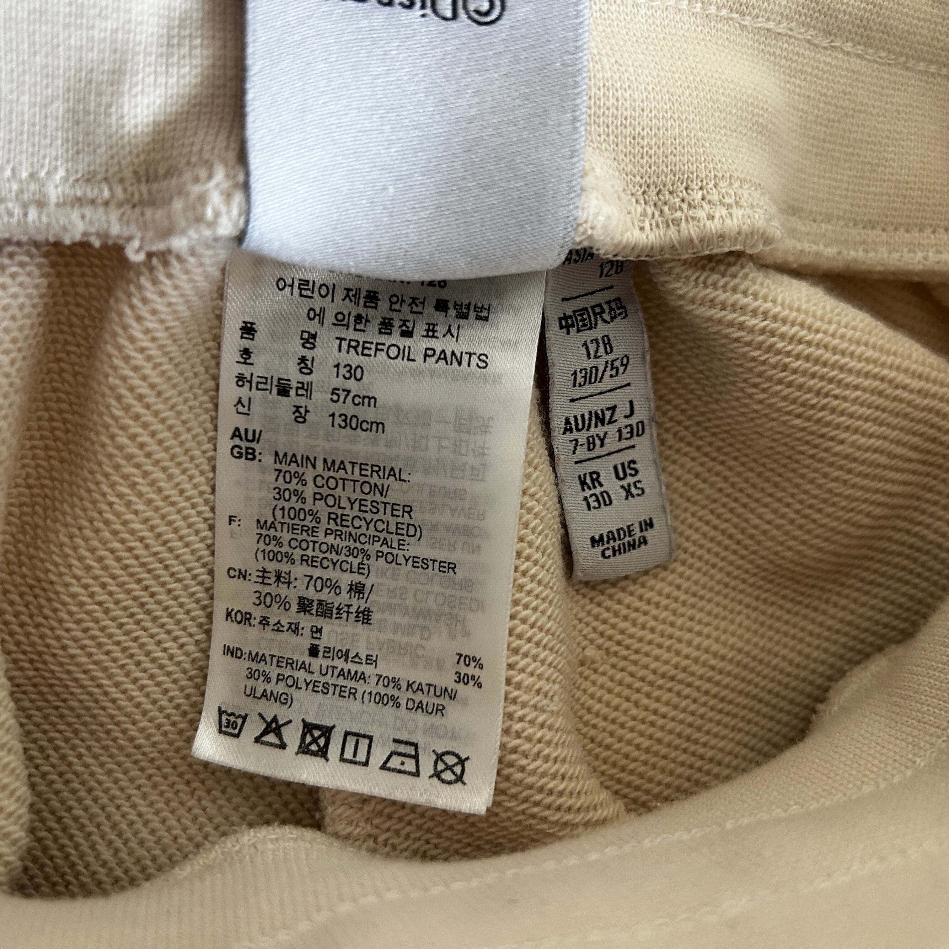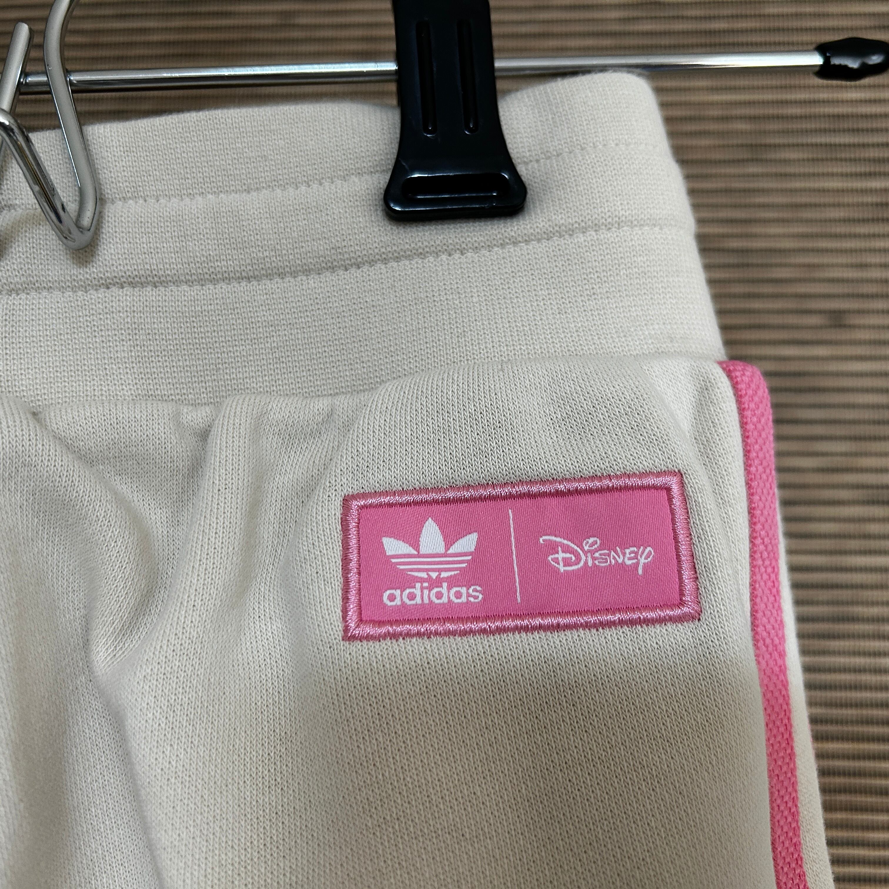 アディダスディズニーコラボ スウェットパンツ 子供130 ベージュトレフォイルJ1 古着 ピンク 裏毛