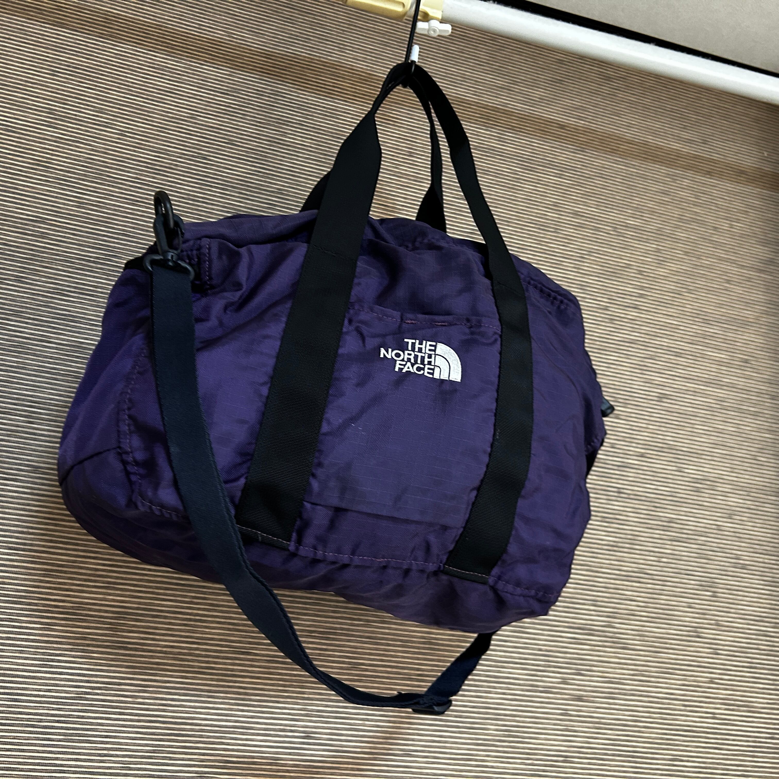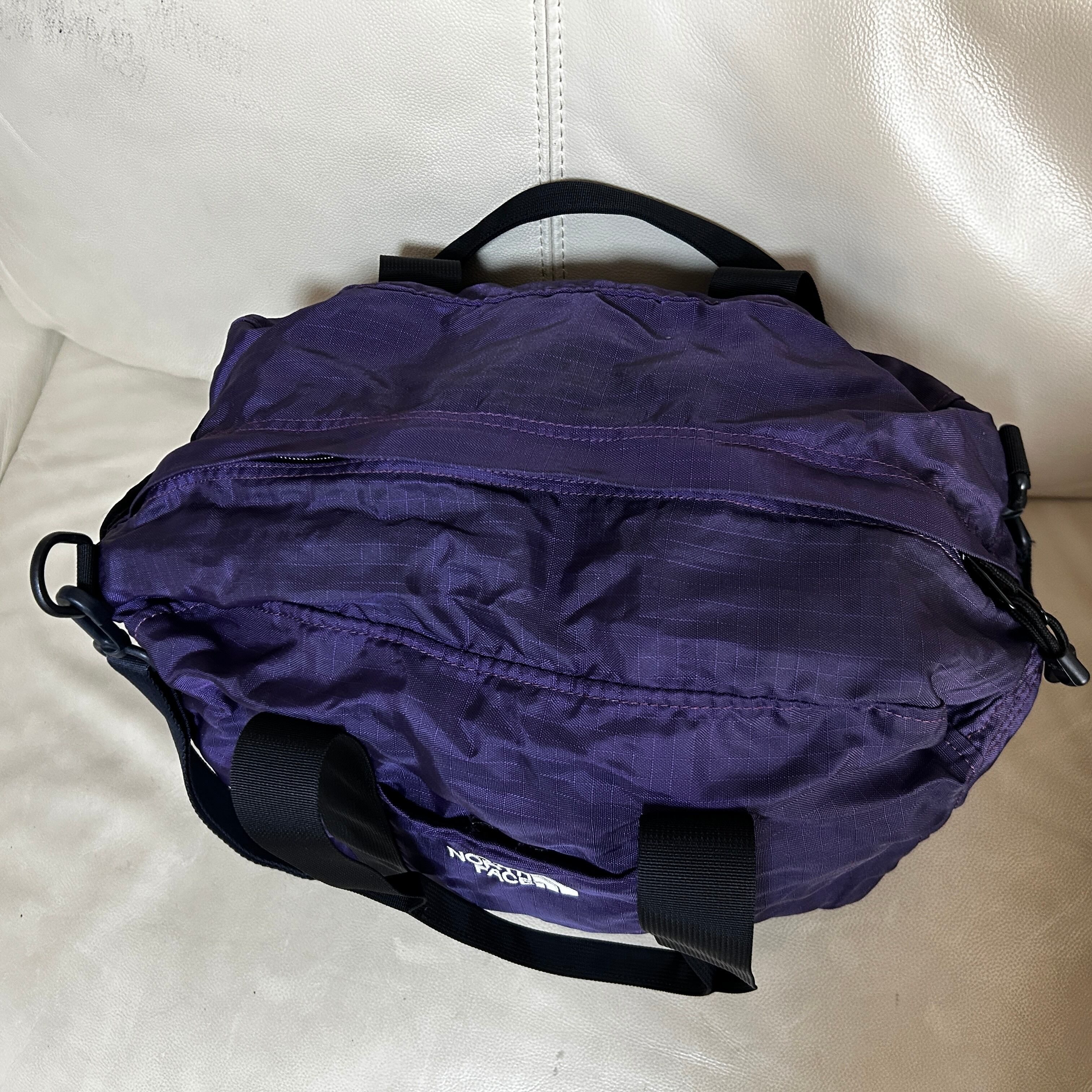ノースフェイス ボストンバッグ ショルダーバッグカーゴバッグ19L紫パープルJ1 古着 ワンポイントロゴ 刺繍