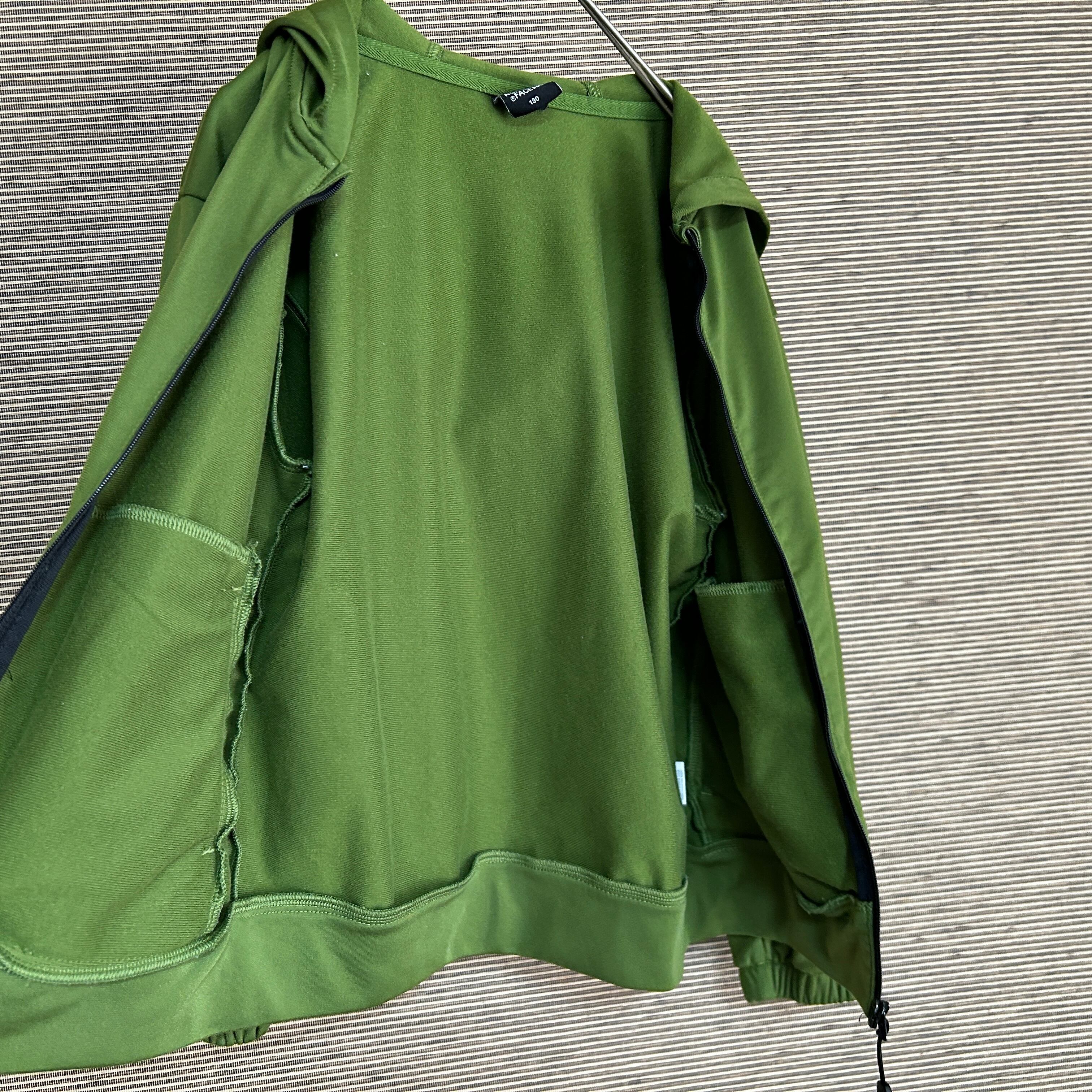 ノースフェイス フード付きトラックジャケット ジャージ子供130キッズグリーンJ 古着 デカロゴ ビッグロゴ 袖ロゴ 人気カラー