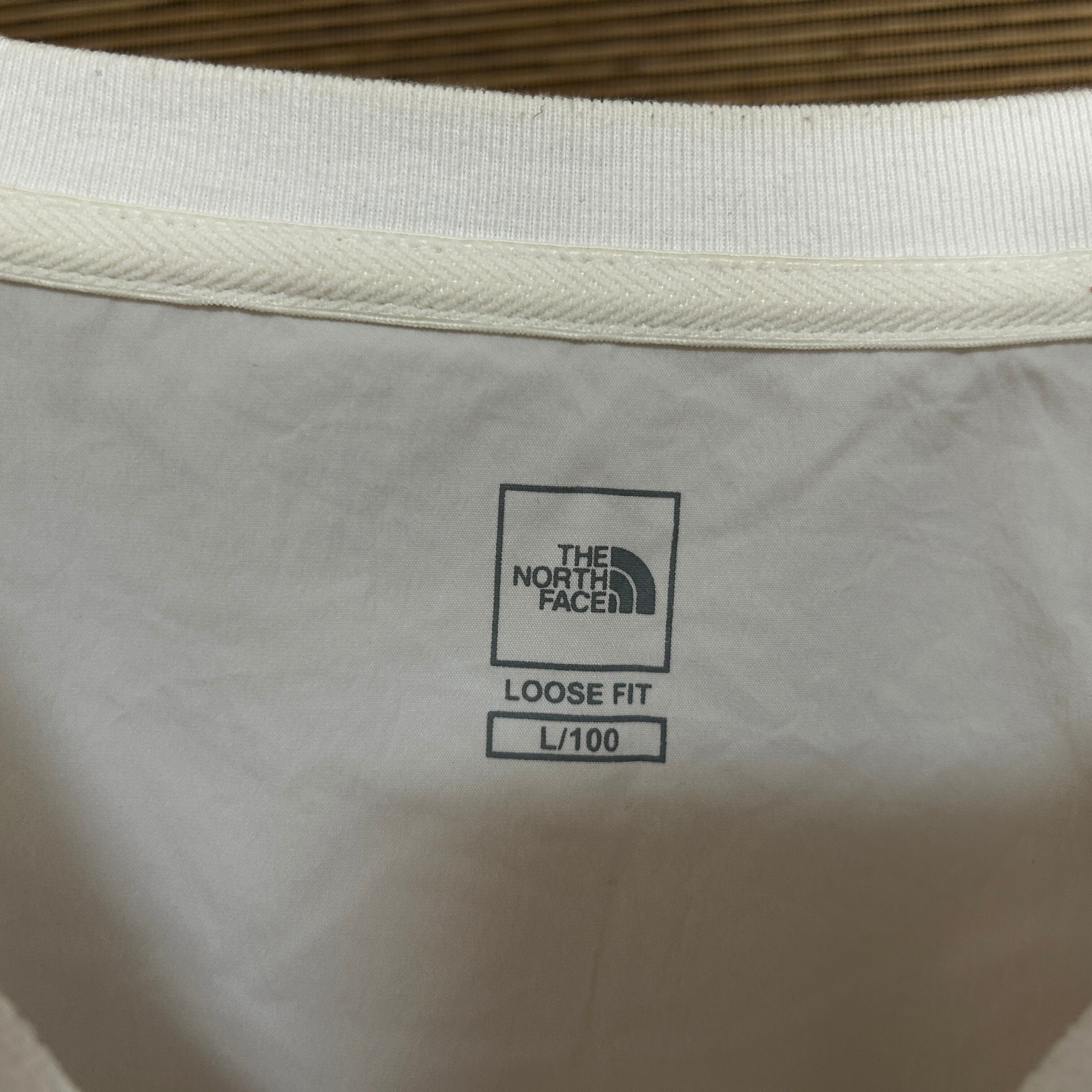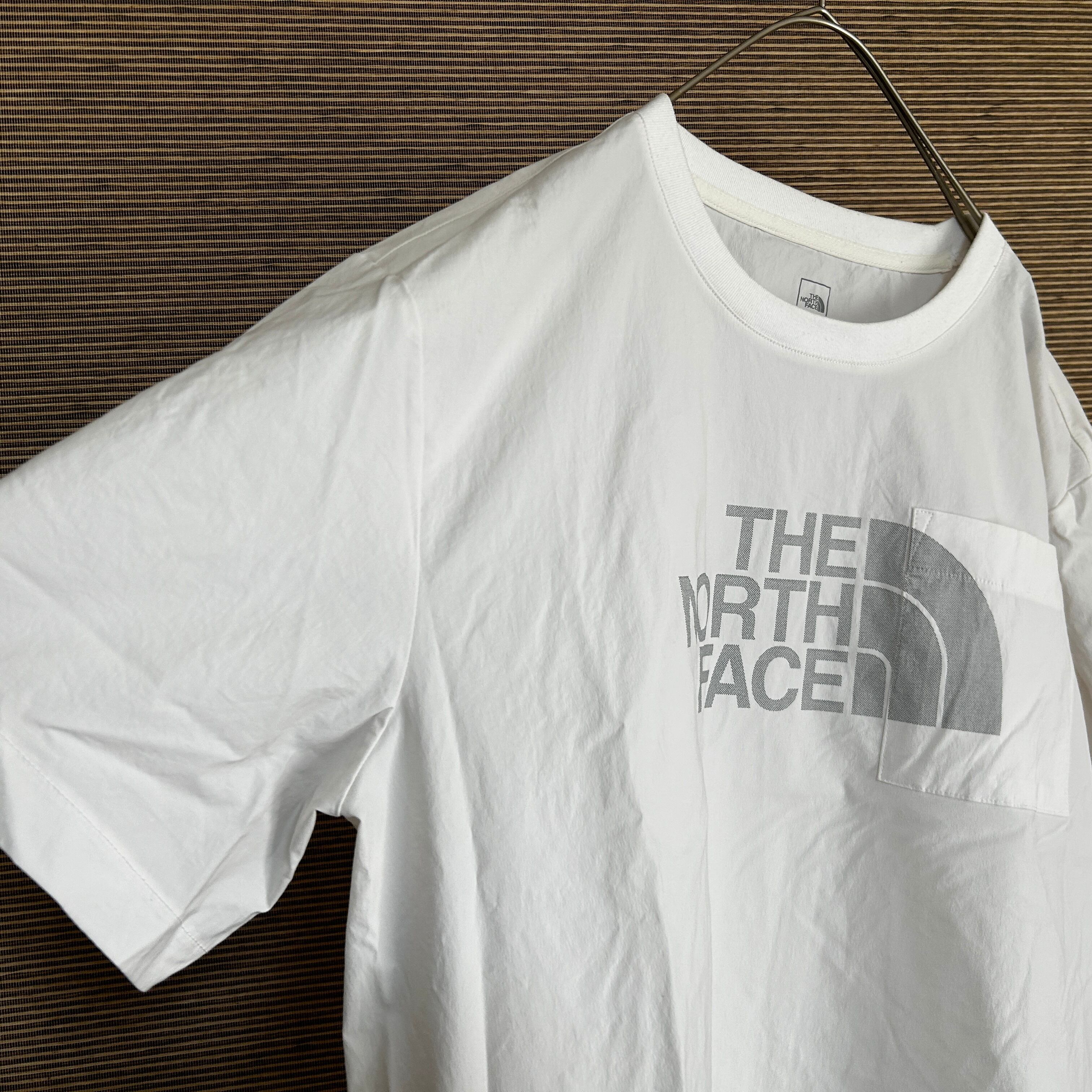 ノースフェイス 半袖ピステ デカロゴ 白 胸ポケットストレッチシャカシャカJ 古着 人気 ビッグロゴ スポーツ アウトドア