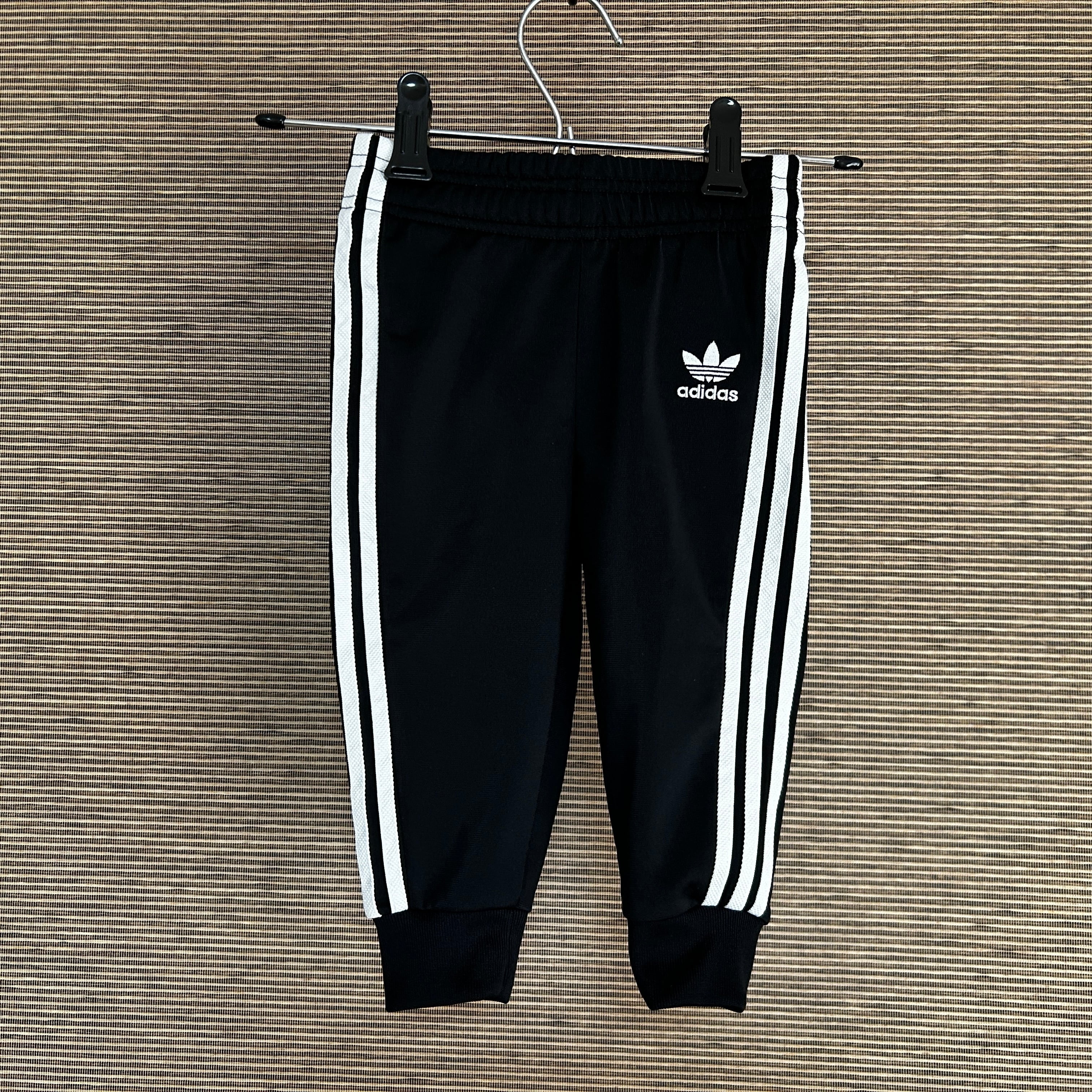 アディダス ジャージパンツトラックパンツ 子供80SSTキッズベビー黒白J 古着 スーパースタートレフォイルロ ブラック