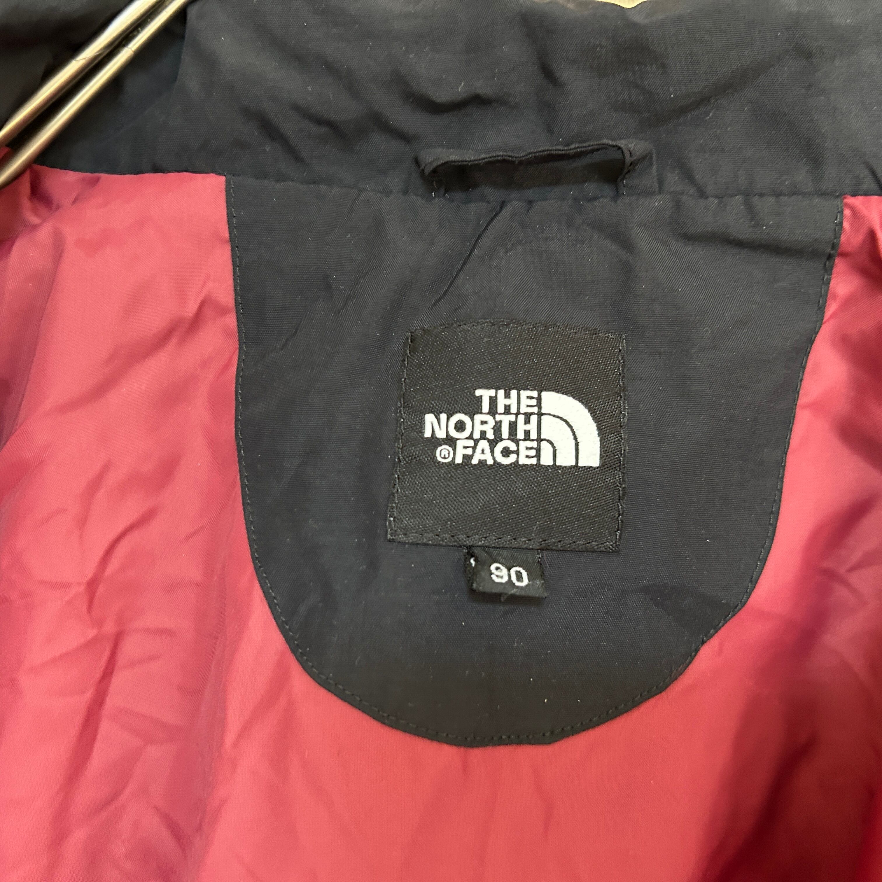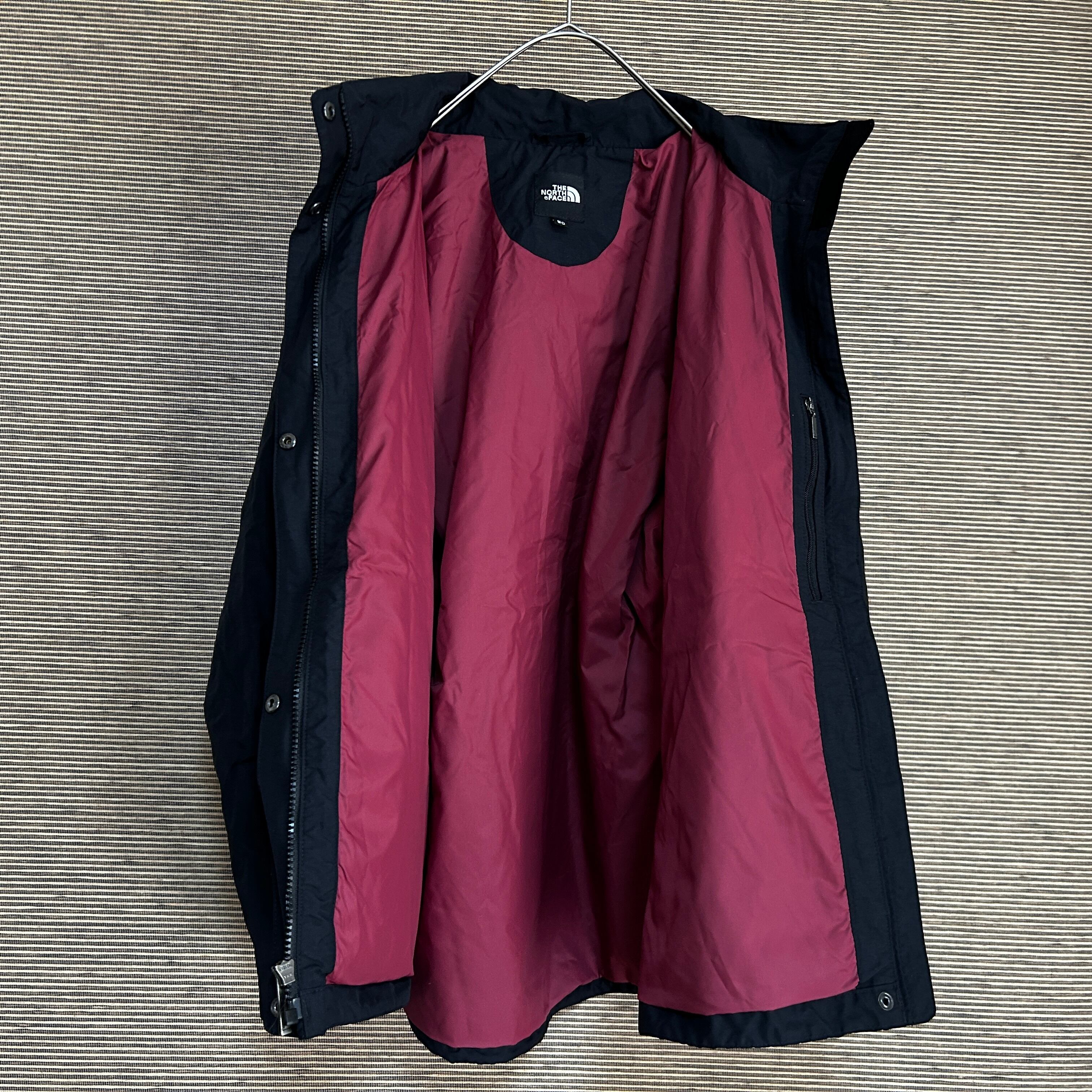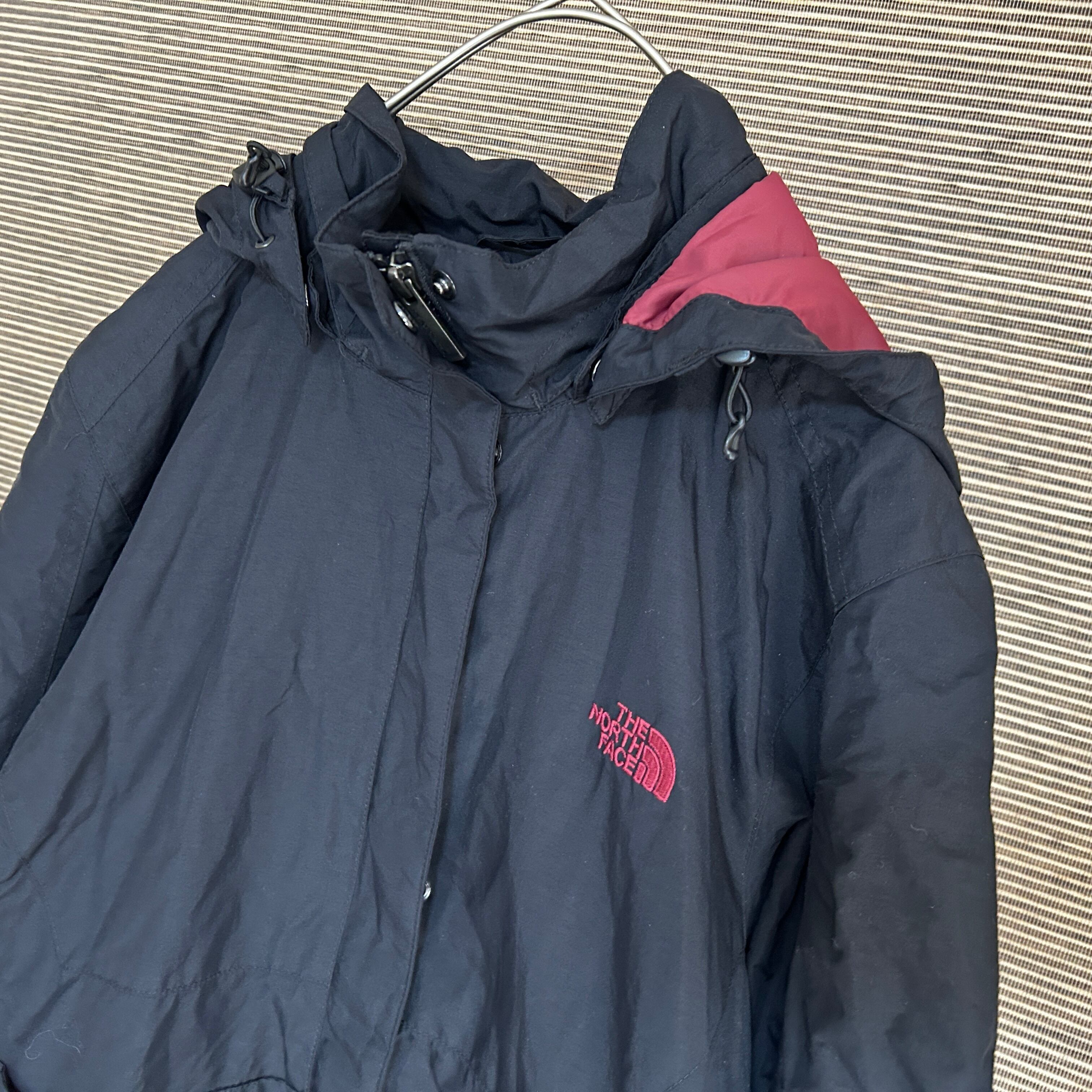 ノースフェイス マウンテンパーカー 黒ブラックワインレッド 刺繍 ワンポイントJ 古着 レディース
