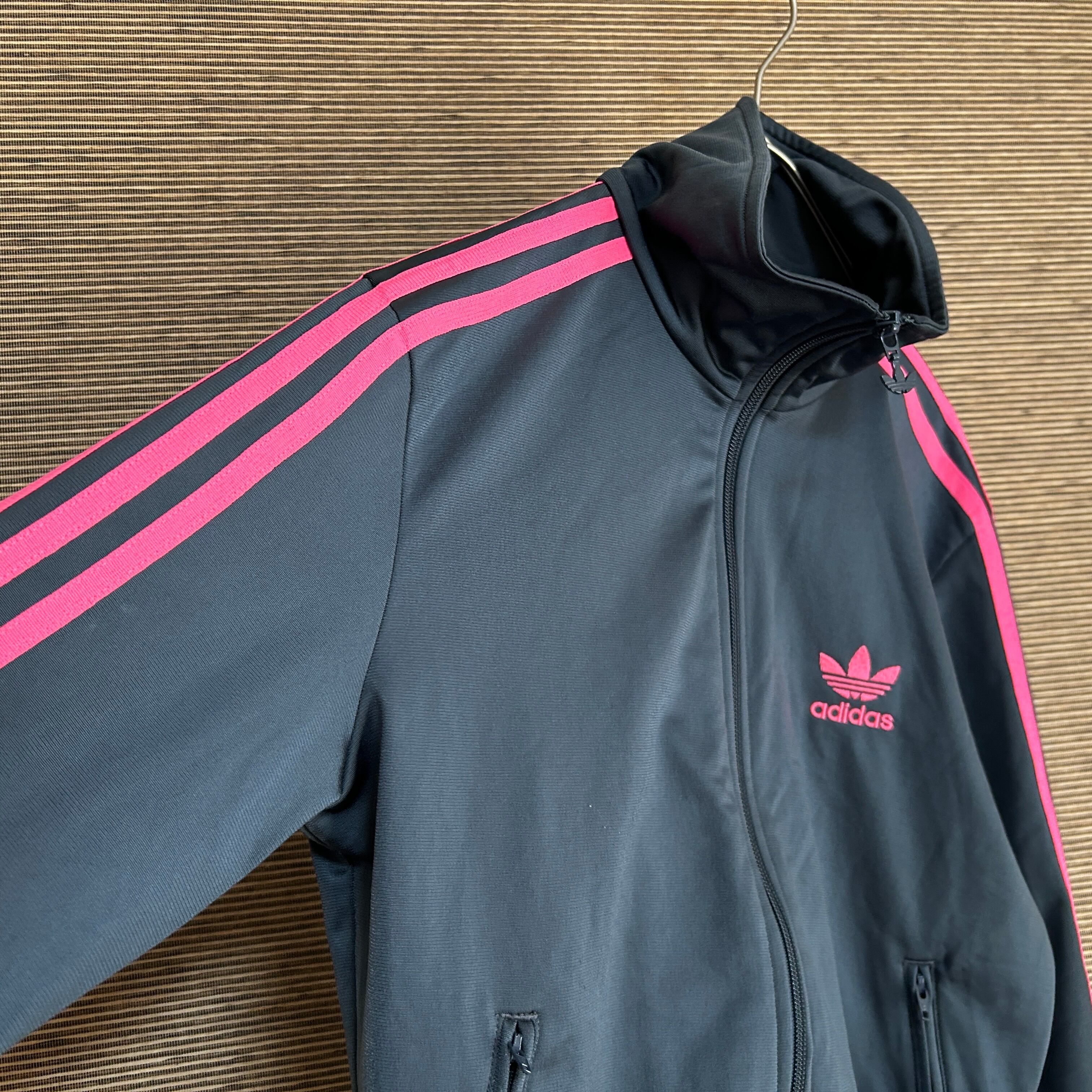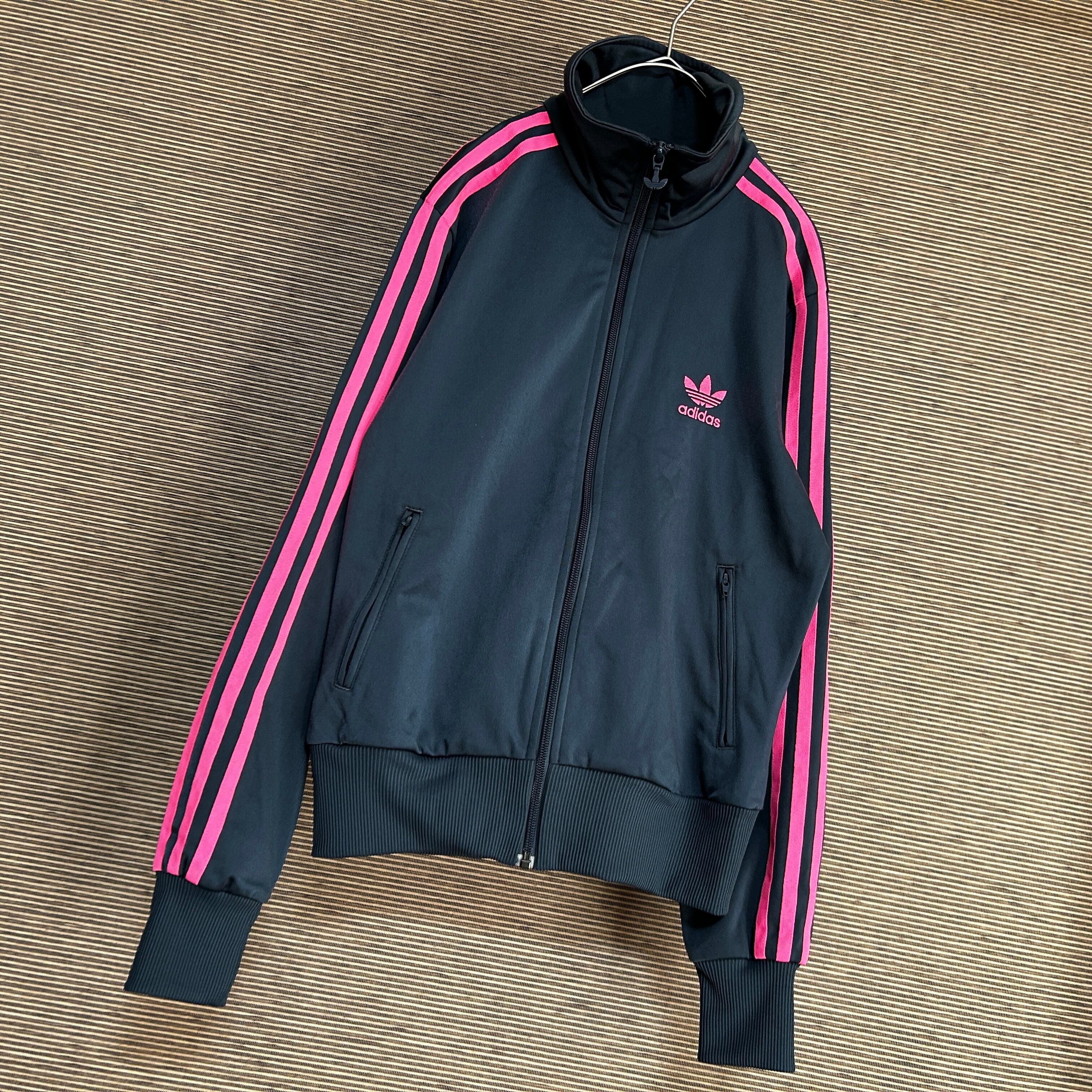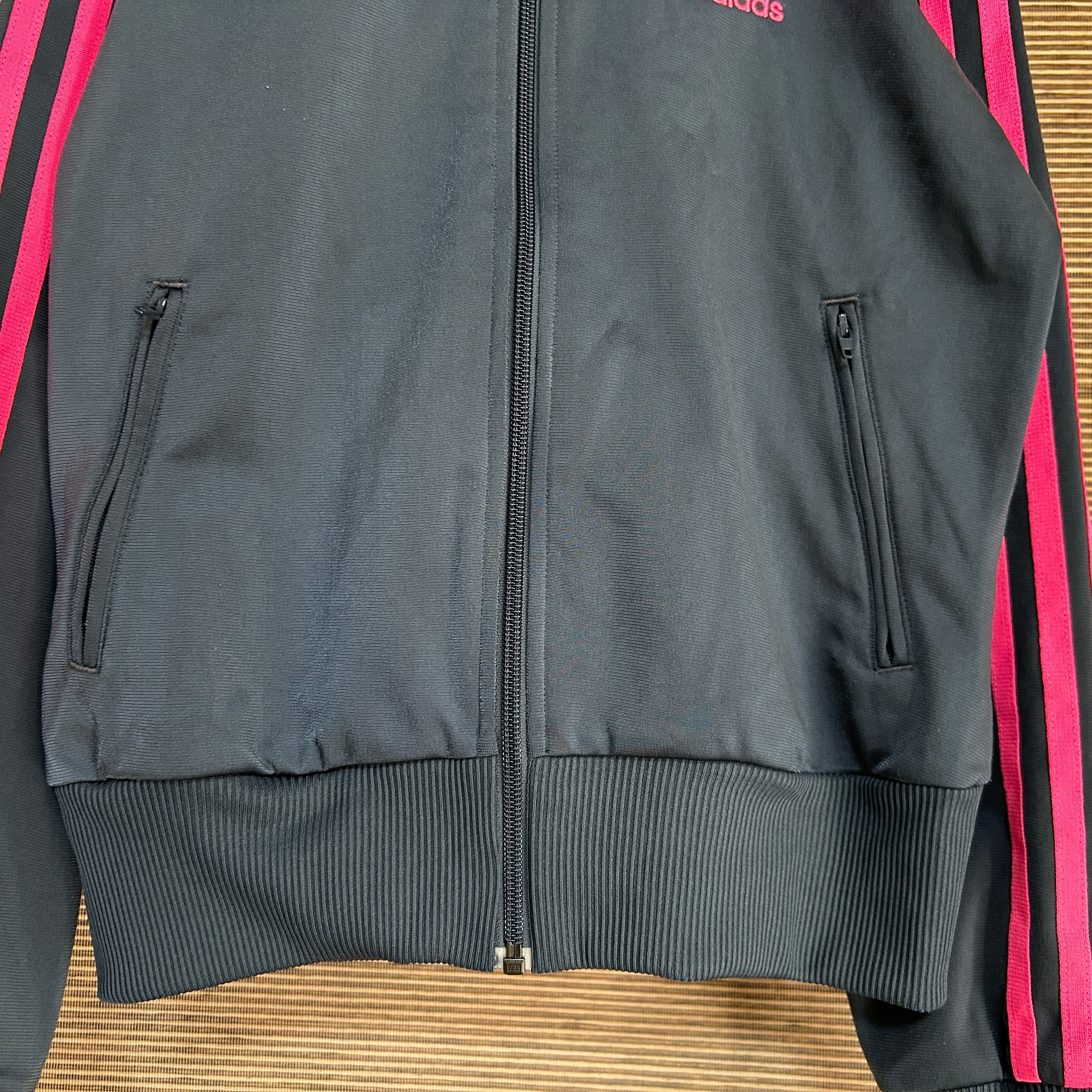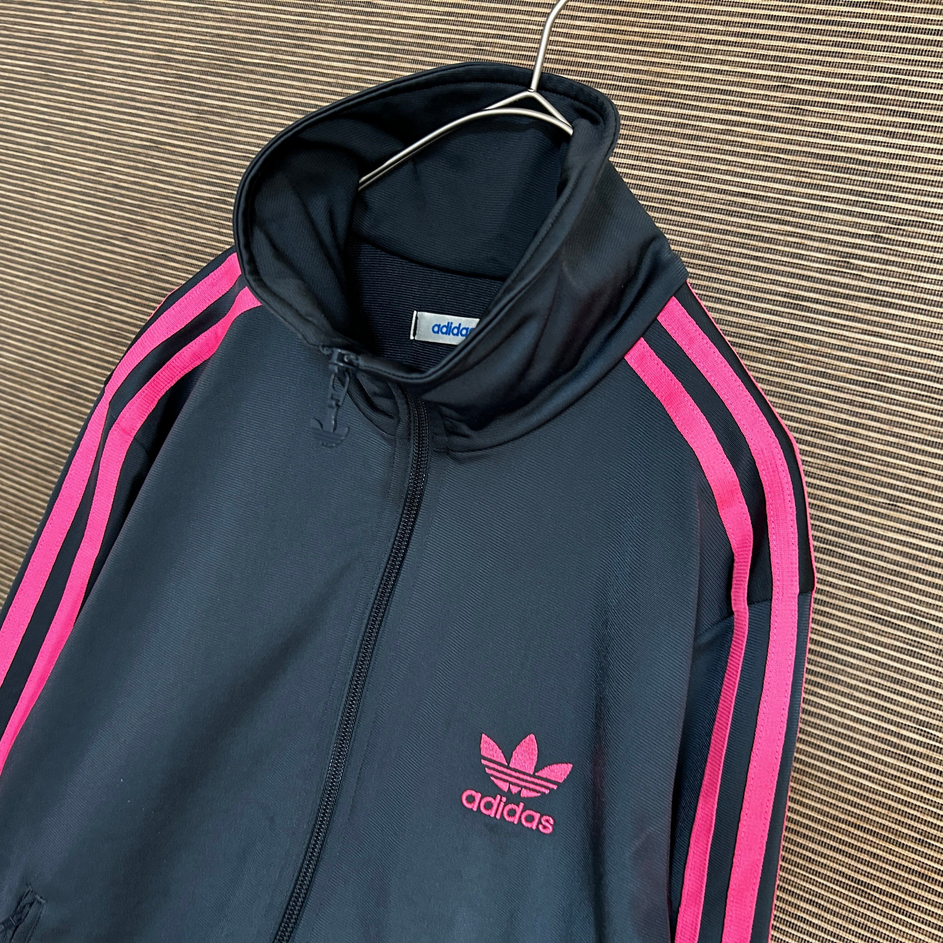アディダス ジャージトラックジャケットダークグレーピンクファイヤーバードJ2 古着 人気カラー ビッグロゴ トレフォイル