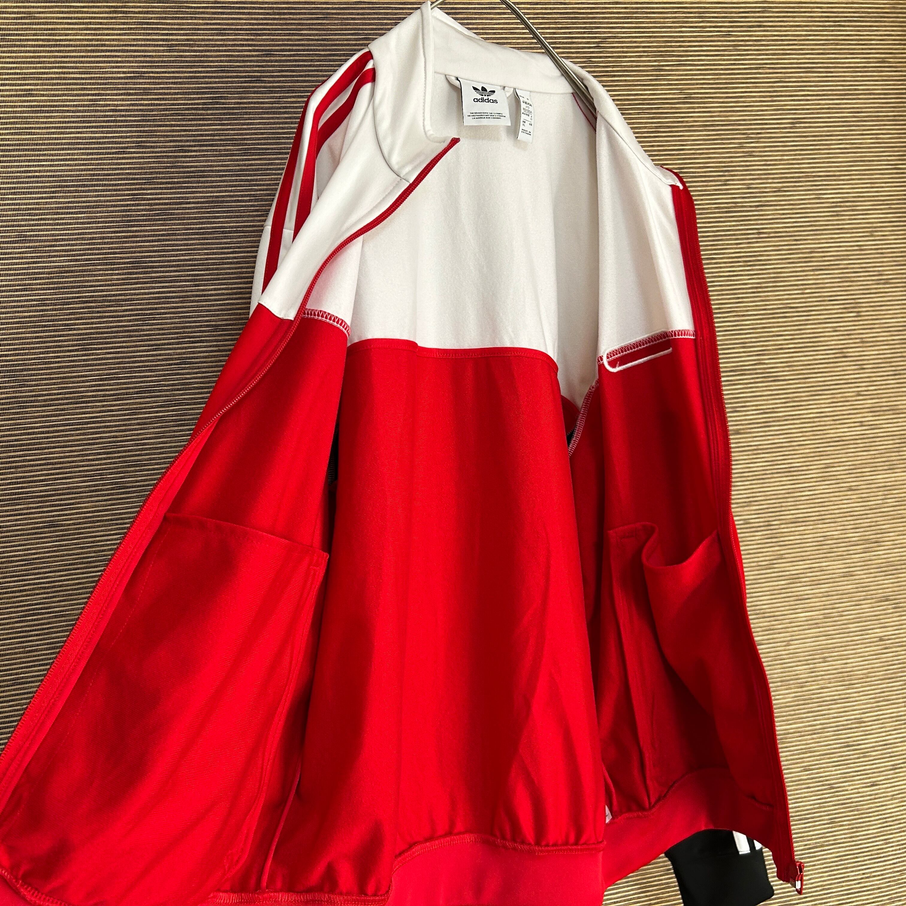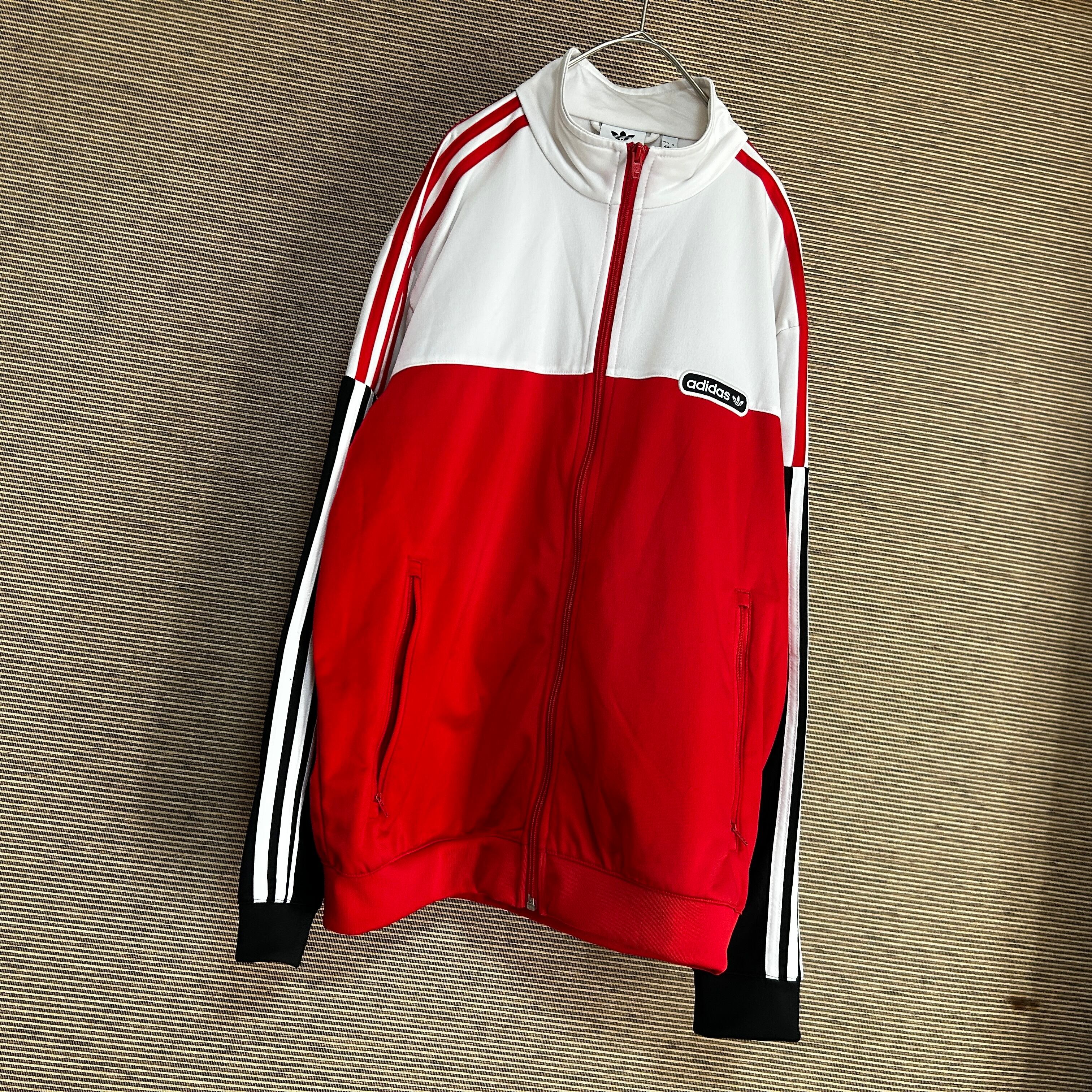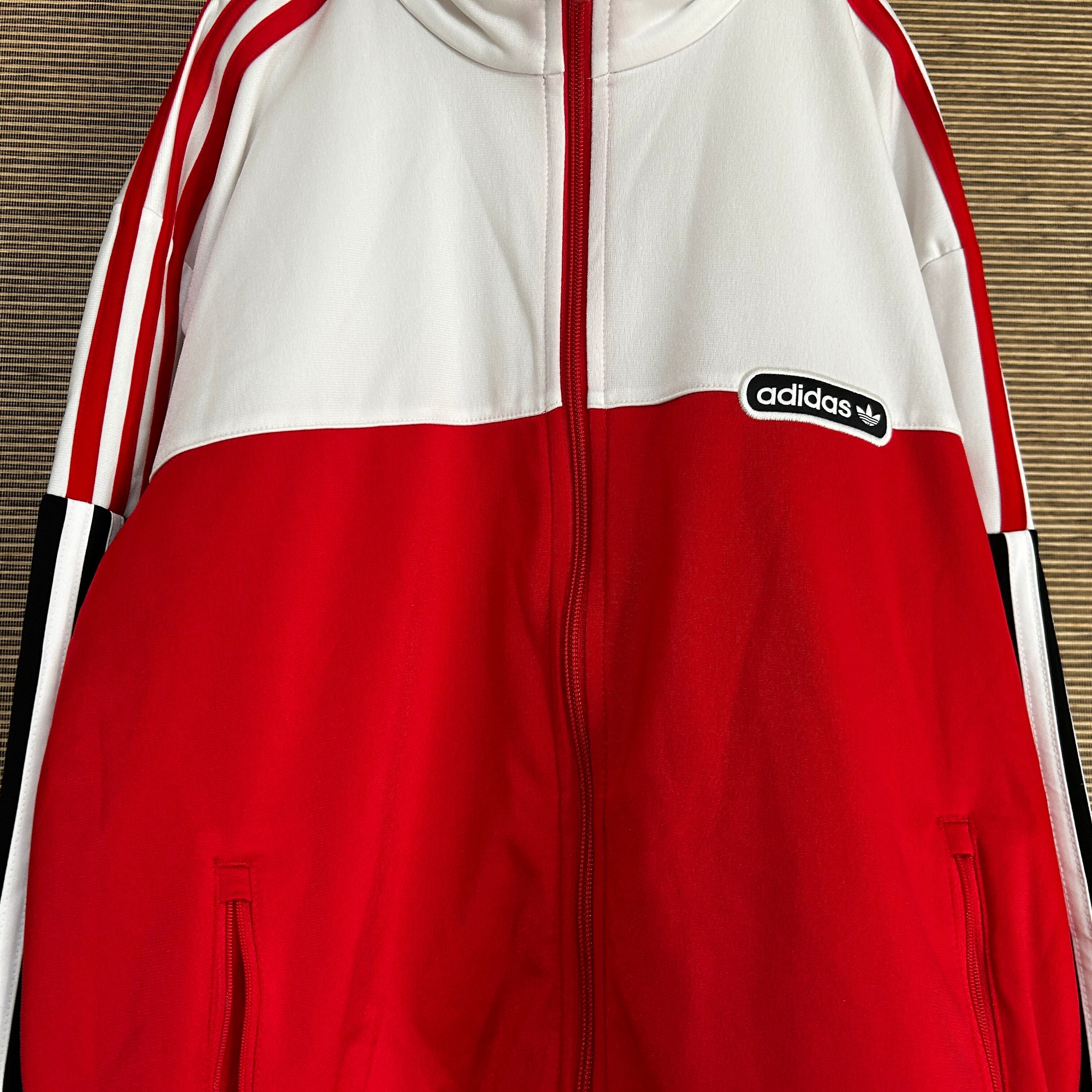 アディダス ジャージ トラックジャケット 赤黒白 ファイヤーバードH2 古着 人気 ワッペン ビッグサイズ