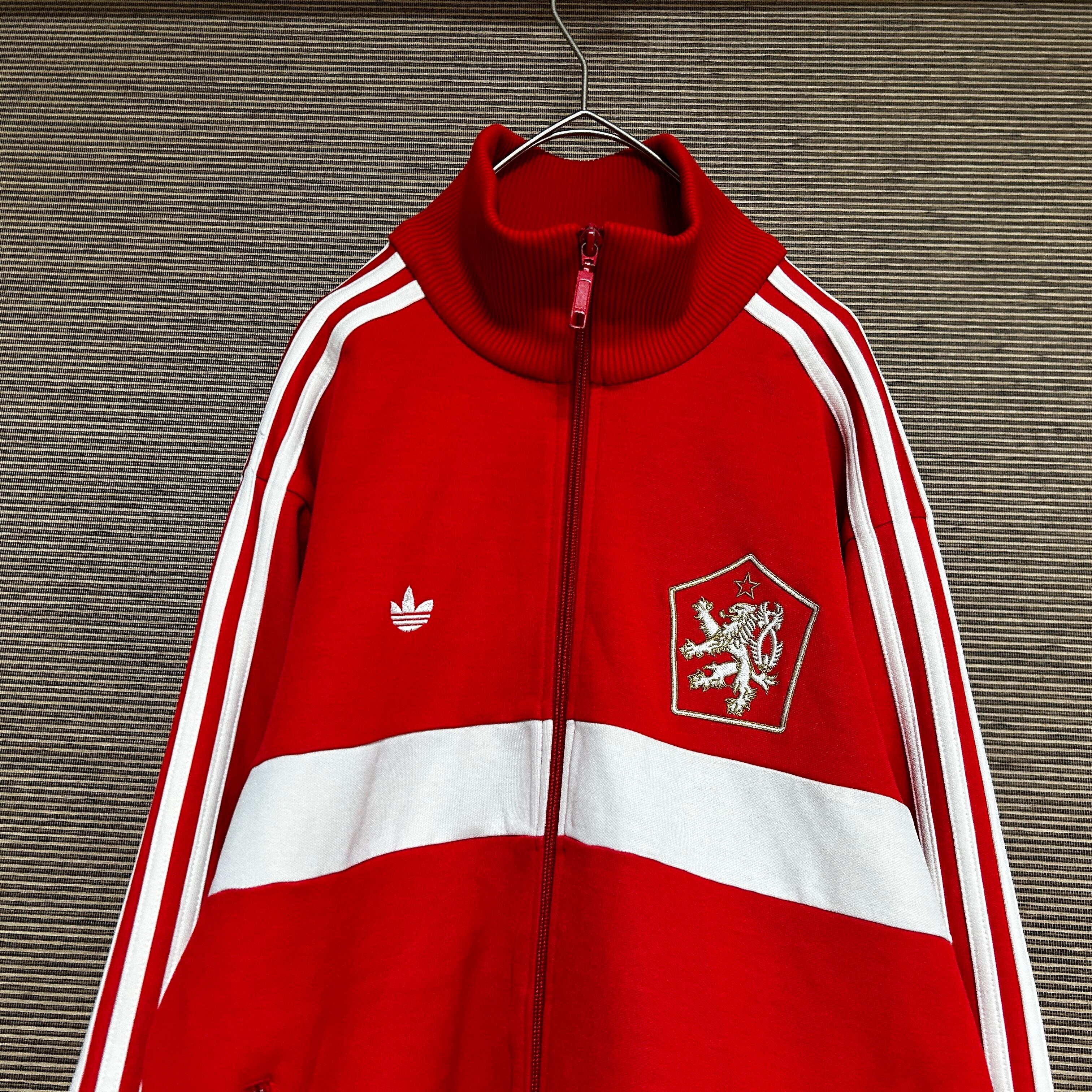 アディダス ジャージトラックジャケット サッカーチェコスロバキア代表H2 古着 刺繍 フロッキープリント 人気 激レア