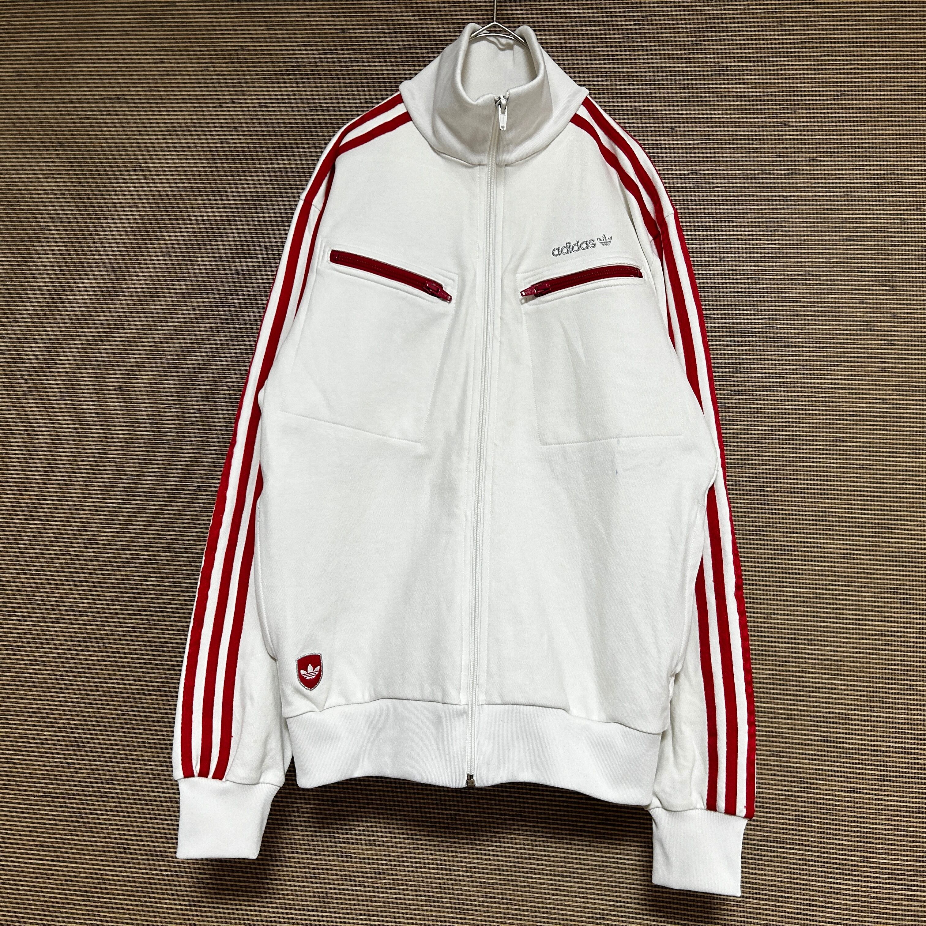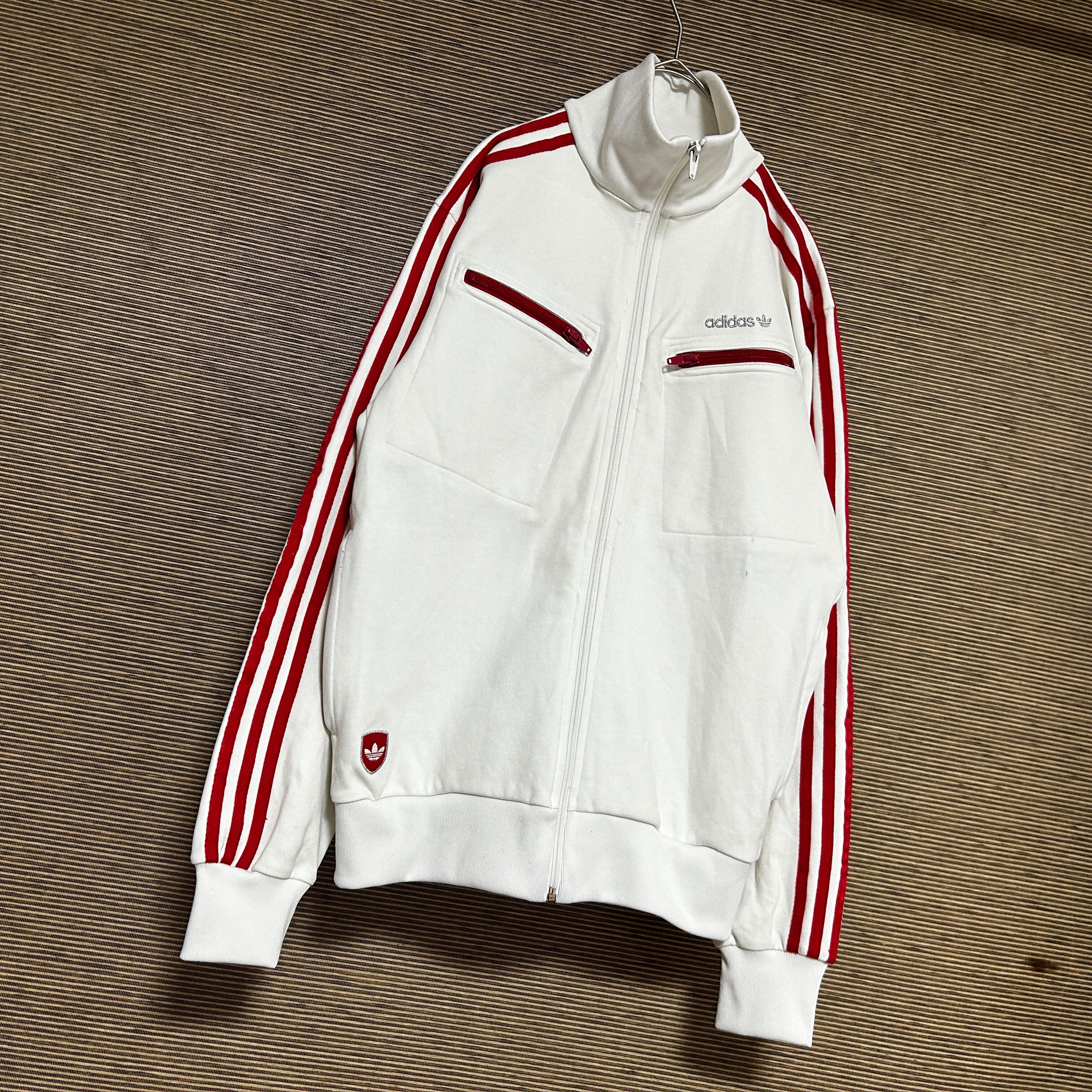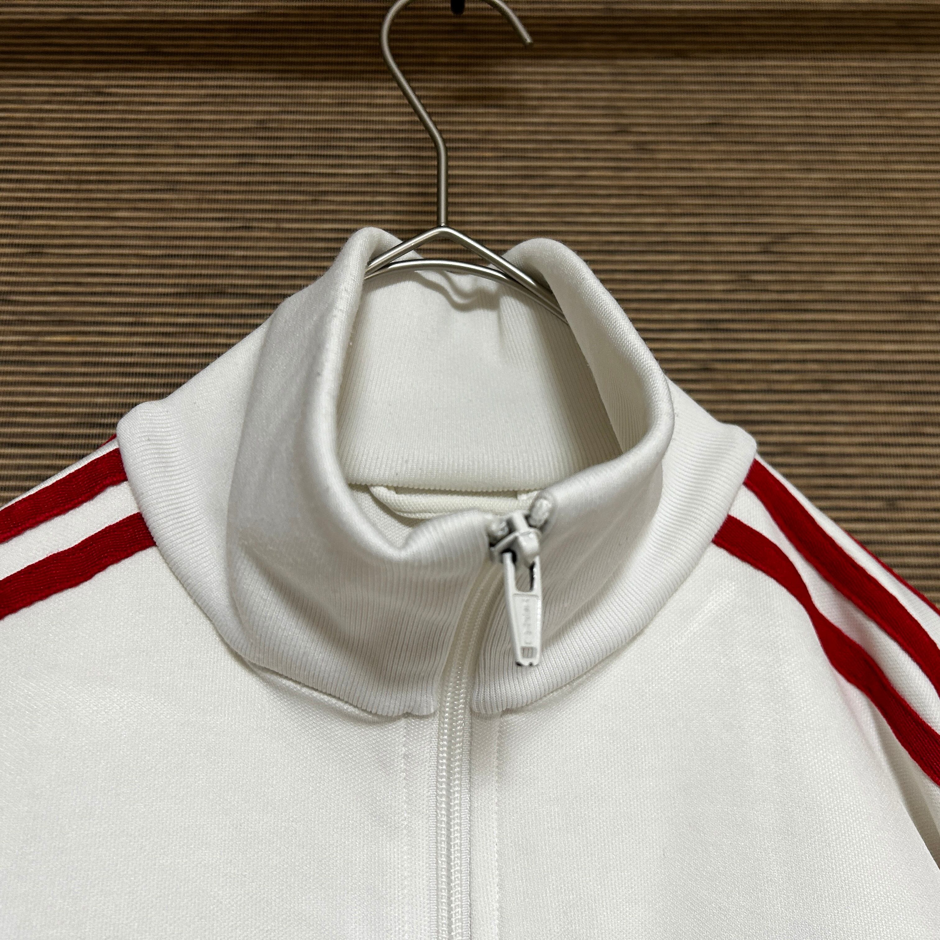アディダス ジャージトラックジャケット トレフォイル白ホワイト刺繍 H2 古着 ドライビング 三本線 ワンポイントロゴ