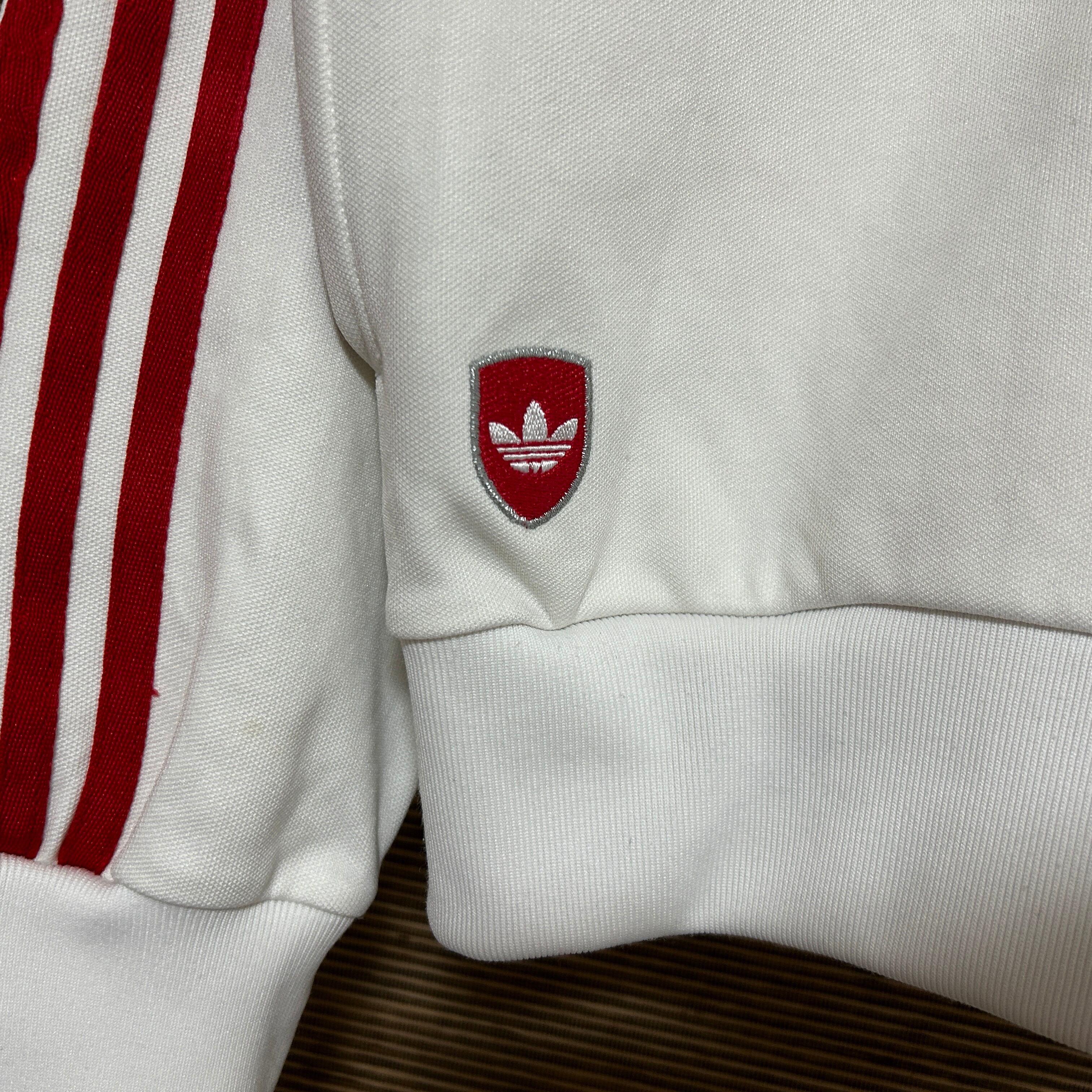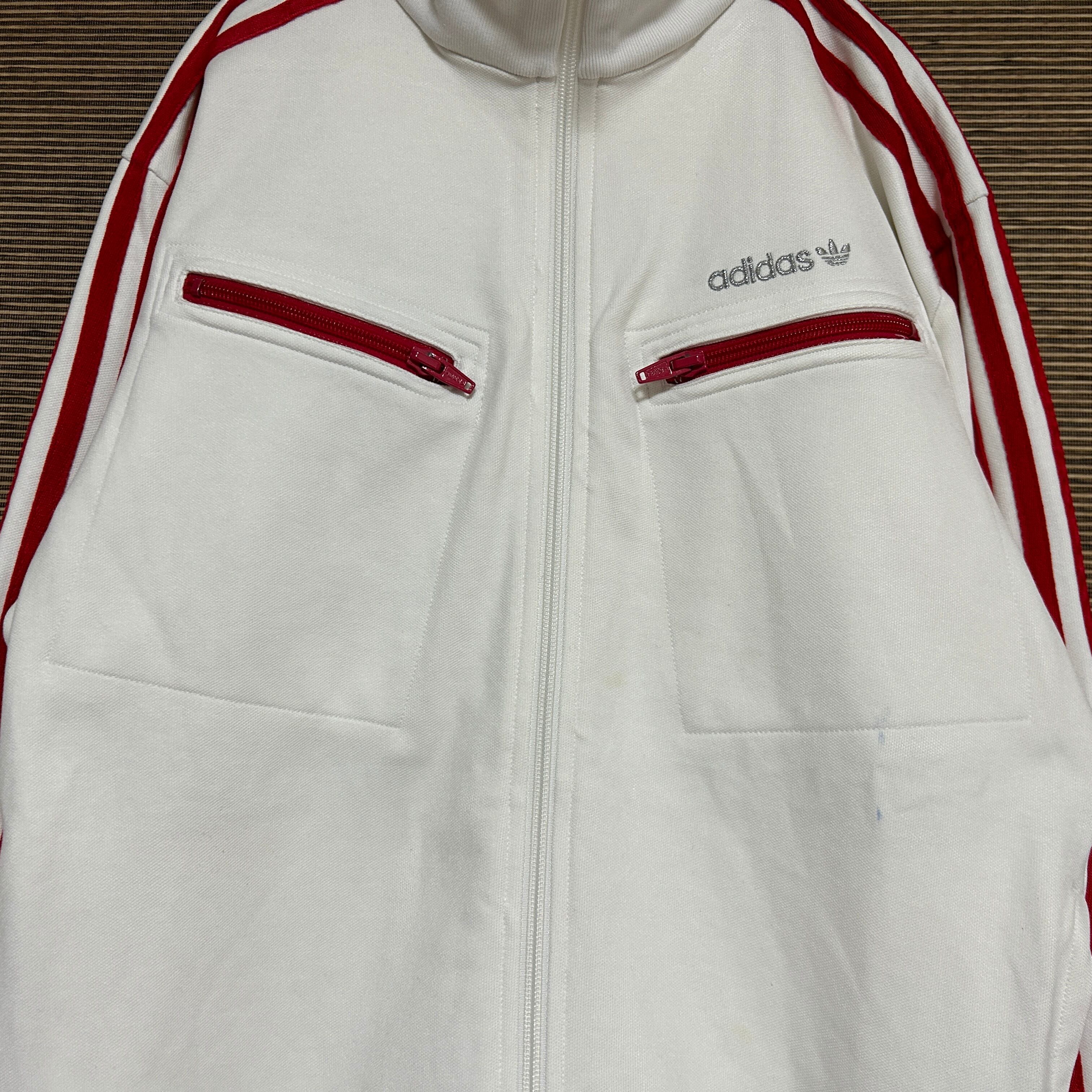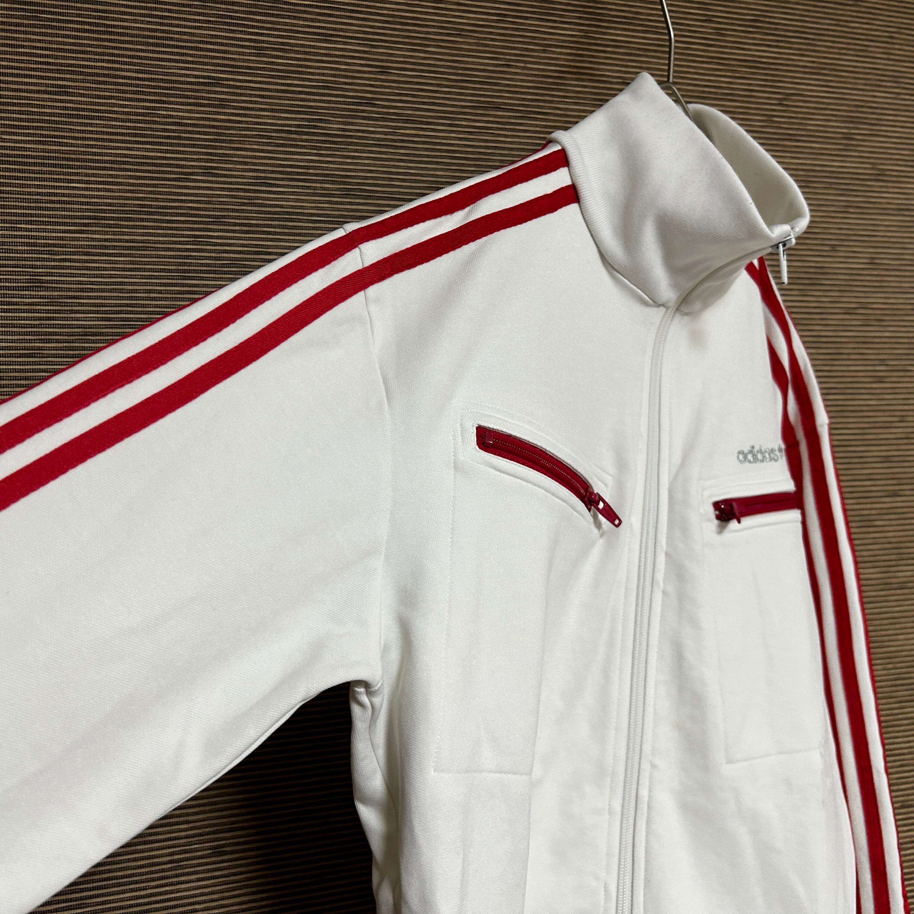 アディダス ジャージトラックジャケット トレフォイル白ホワイト刺繍 H2 古着 ドライビング 三本線 ワンポイントロゴ
