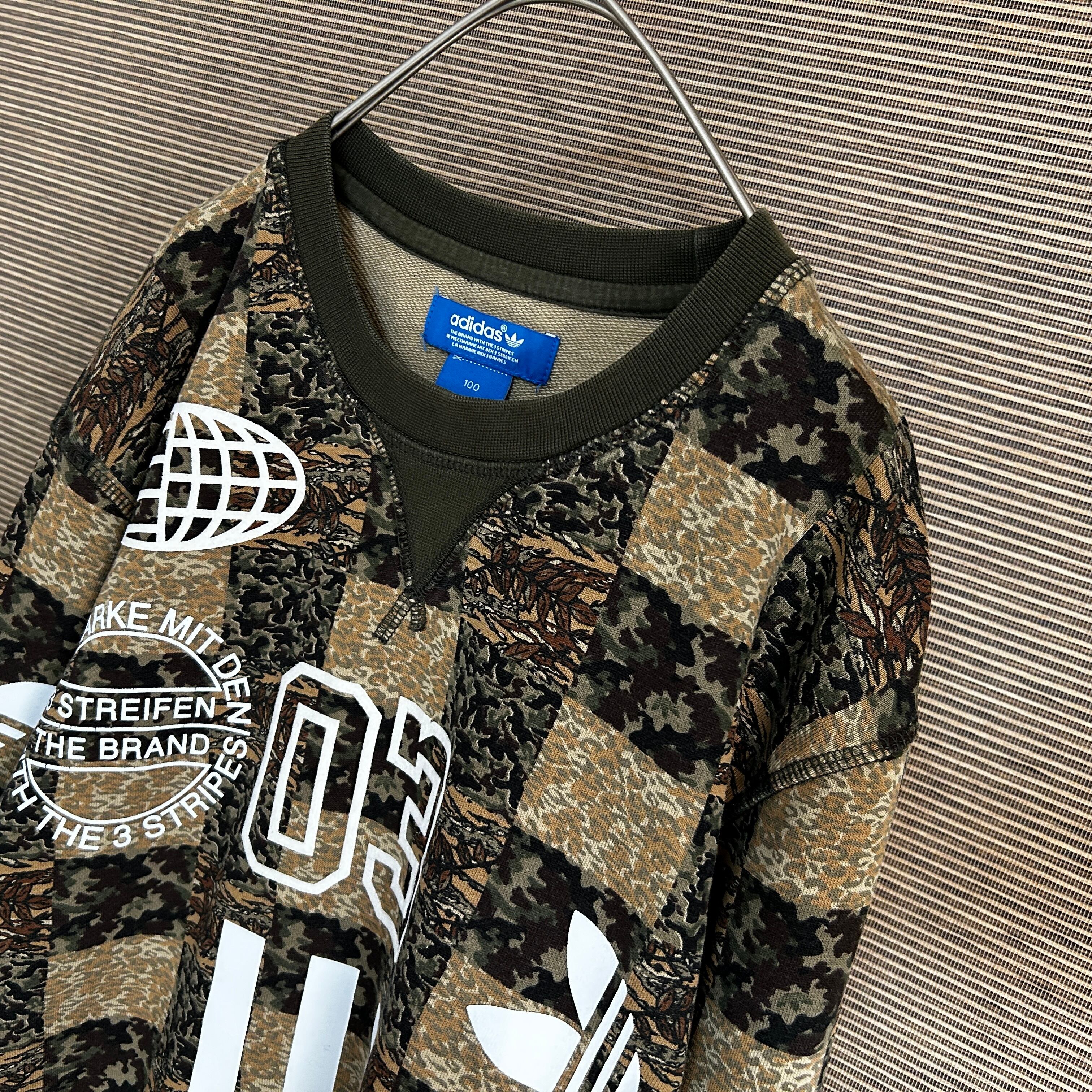 アディダス スウェット リアルツリー迷彩カモフラ裏毛デカロゴトレフォイルN1 古着 肩ロゴ ワンポイントロゴ ビッグロゴ