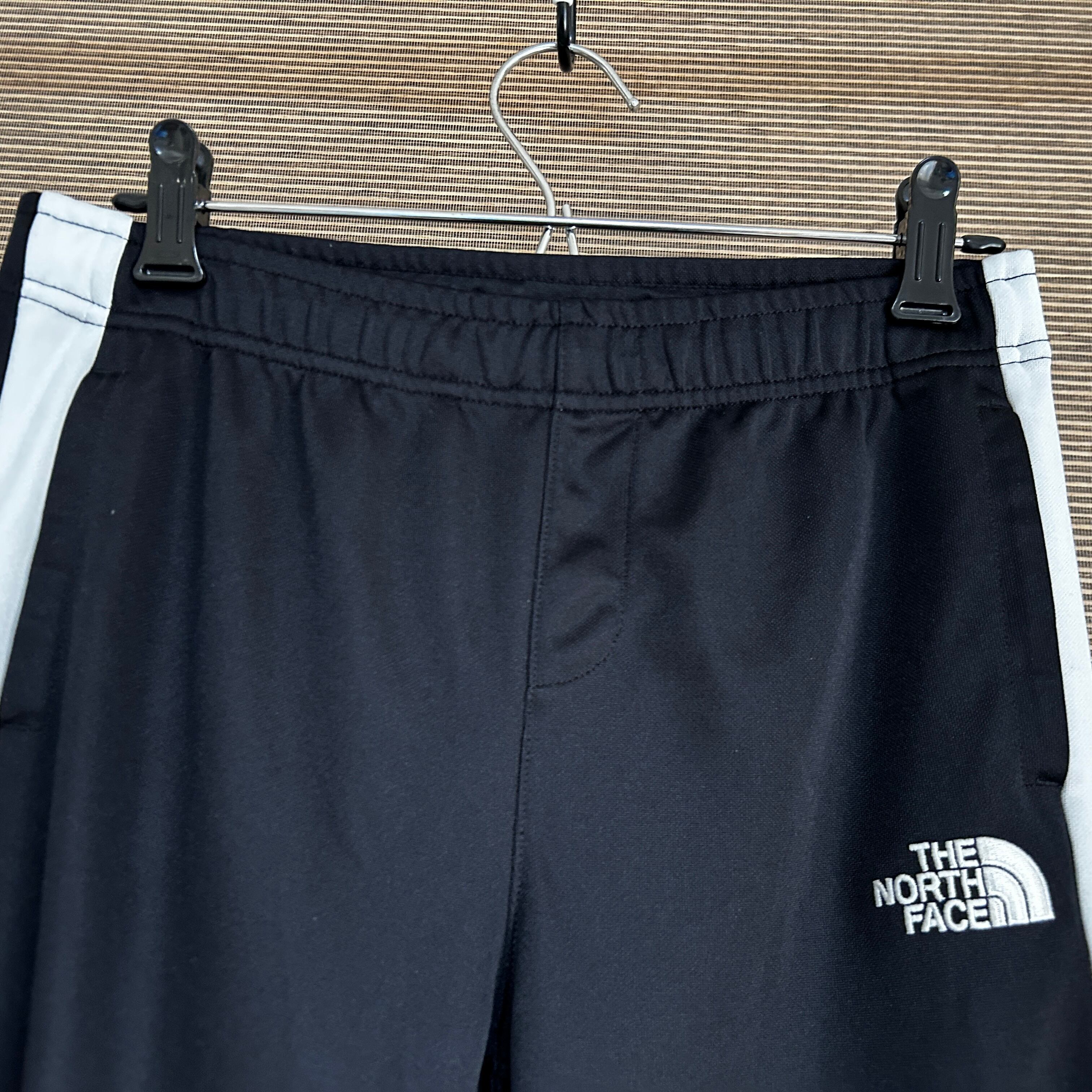 ノースフェイス トラックパンツジャージ 刺繍 黒 子供150キッズ N1 古着 ワンポイントロゴ 人気