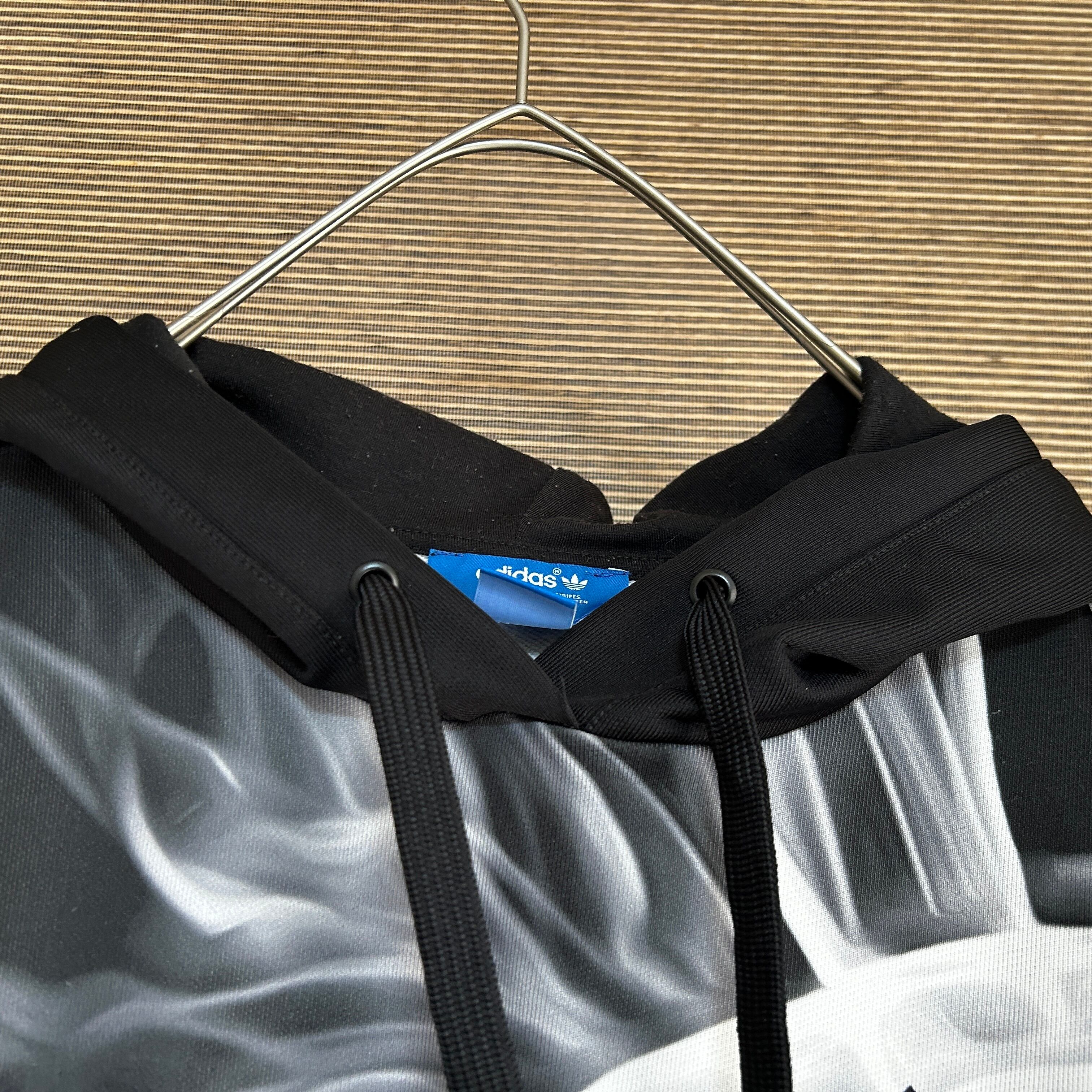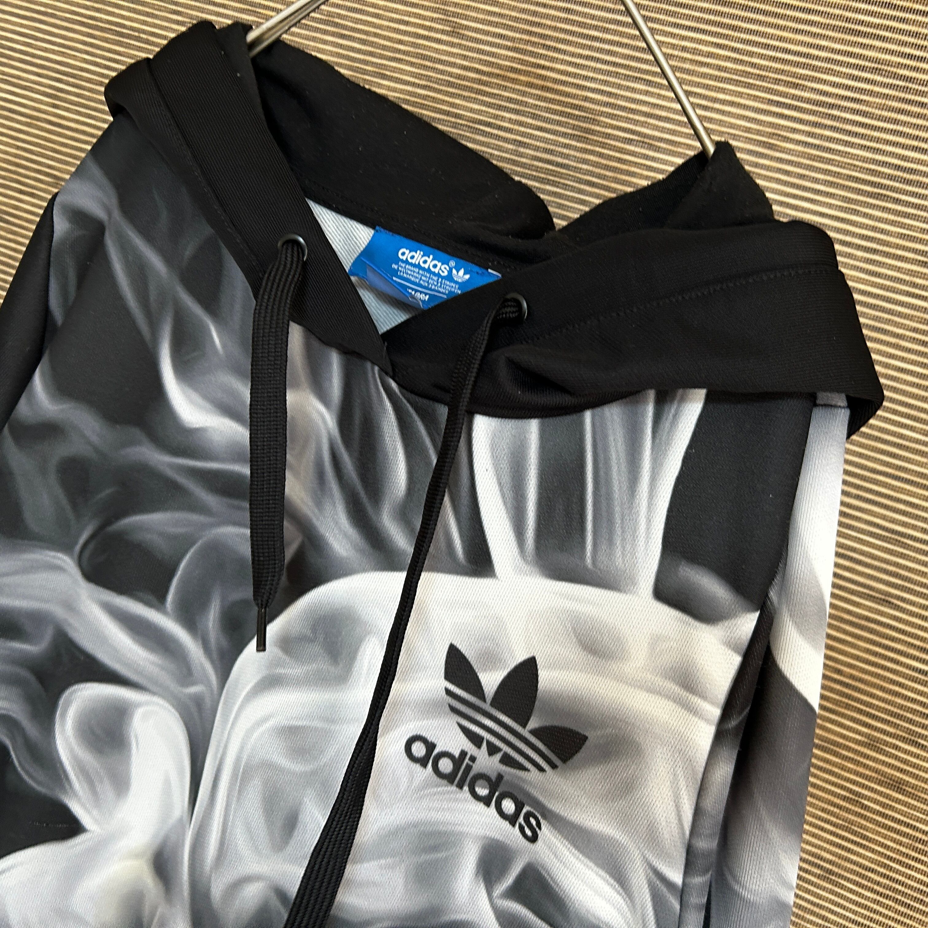 アディダス パーカー トレフォイル 黒白 ワンポイント 幾何学 N 古着 プリントロゴ ブラック