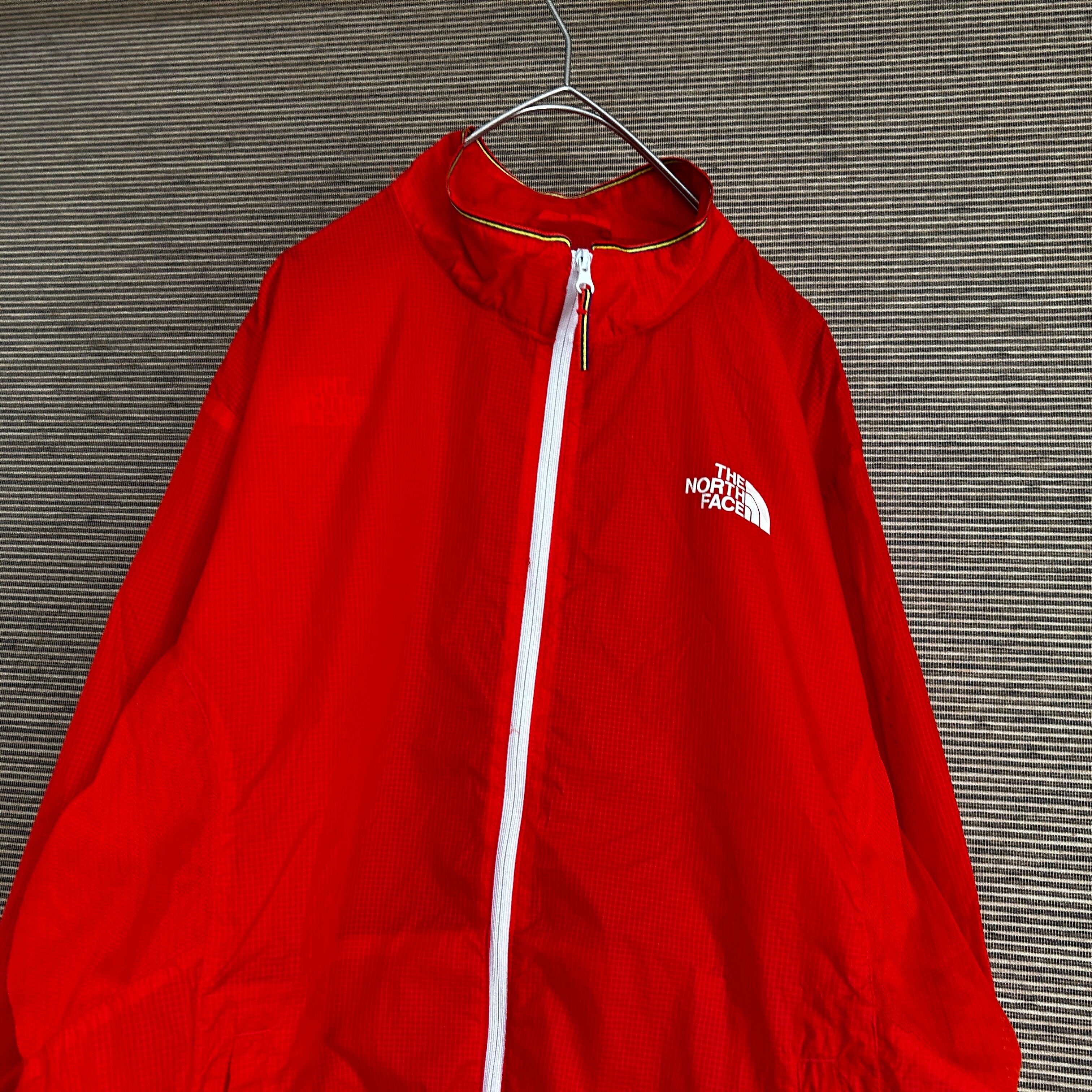 ノースフェイス ナイロンジャケット 赤レッド プリントロゴワンポイント薄手H1 古着 人気 白ホワイト