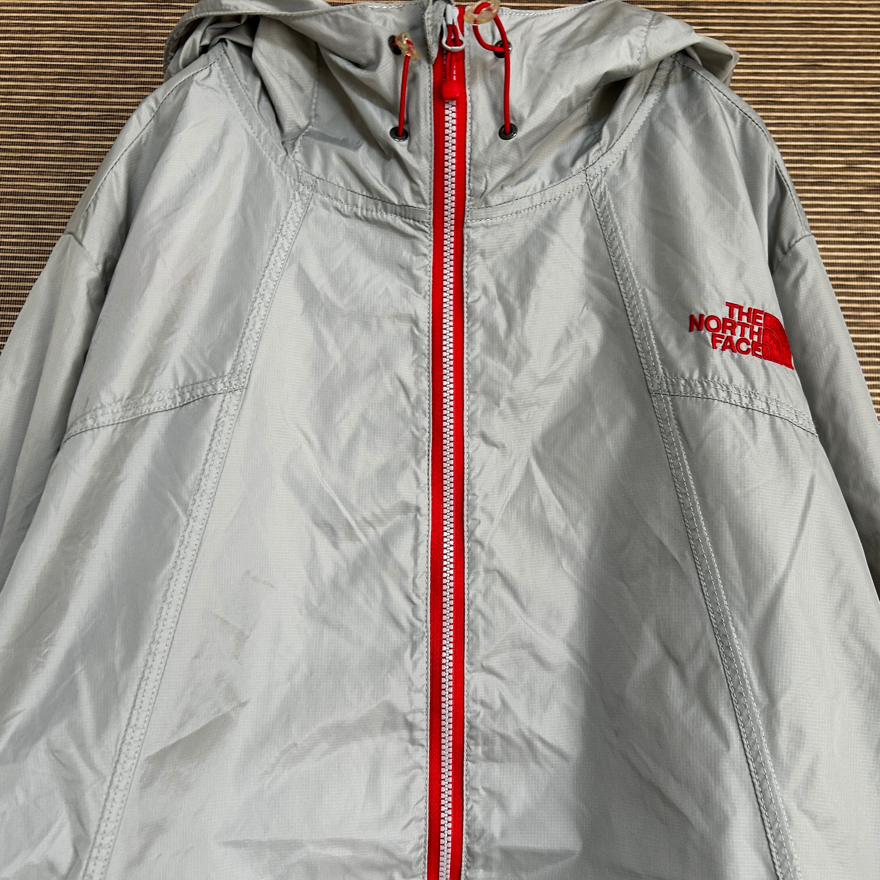 ノースフェイス ナイロンジャケット グレー赤 刺繍 ワンポイント韓国限定F0 古着 ホワイトレーベル レディース 薄手