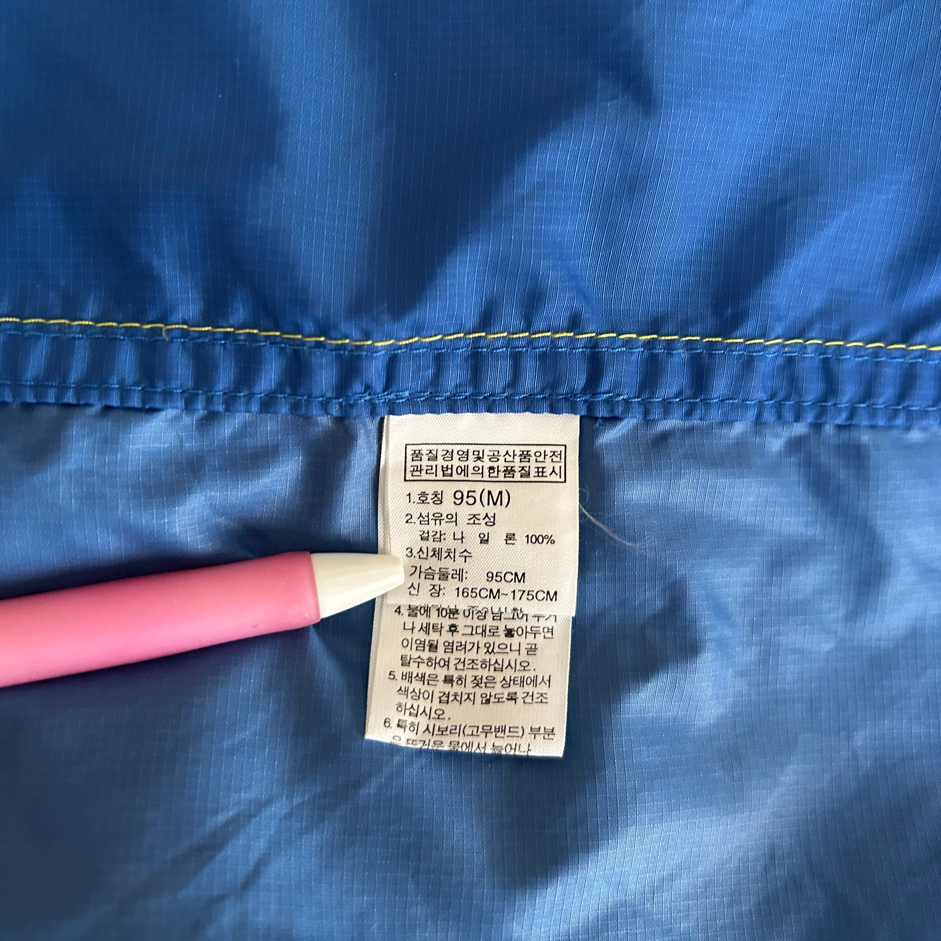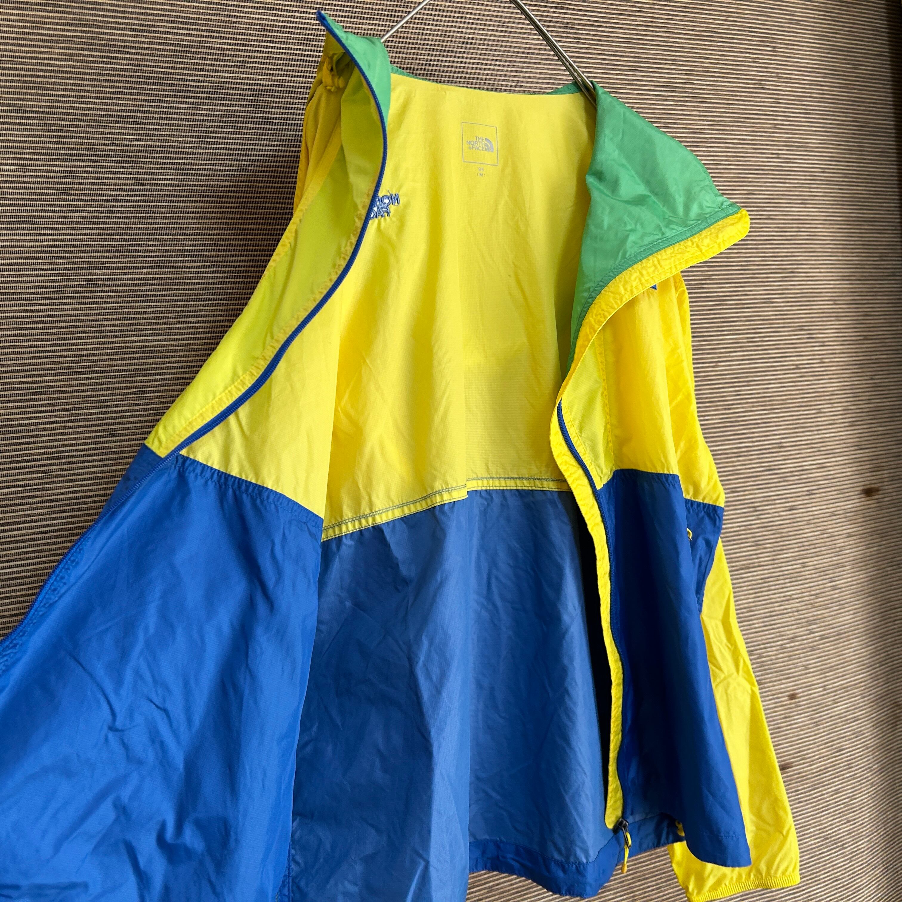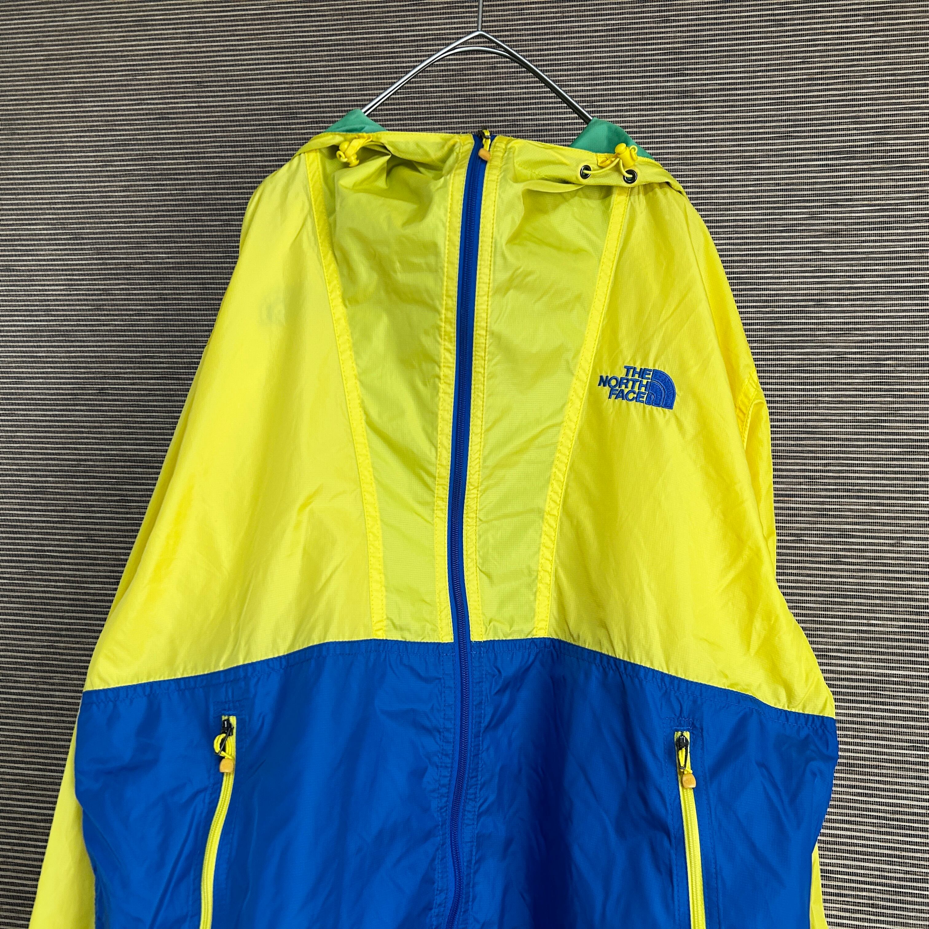 ノースフェイス ナイロンジャケット 青ブルーイエロー 刺繍 ワンポイントJ1 古着 訳あり激安 黄色 人気カラー