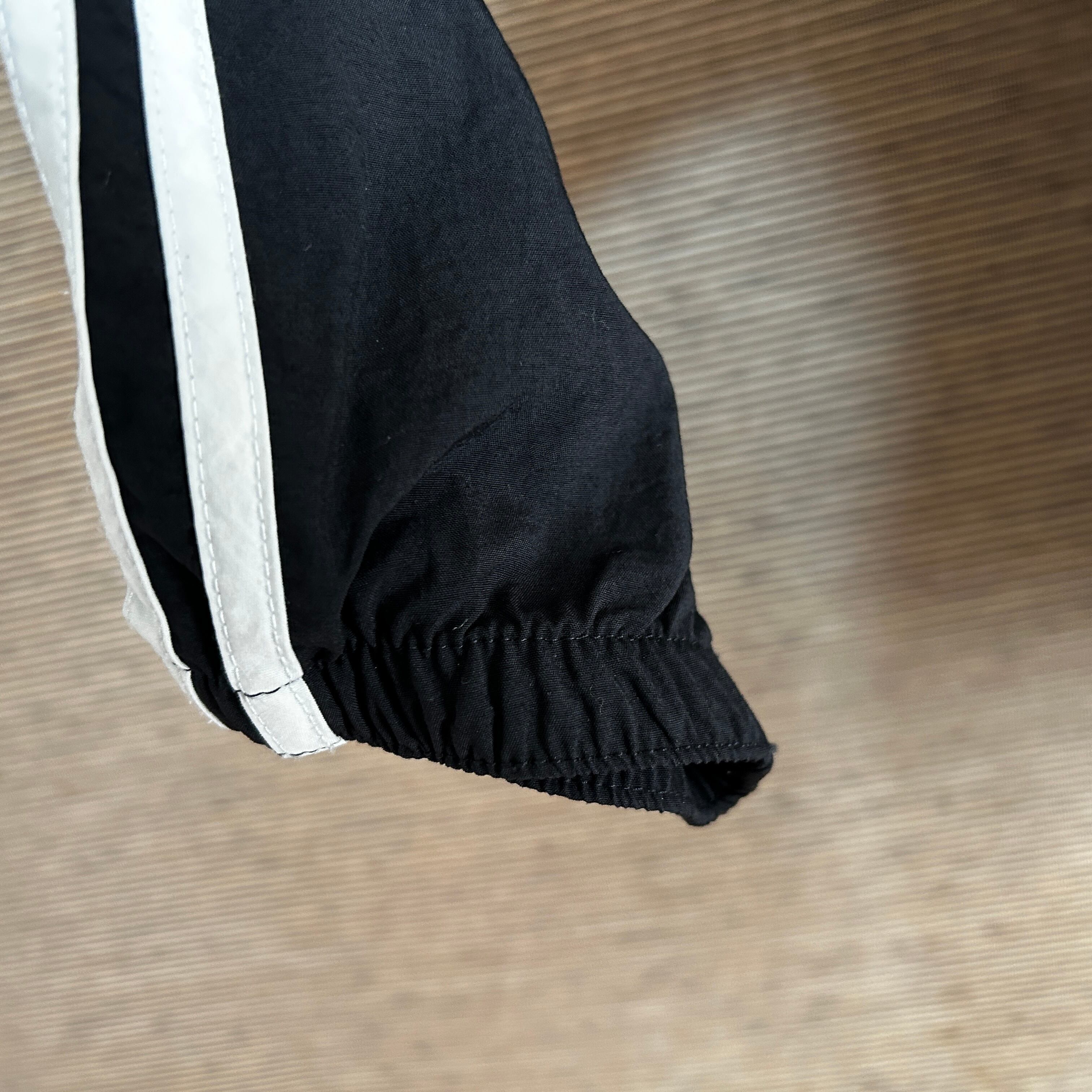アディダス ナイロンジャケット トレフォイルロゴ 黒 ワンポイントロゴJ2 古着 三本線 ブラック 人気