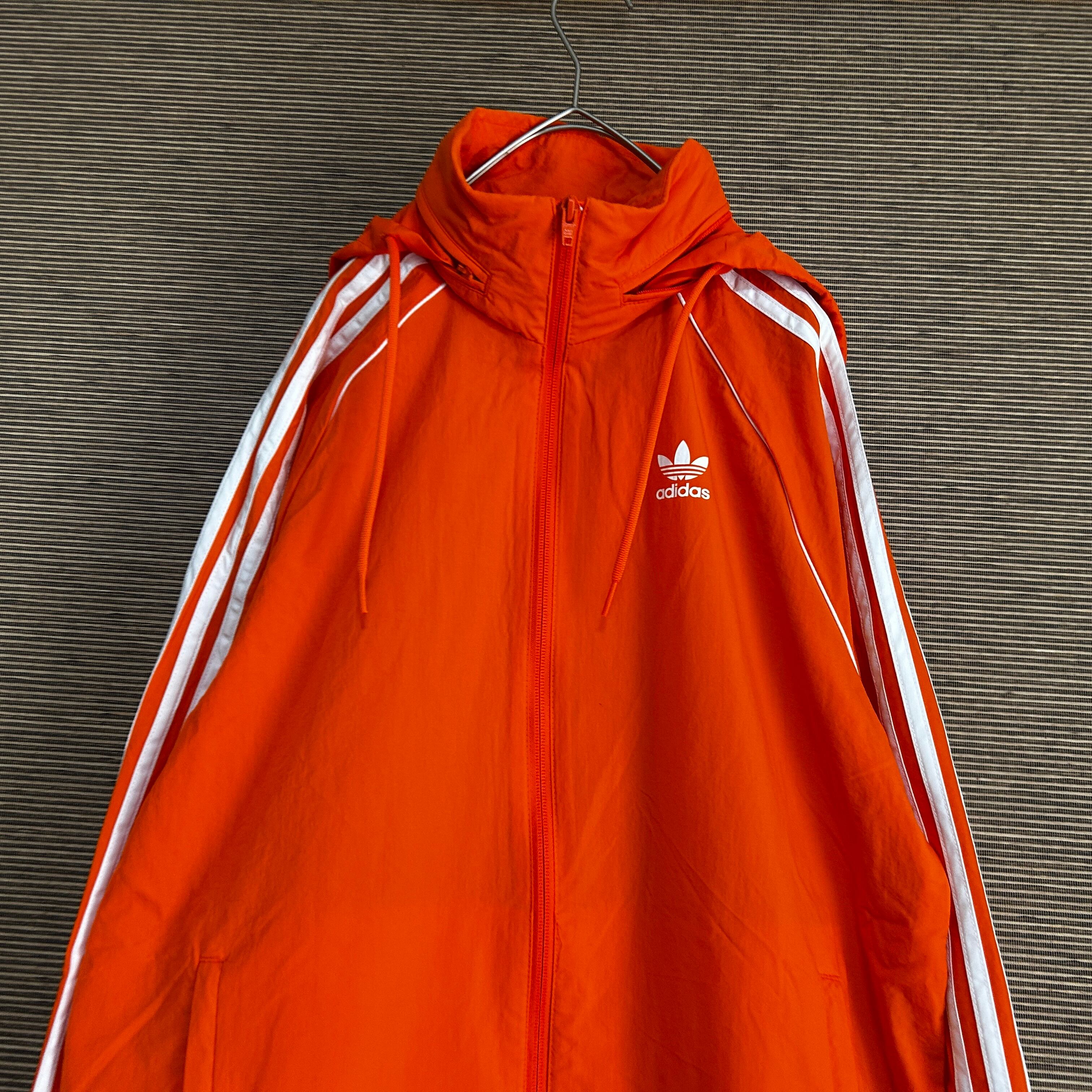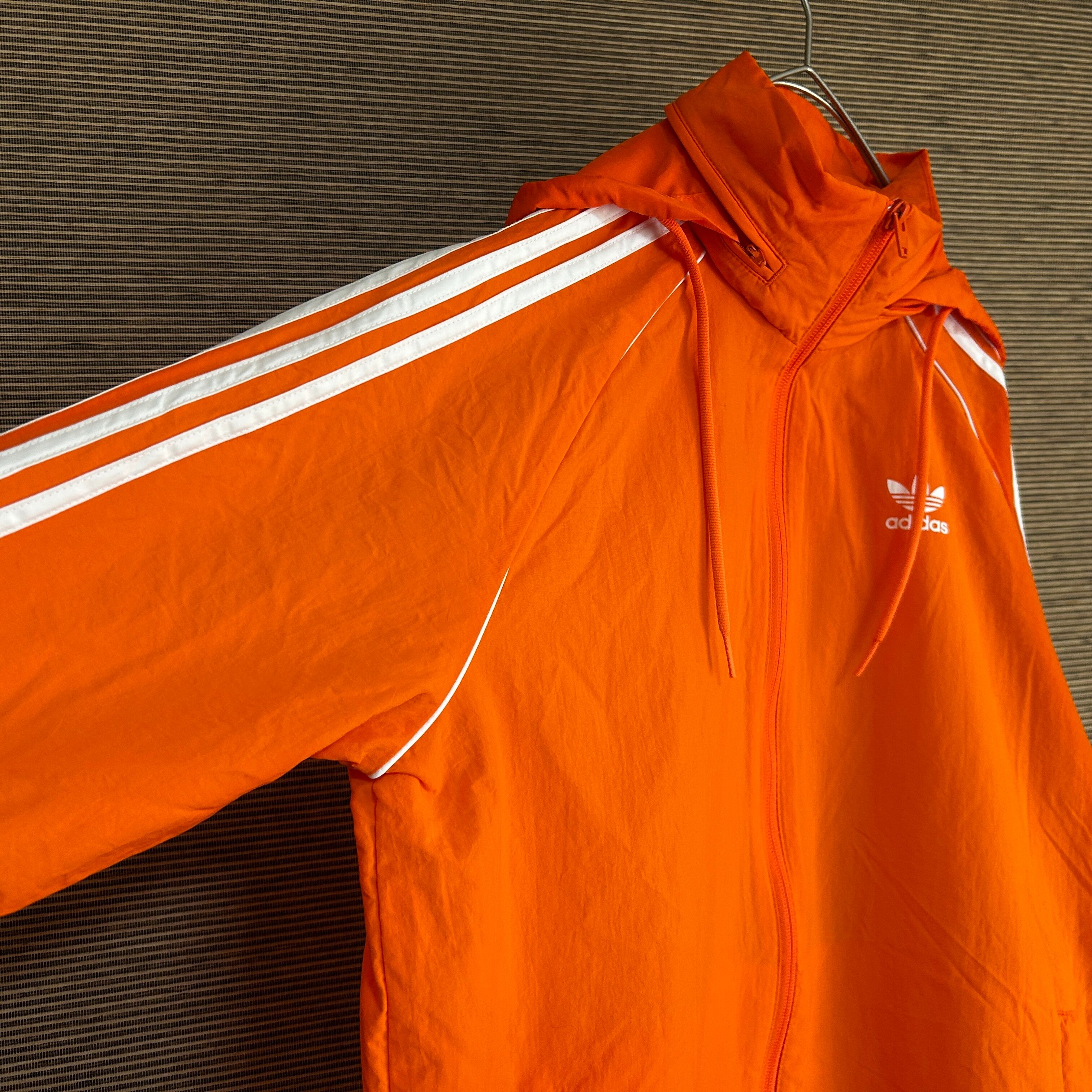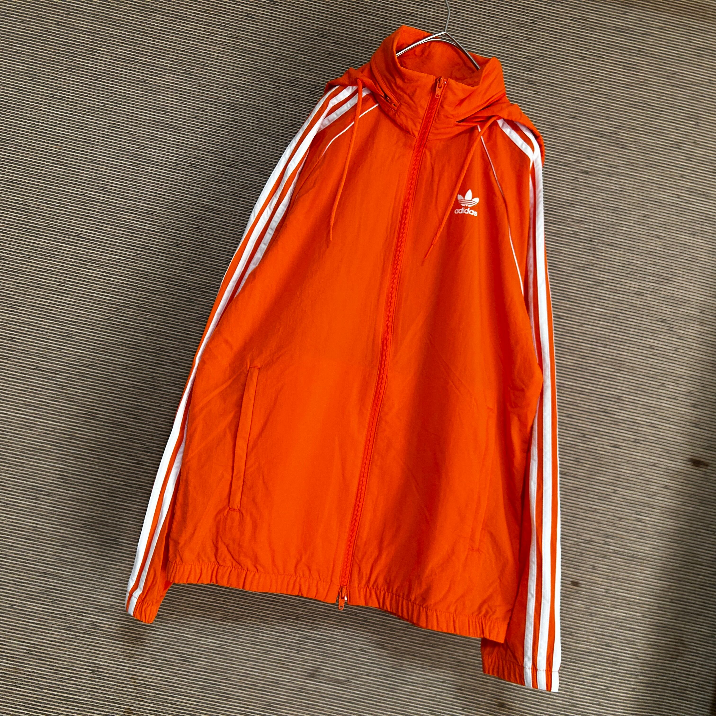 アディダス ナイロンジャケット トレフォイルロゴ オレンジ ワンポイントJ2 古着 三本線 オランダ代表カラー 人気