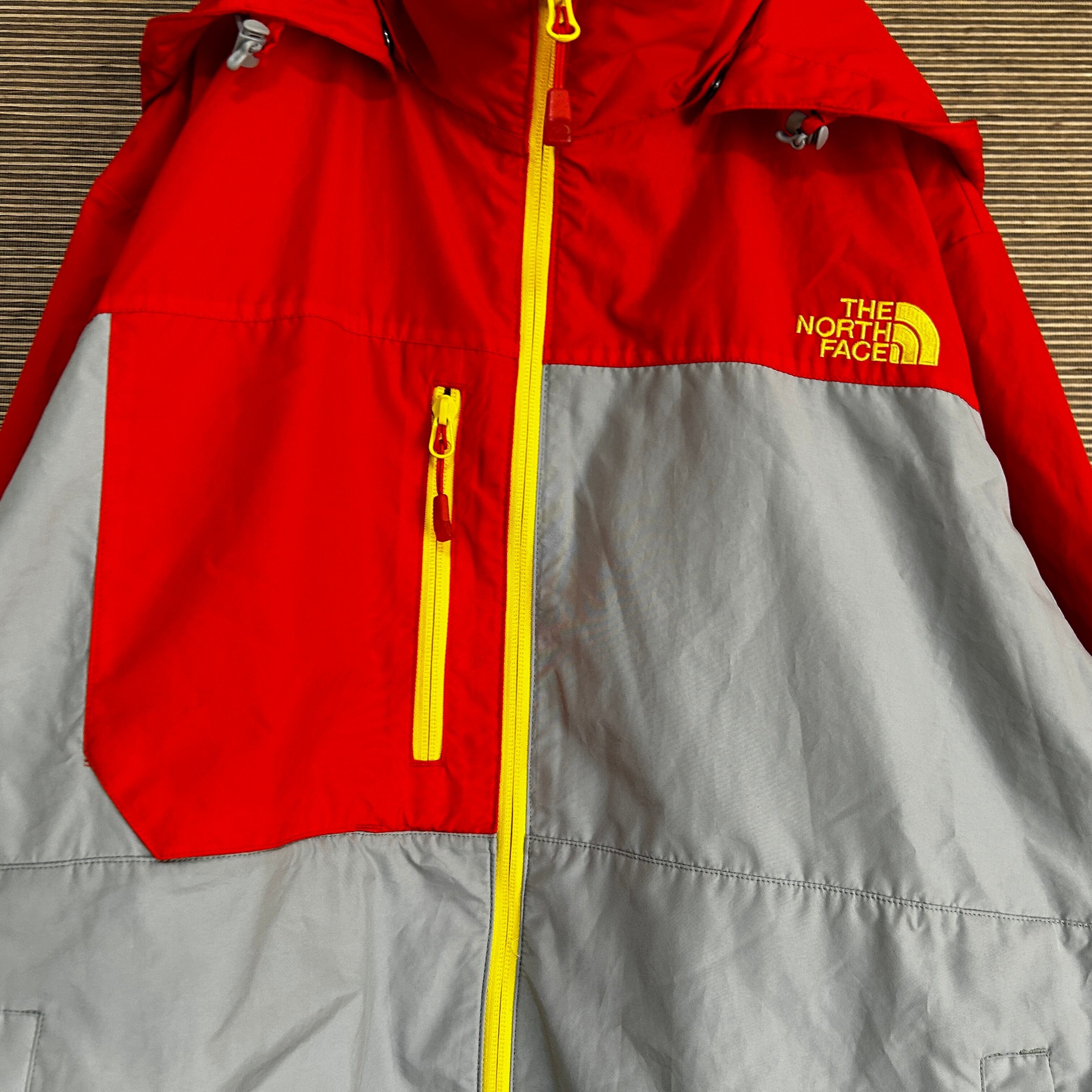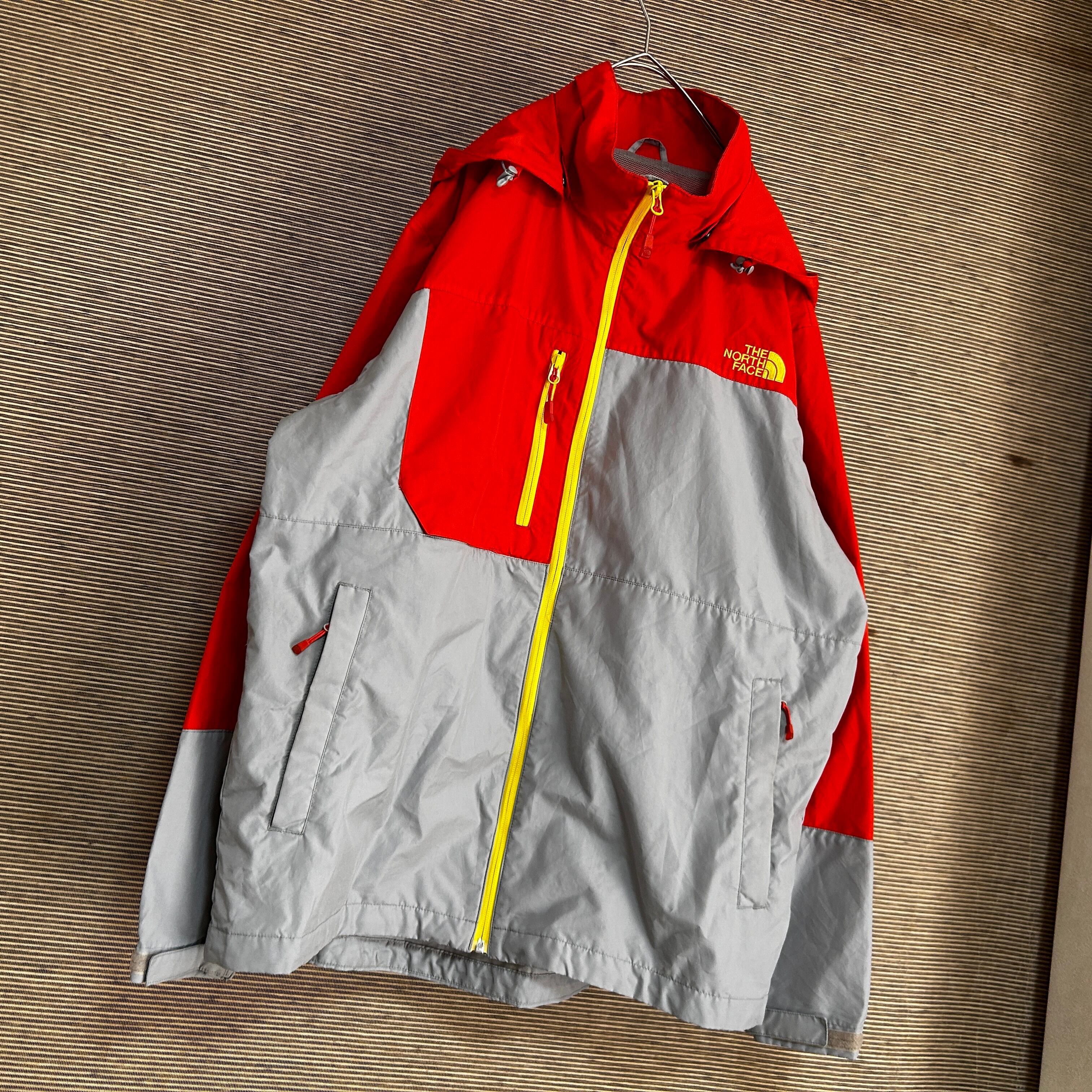 ノースフェイス マウンテンパーカー グレー赤 ゆるだぼ 刺繍ワンポイントG 古着 ビッグサイズ 人気