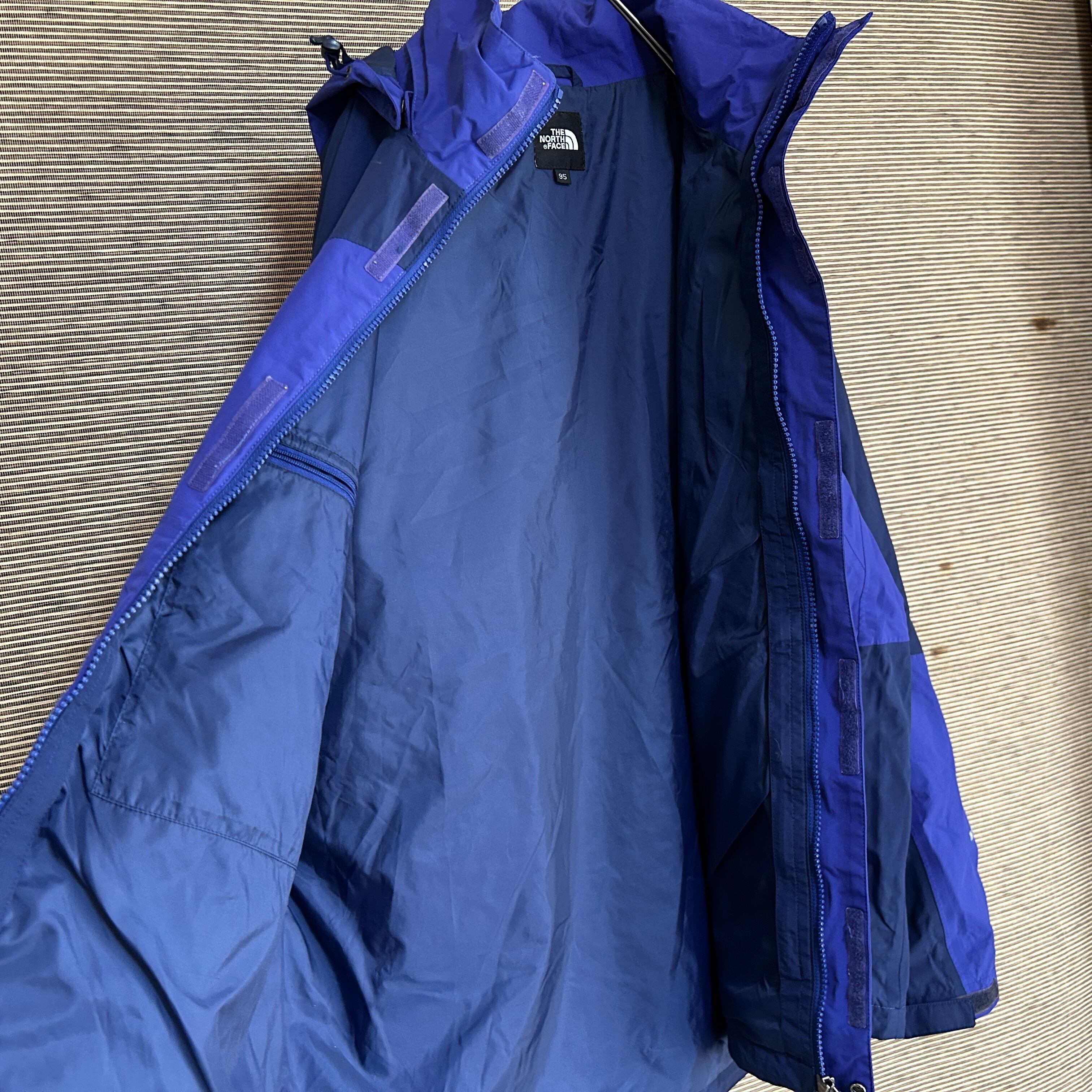 ノースフェイス マウンテンパーカー 紫パープル ネイビー 刺繍ハイベントG0 古着 ワンポイントロゴ 人気カラー hyvent