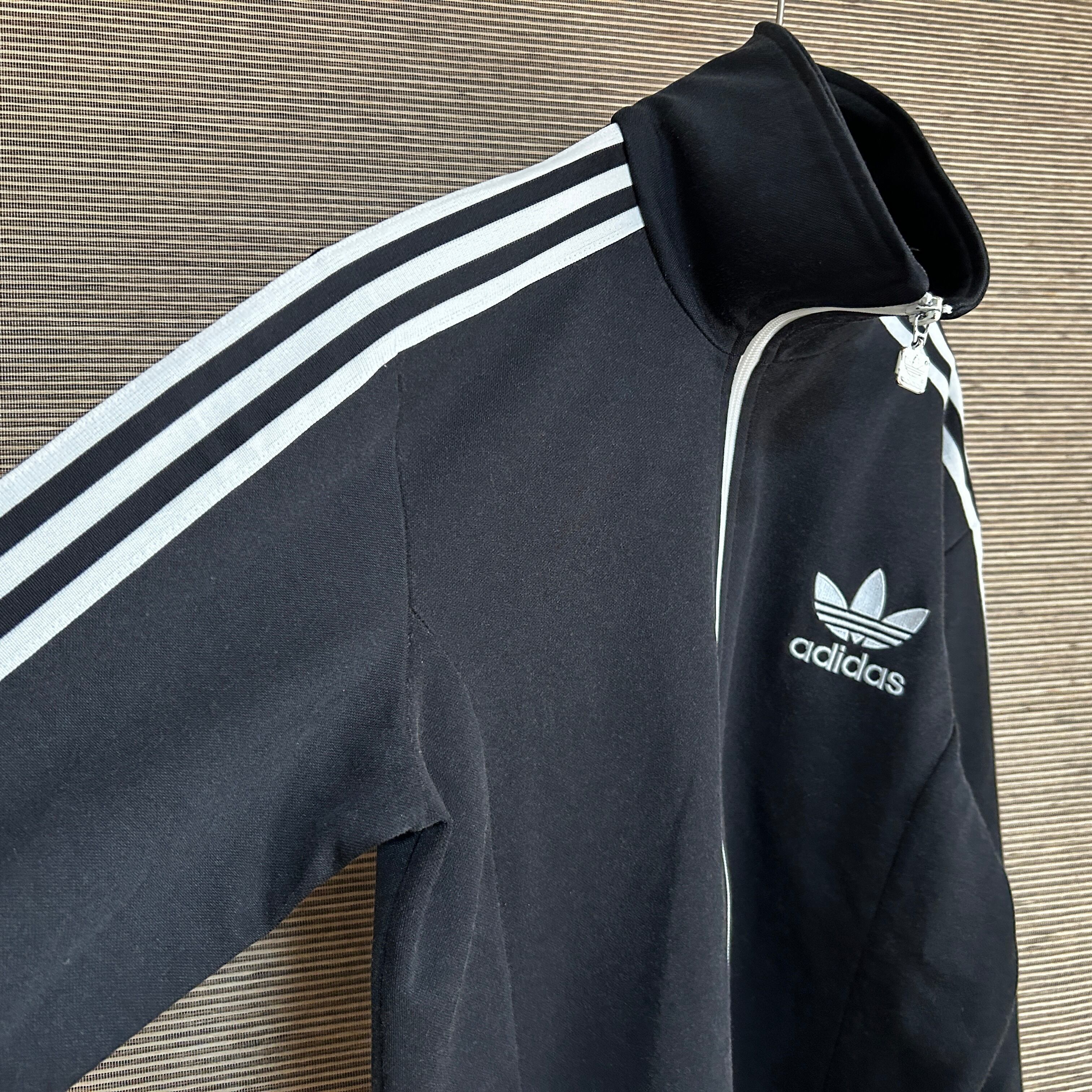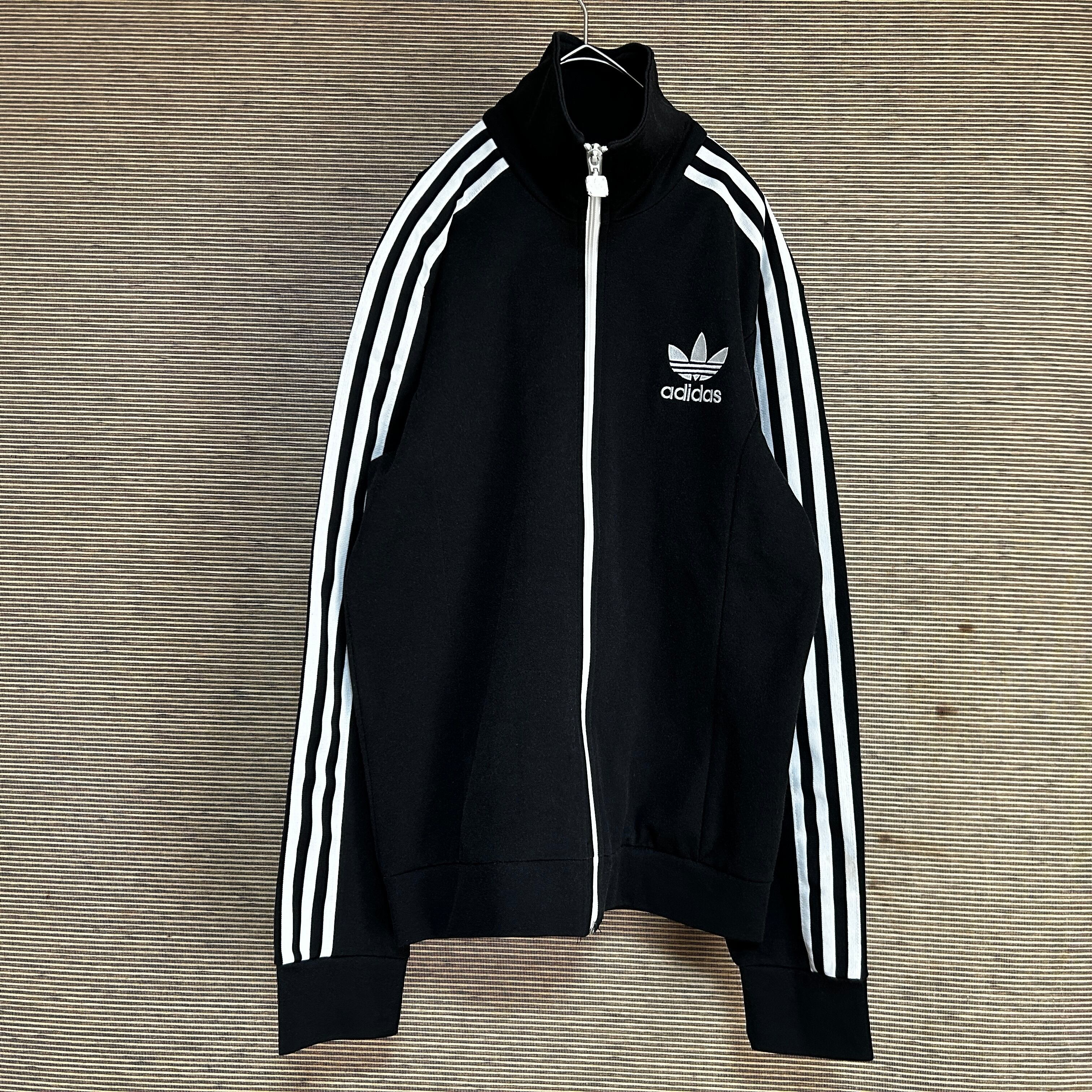 アディダス ジャージトラックジャケット ヨーロッパ トレフォイル刺繍黒白J2 古着 ブラック ワンポイントロゴ