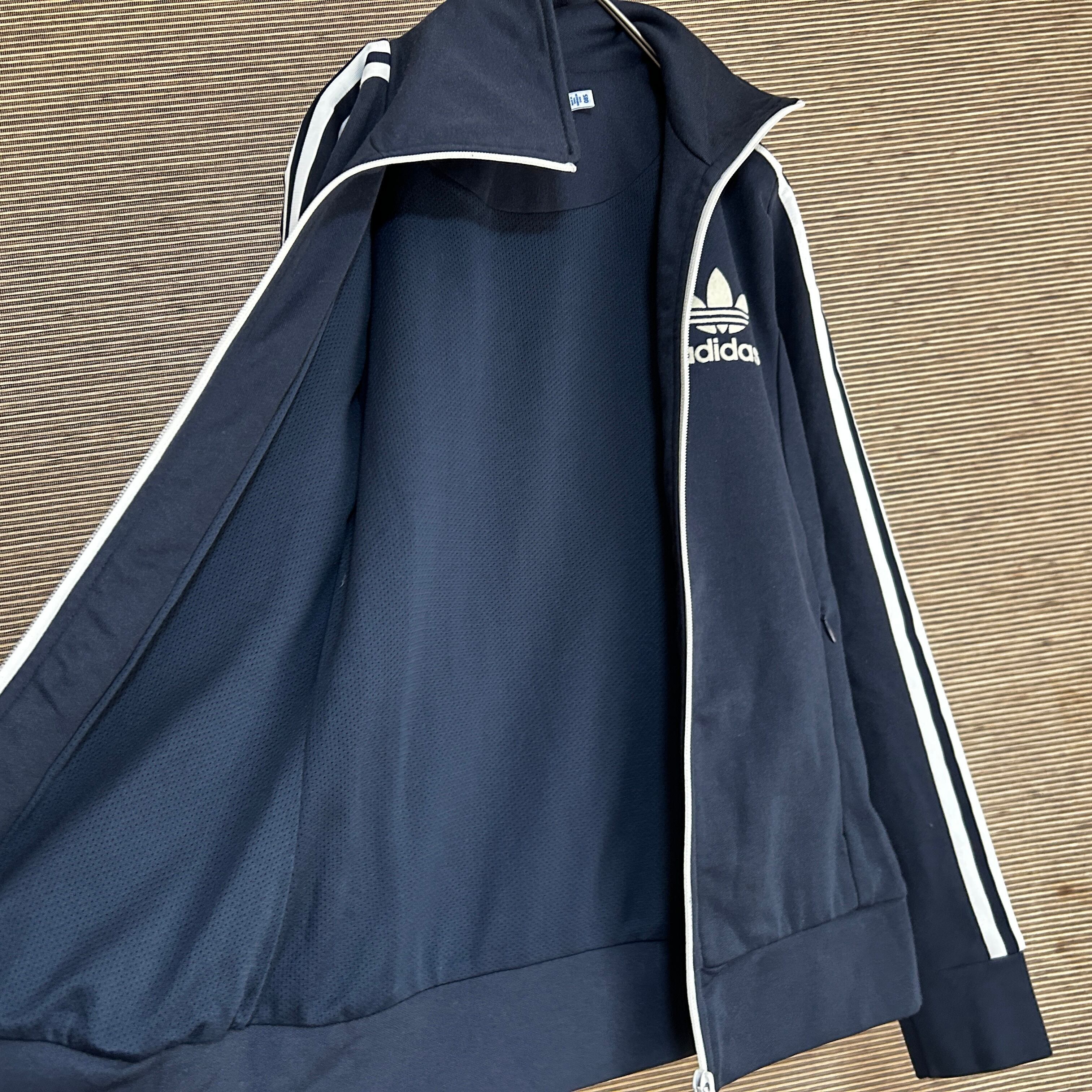 アディダス ジャージトラックジャケット ヨーロッパ トレフォイルネイビー白G 古着 フロッキープリント ワンポイントロゴ