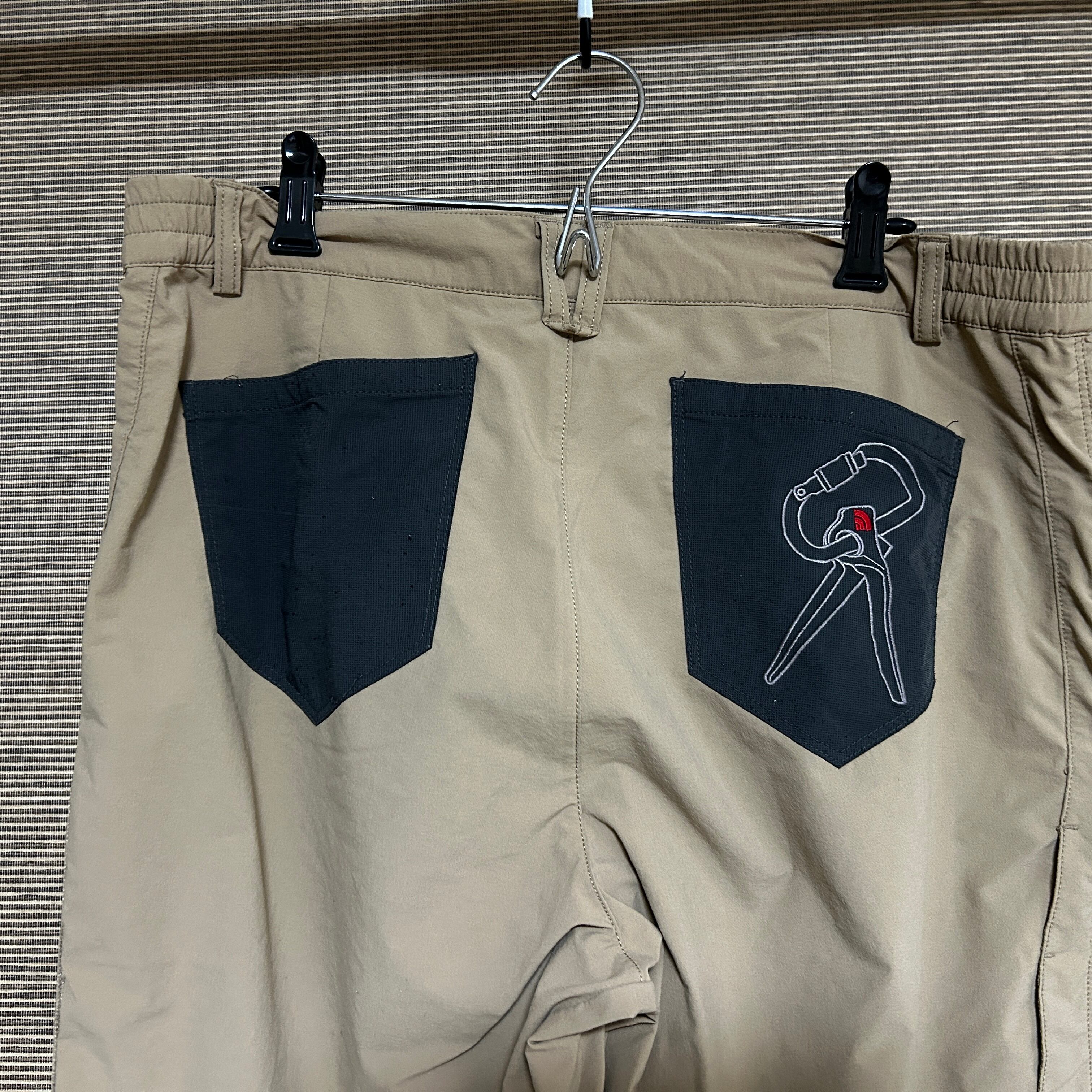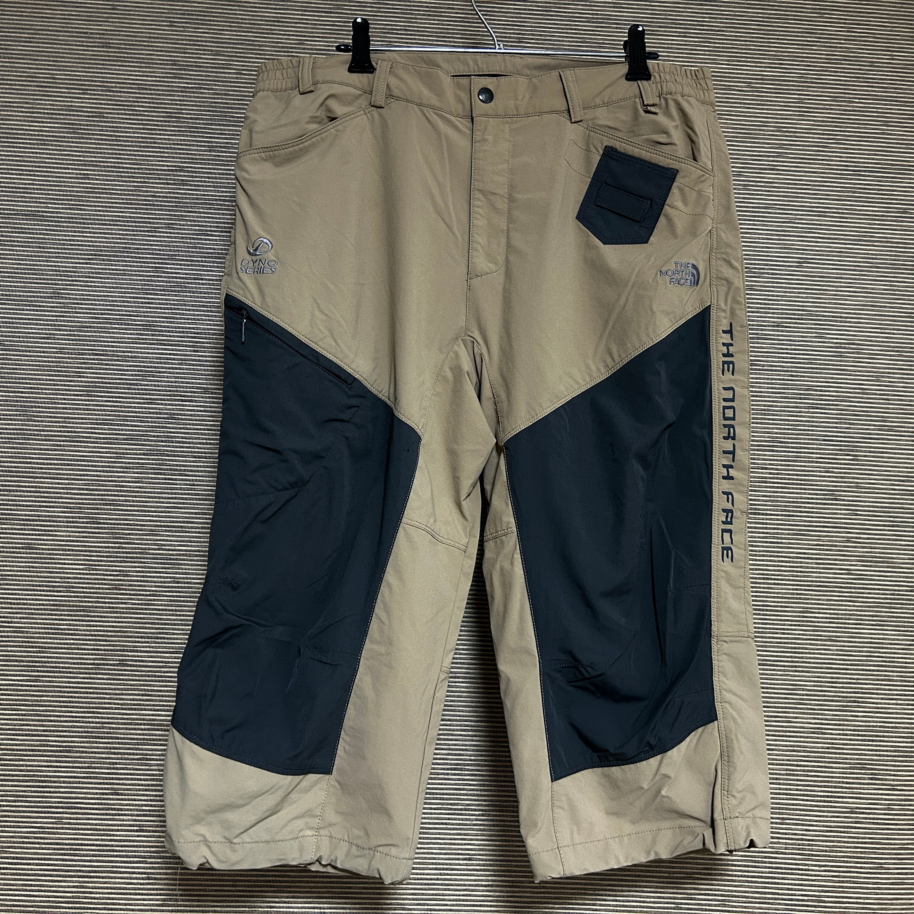 ノースフェイス ハーフパンツ 七分丈 ブラウン 刺繍 ダイノシリーズJ1 古着 ワンポイントロゴ ビッグロゴ ストレッチ