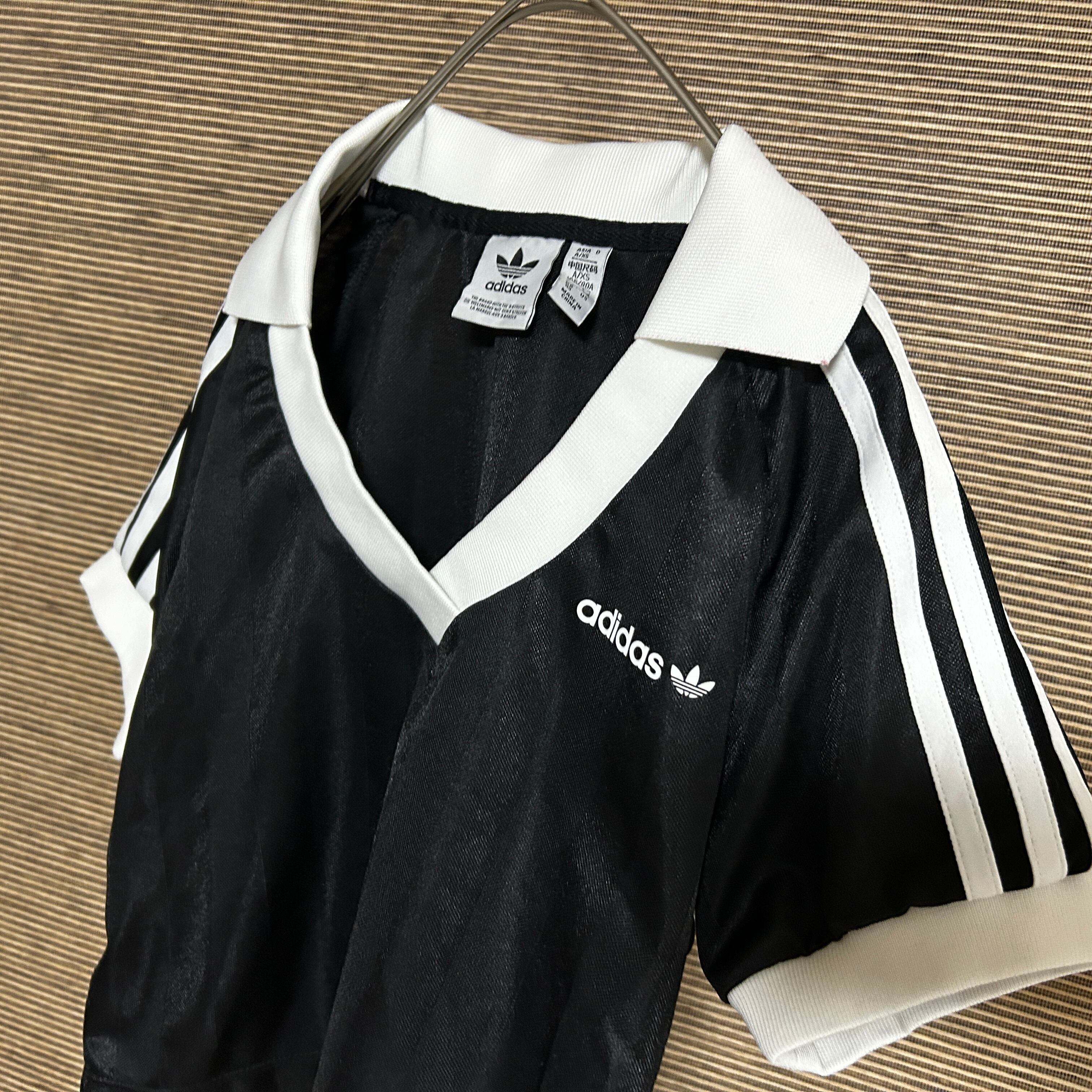 アディダス ショート丈半袖Tシャツ サッカーユニ トレフォイル ブラックJ1 古着 レディース ワンポイントロゴ 三本線