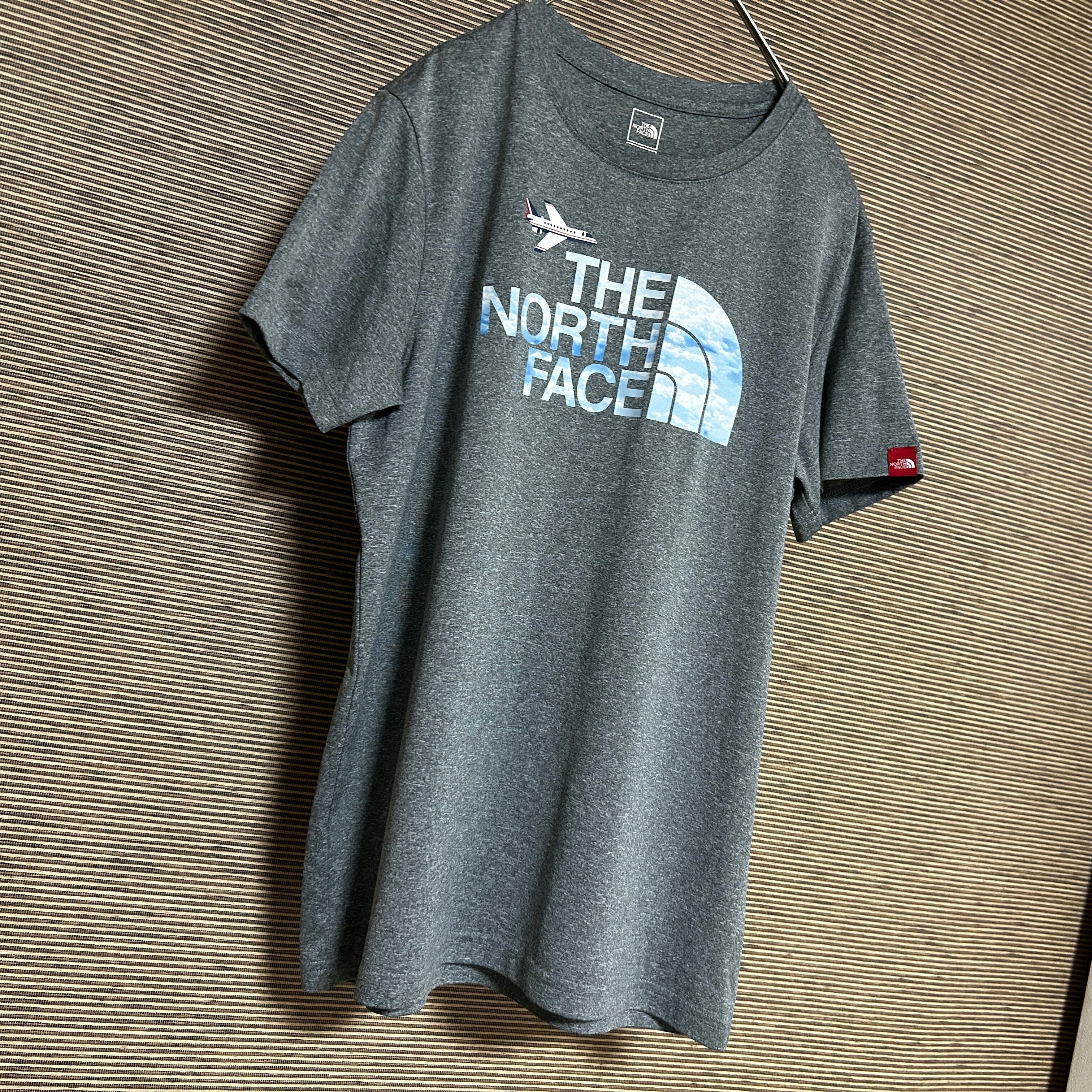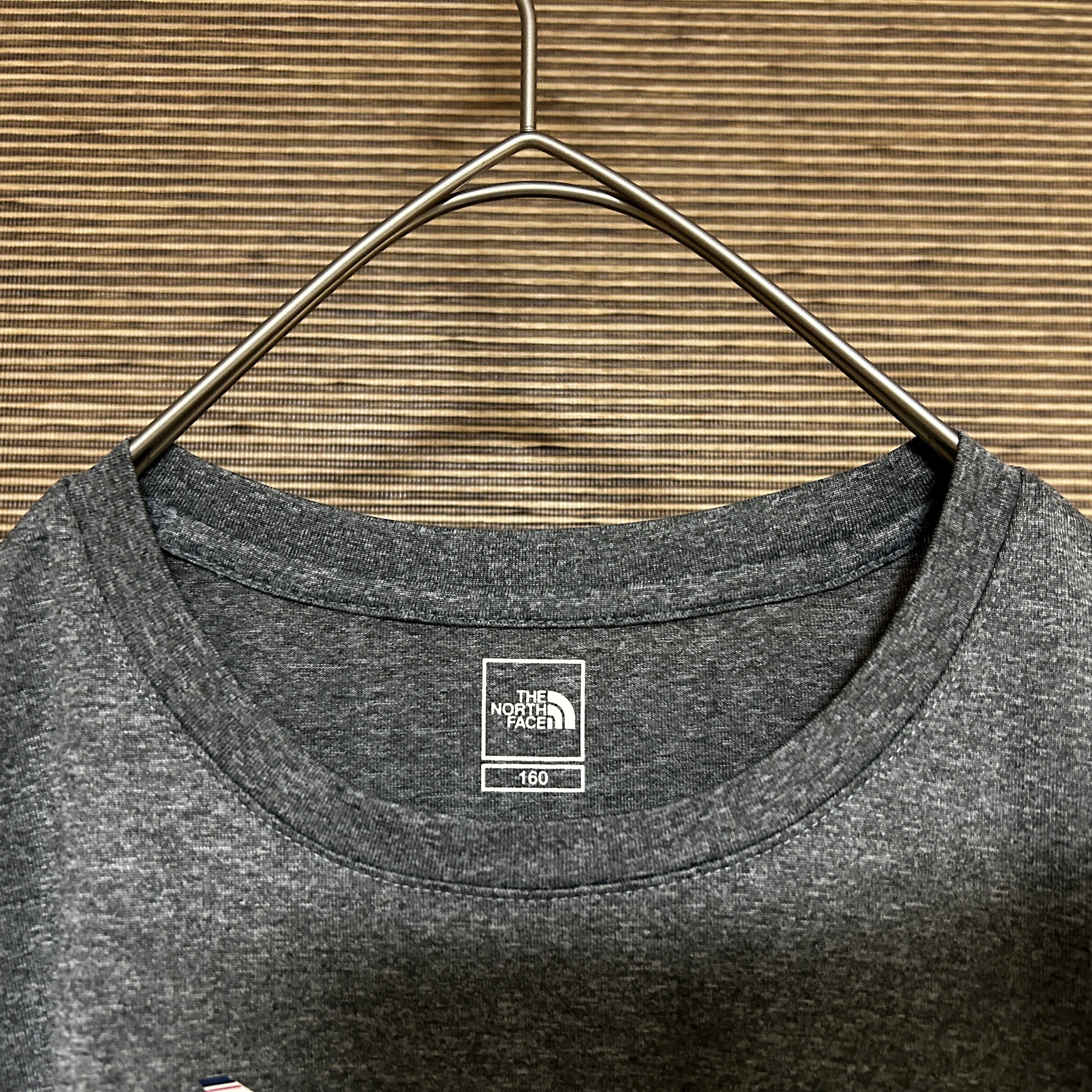 ノースフェイス 半袖Tシャツ マーブルグレー子供160 速乾 飛行機J1 古着 キッズ デカロゴ レディース