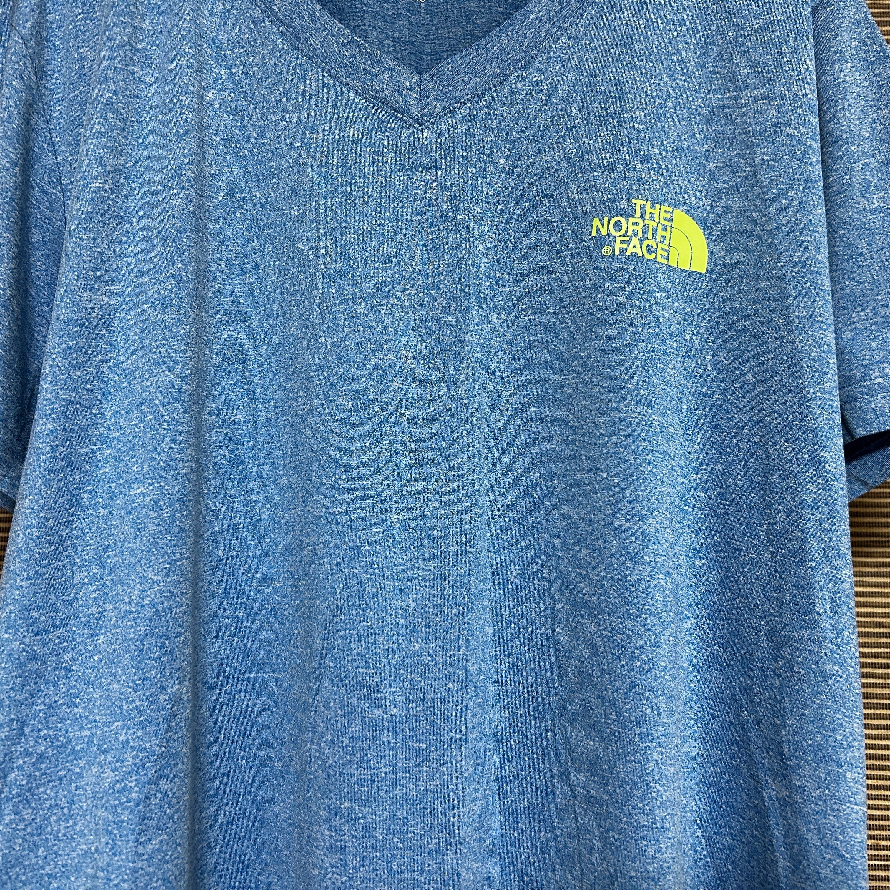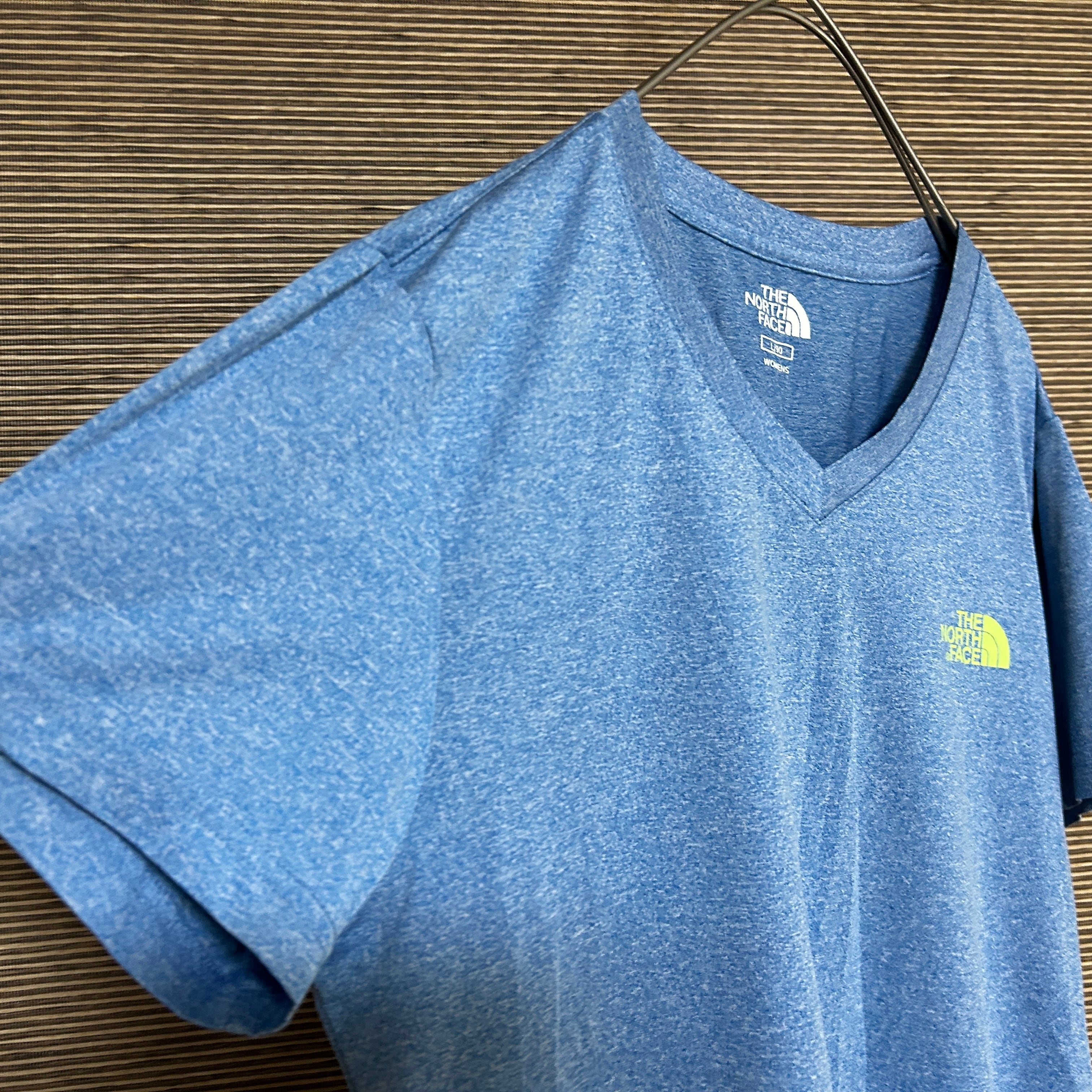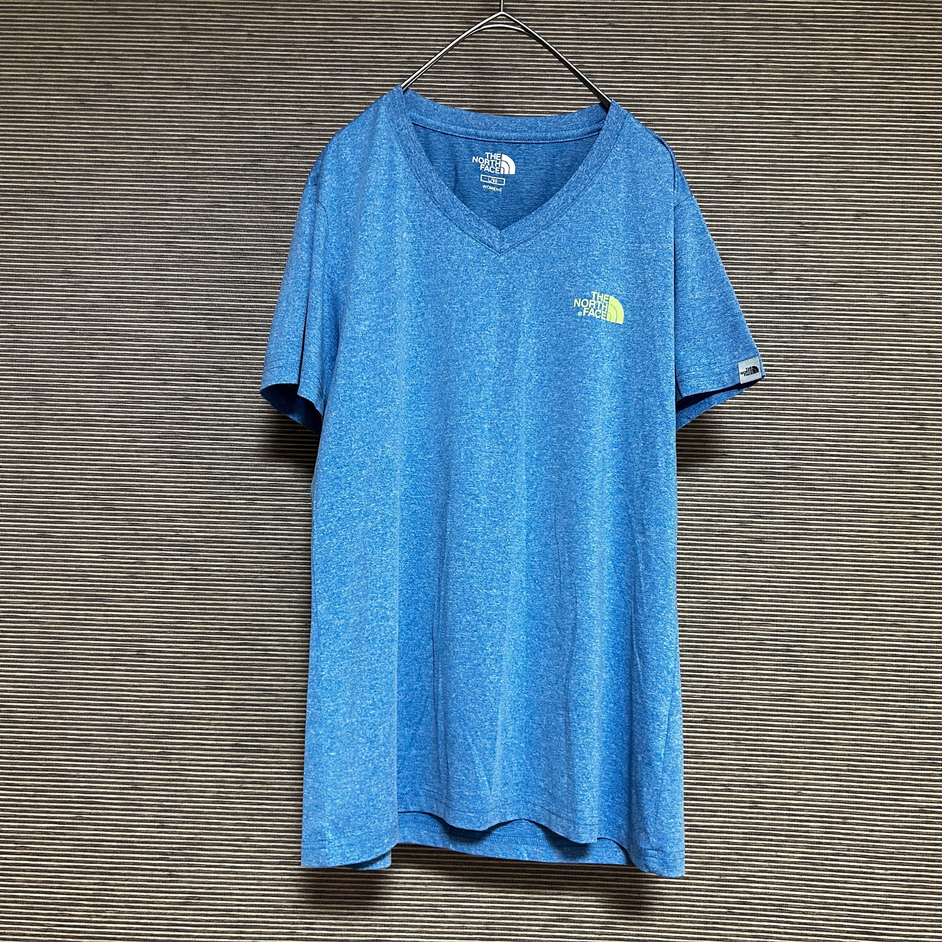 ノースフェイス 半袖Tシャツ 水色 Vネック 速乾 ワンポイントロゴ J1 古着 レディース ストレッチ 韓国限定ホワイトレーベル