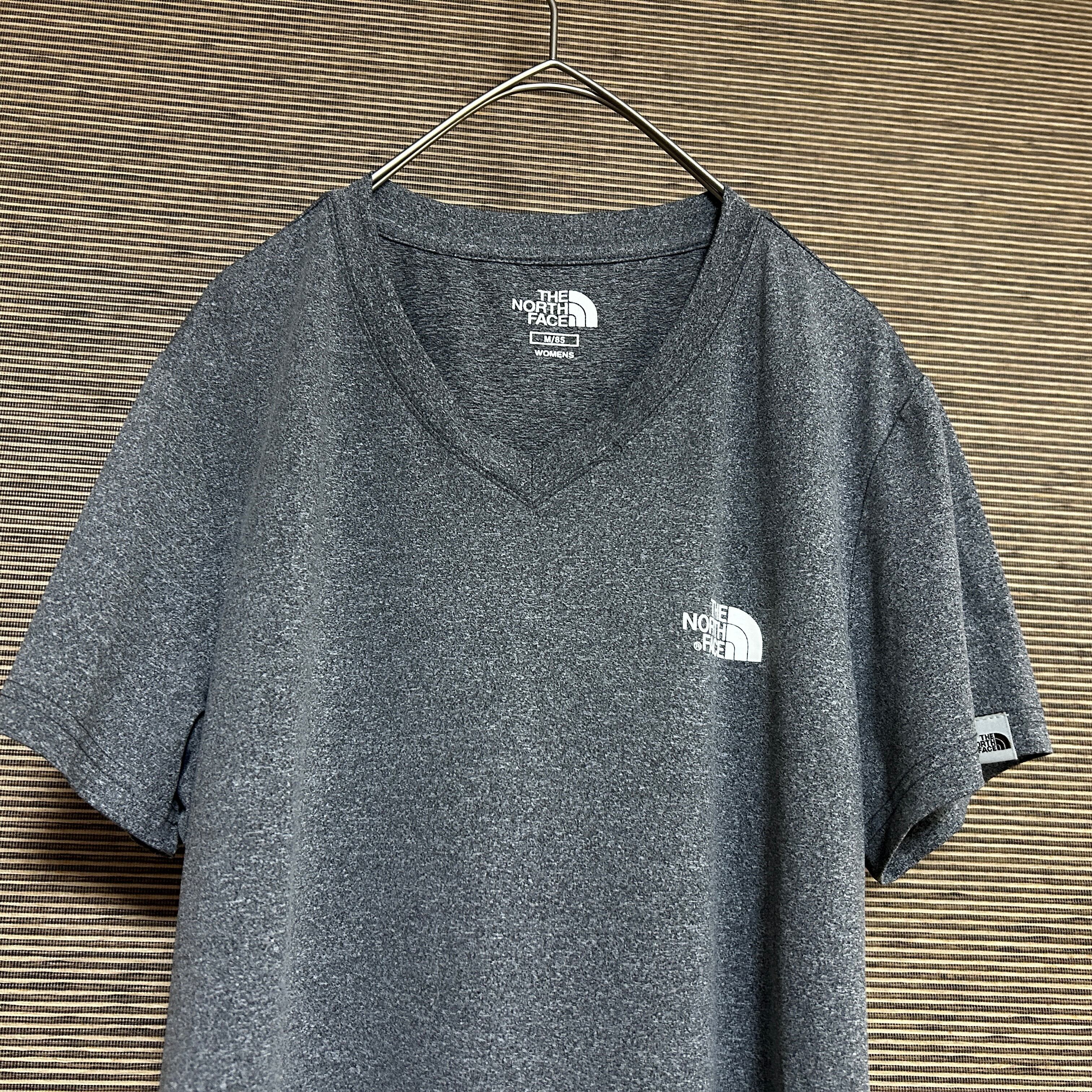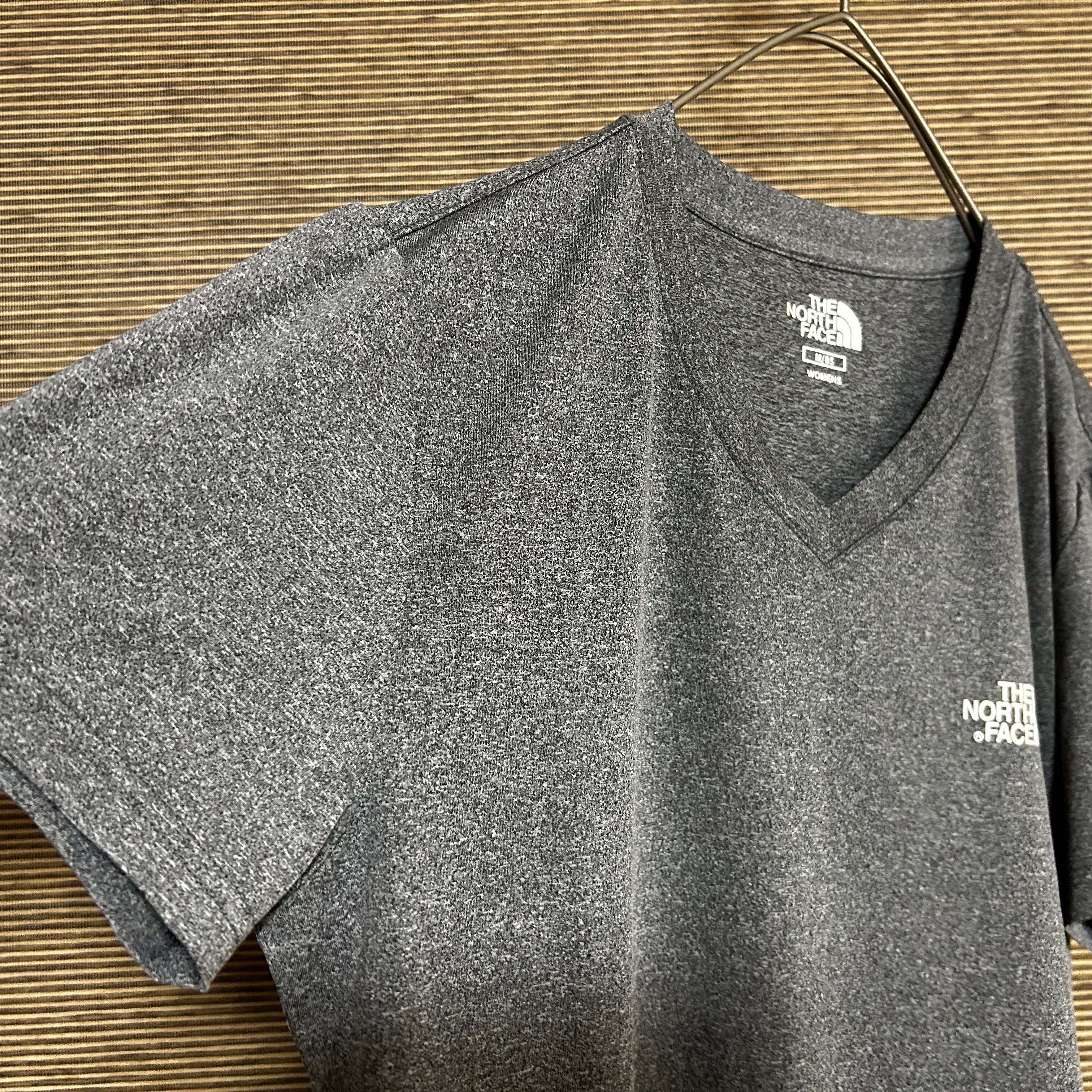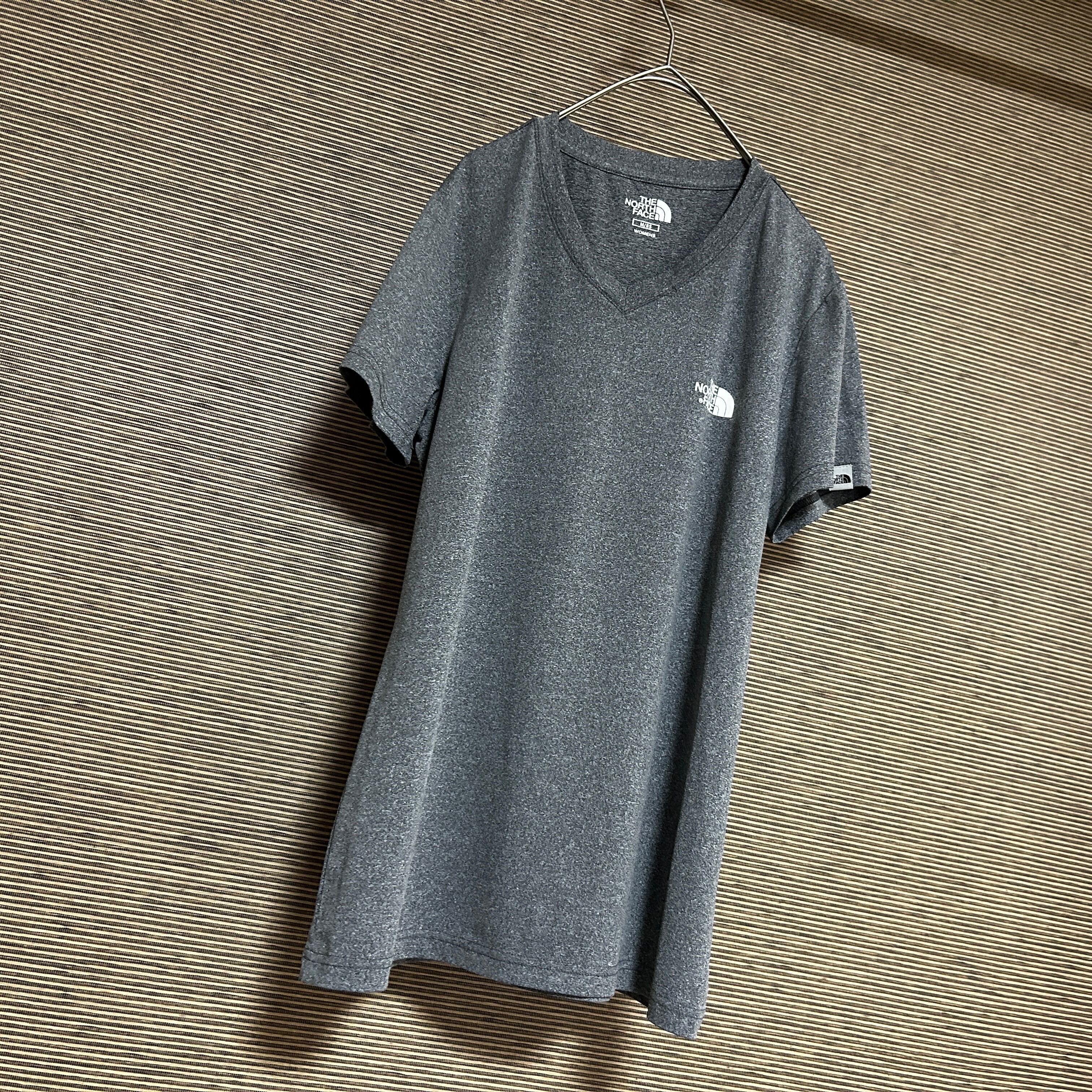 ノースフェイス 半袖Tシャツ グレー Vネック 速乾 ワンポイントロゴJ1 古着 レディース ストレッチ 韓国限定ホワイトレーベル