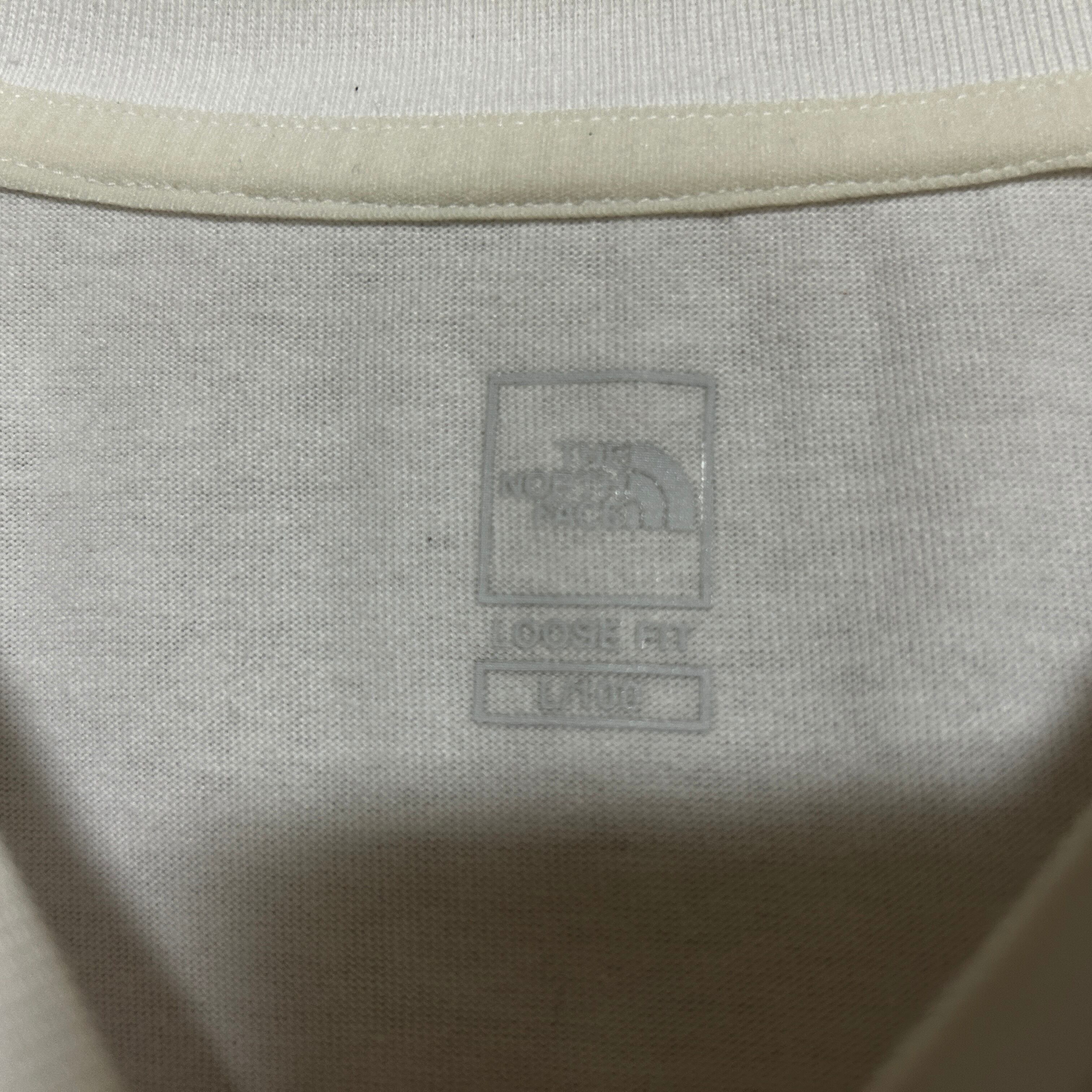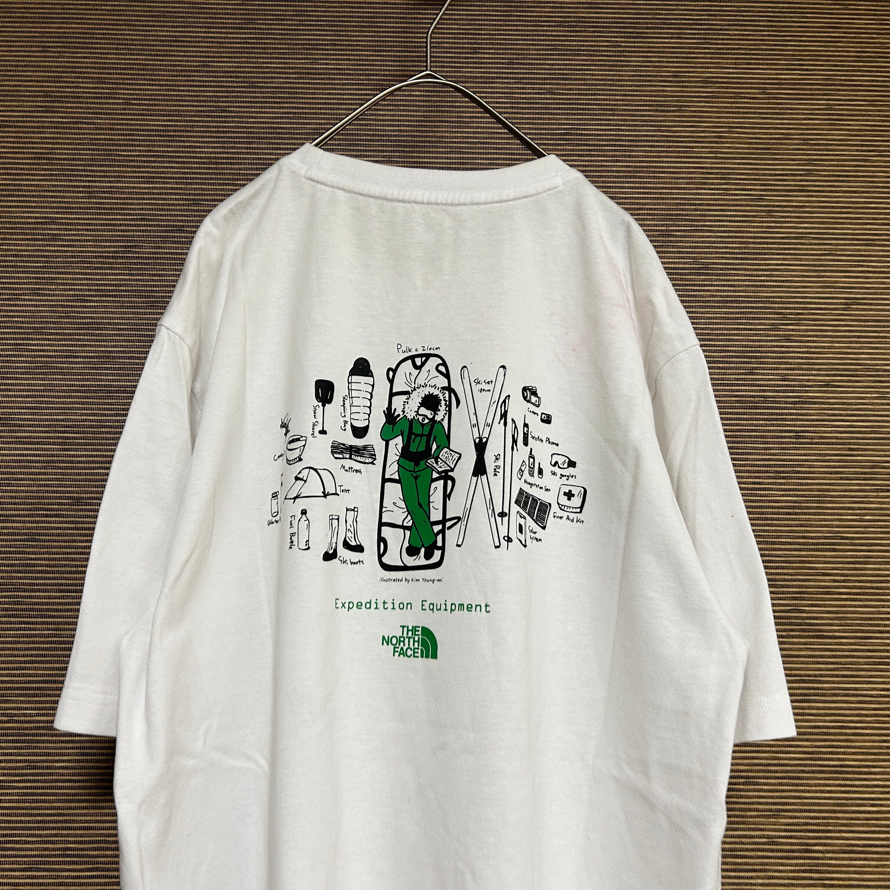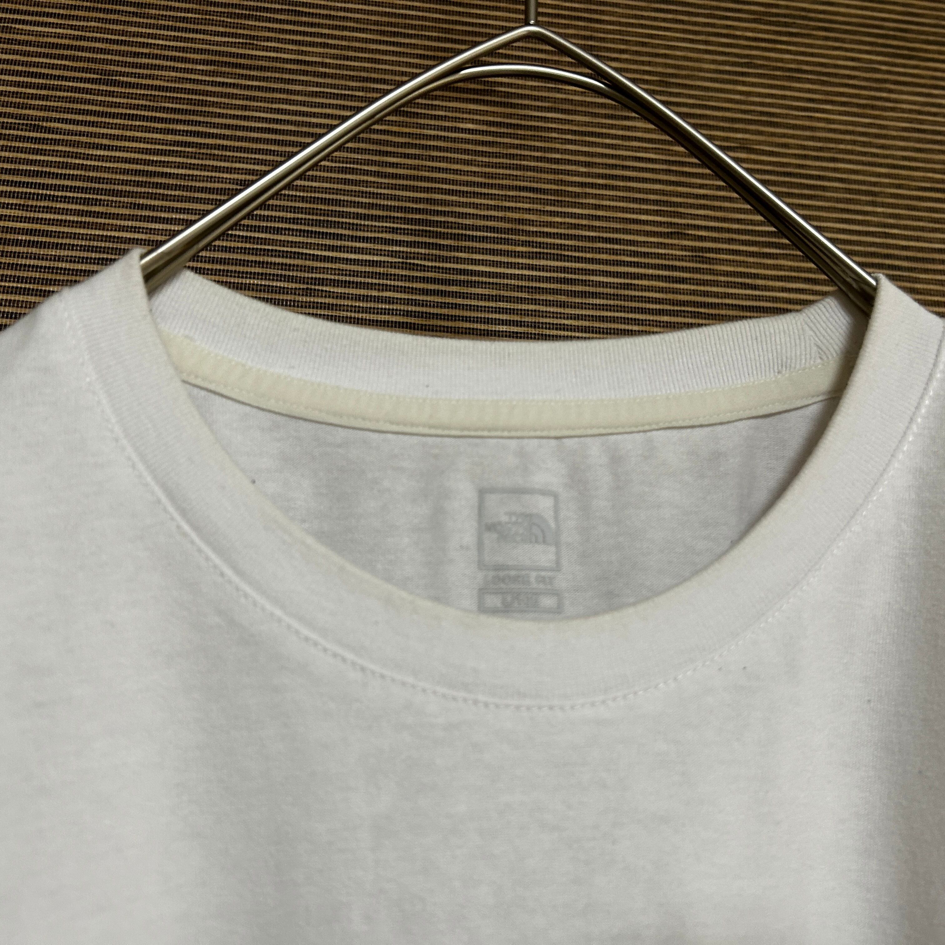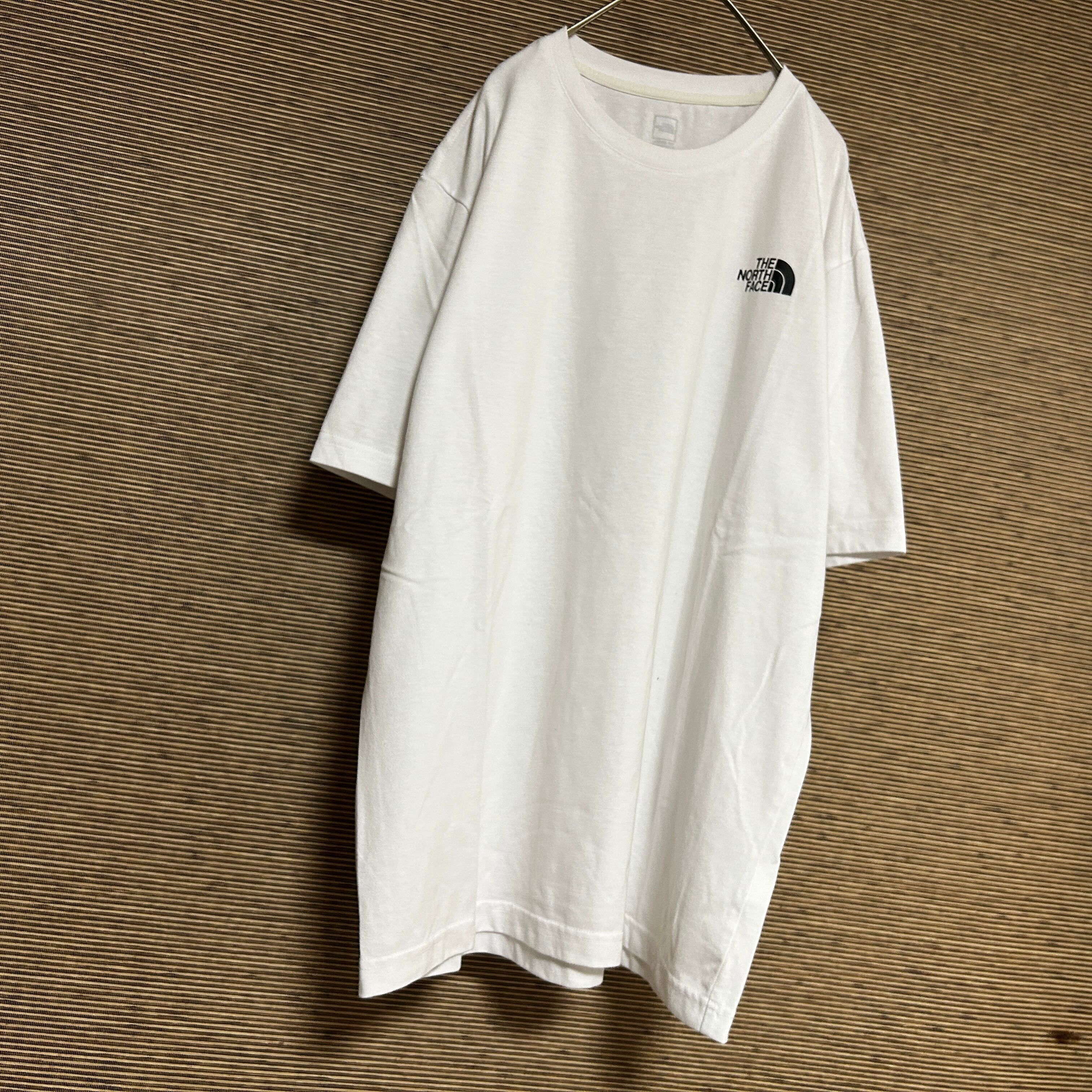 ノースフェイス 半袖Tシャツ 登山雪山キャンプ デカロゴ 白 ビッグロゴJ1 古着 バックプリント 寝袋