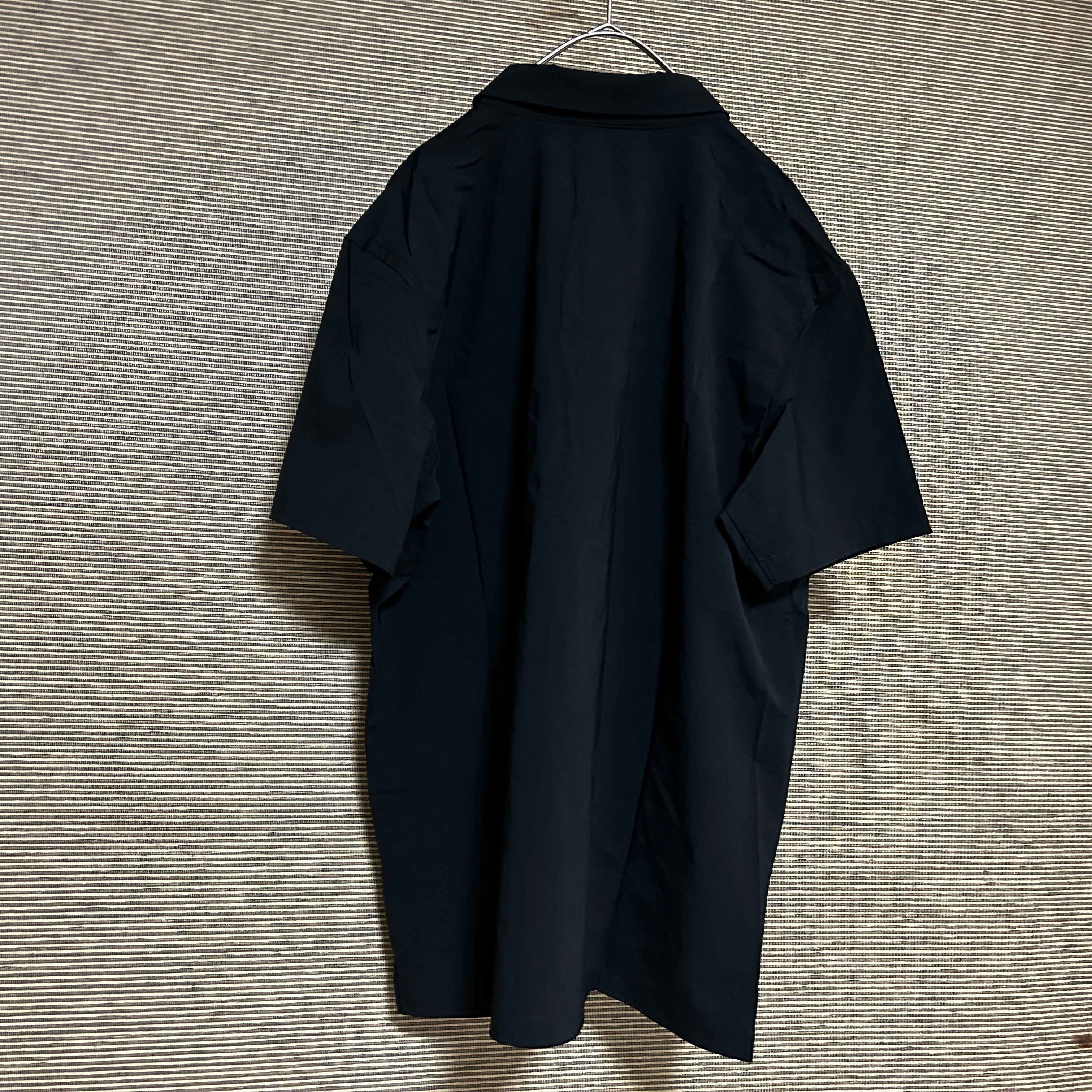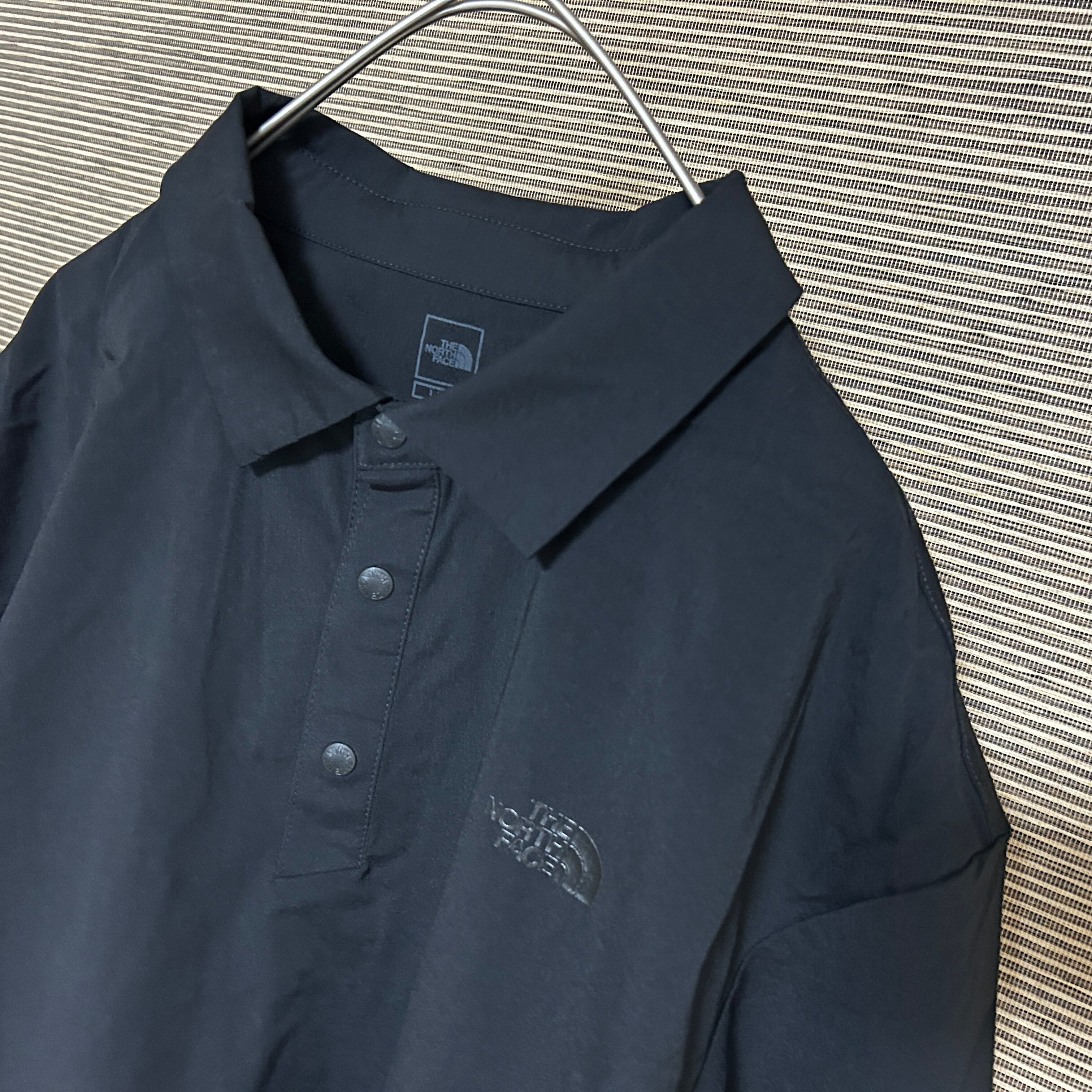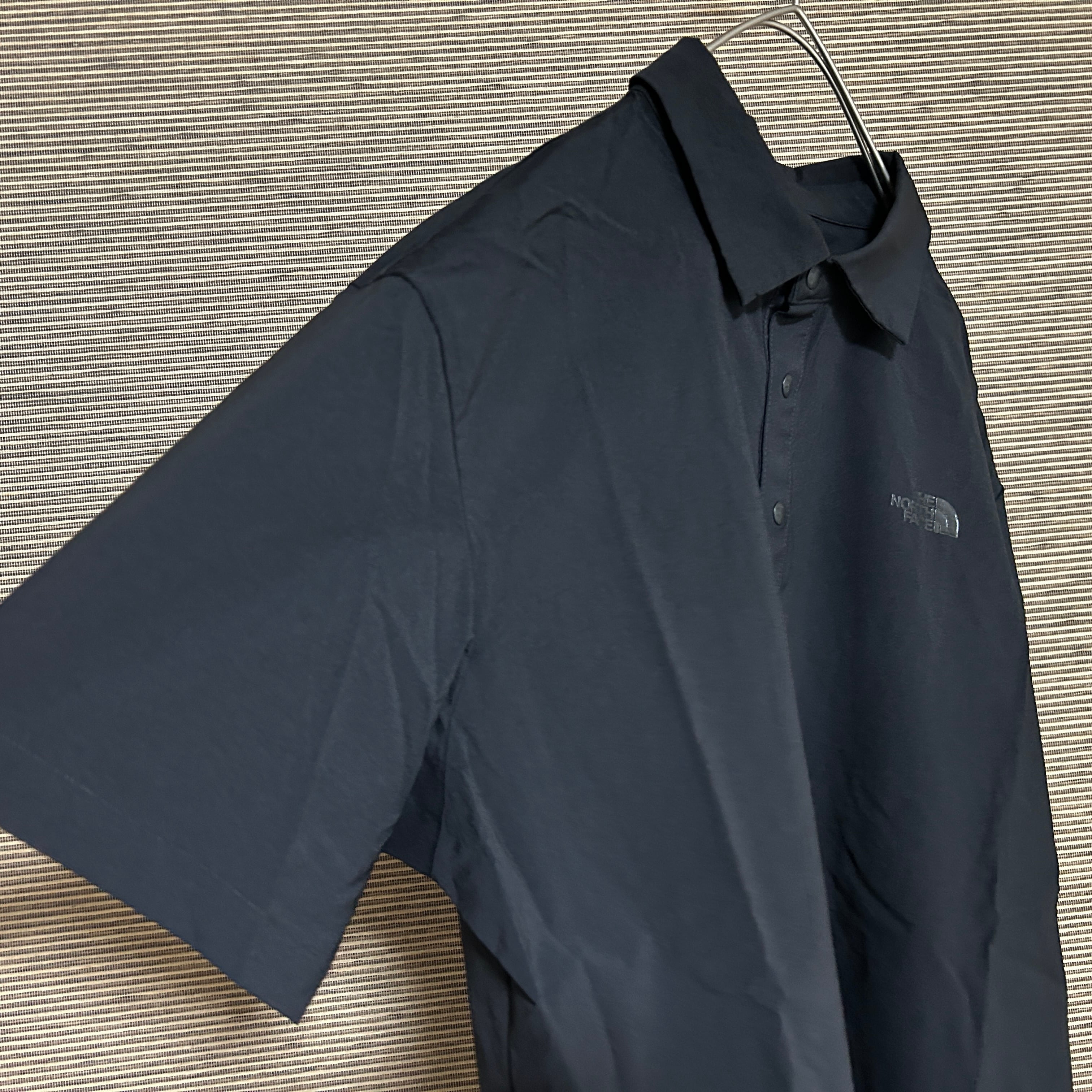 ノースフェイス 半袖ポロシャツ トップス 黒プリント ワンポイントストレッチJ1 古着 伸縮性 人気 ピステ