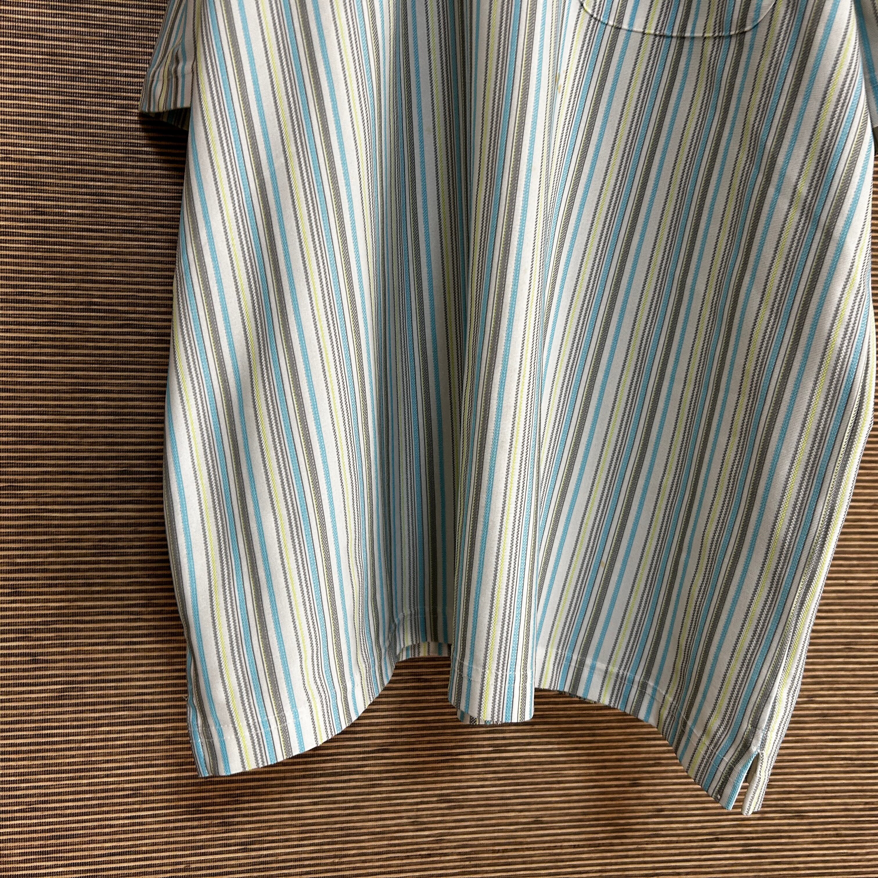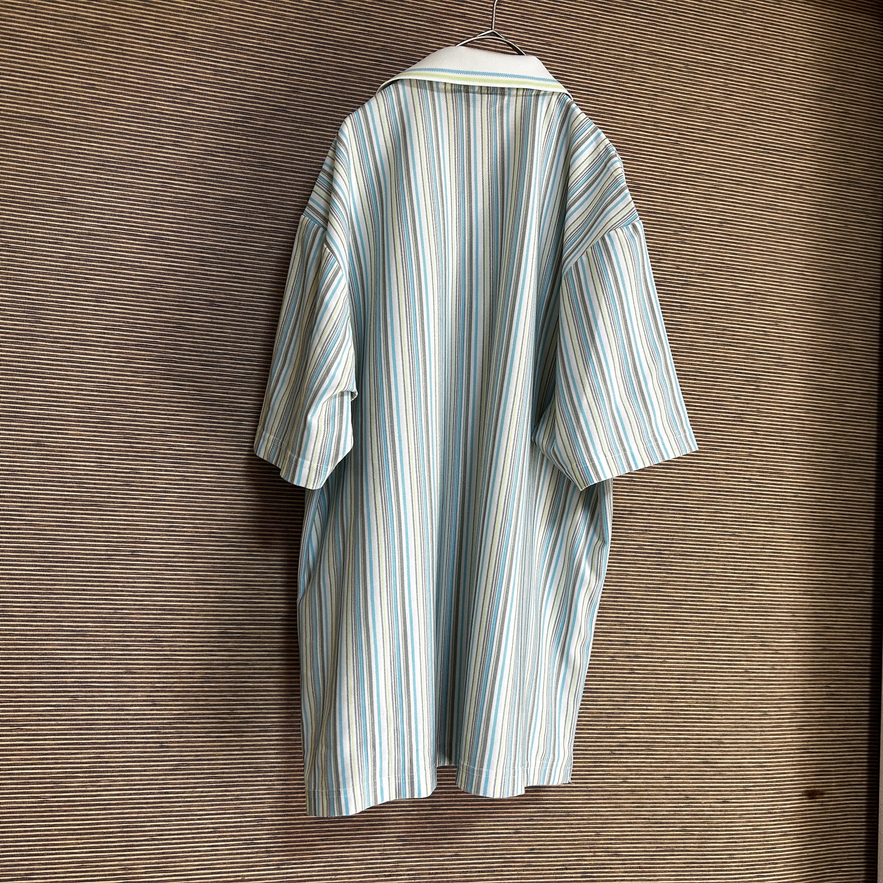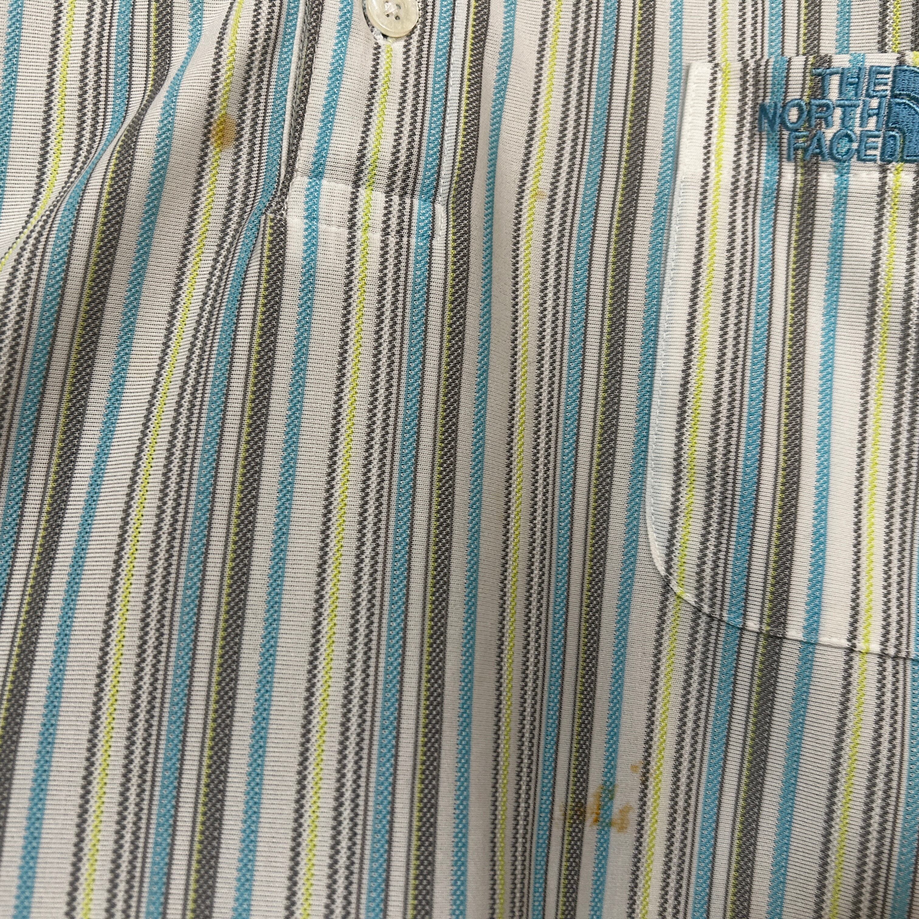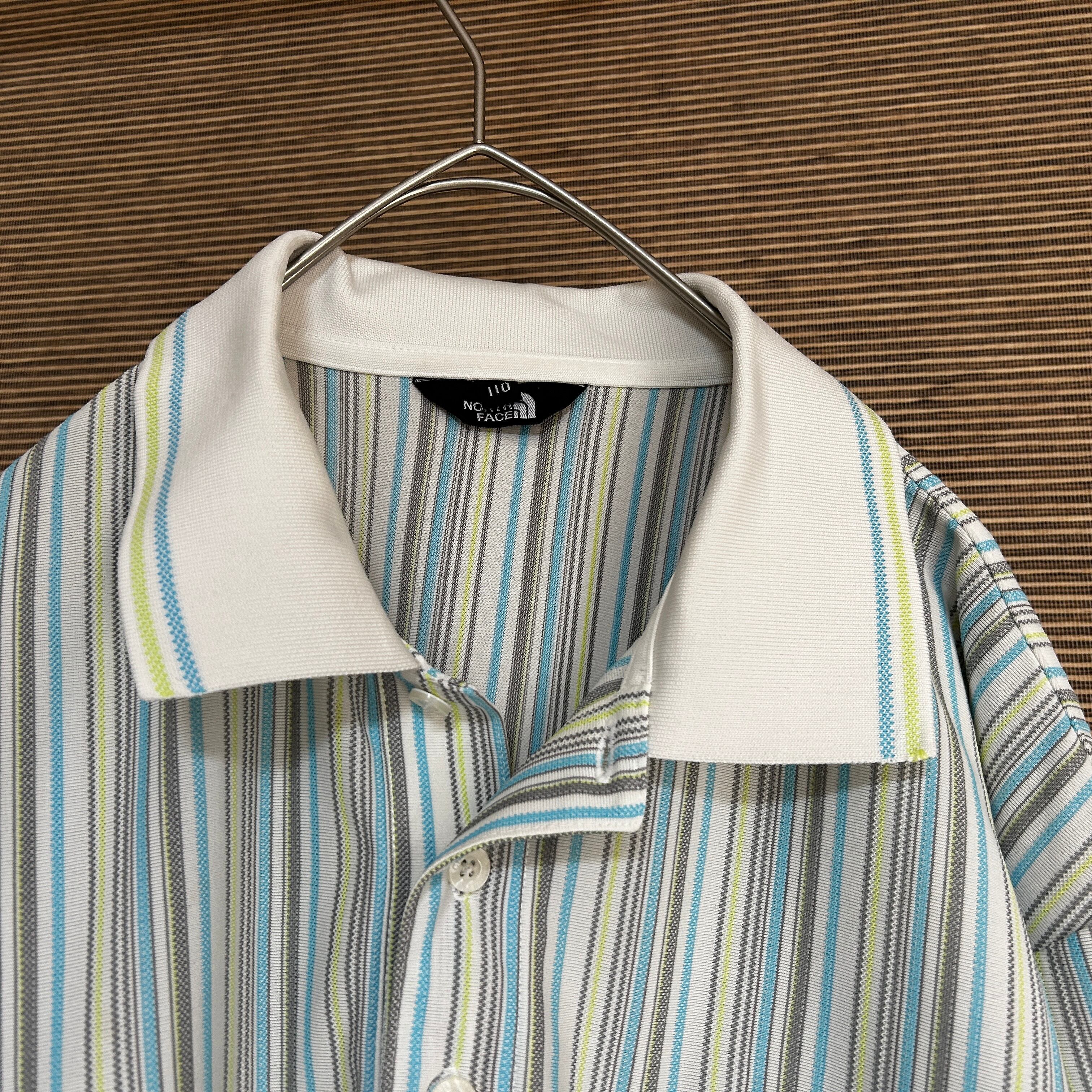 ノースフェイス 半袖ポロシャツ クールマックス ボーダー刺繍 白水色J1 古着 ビッグサイズ ワンポイントロゴ