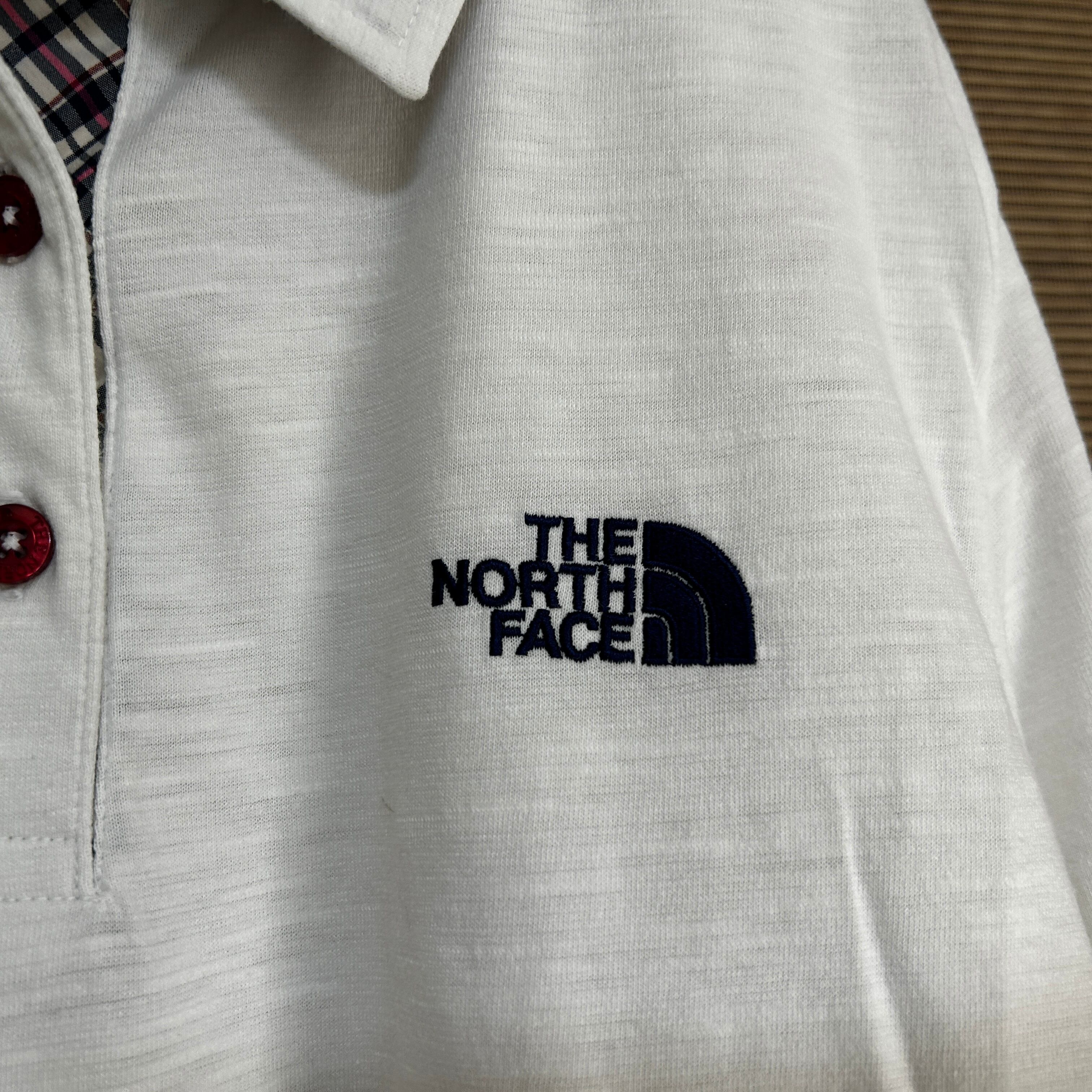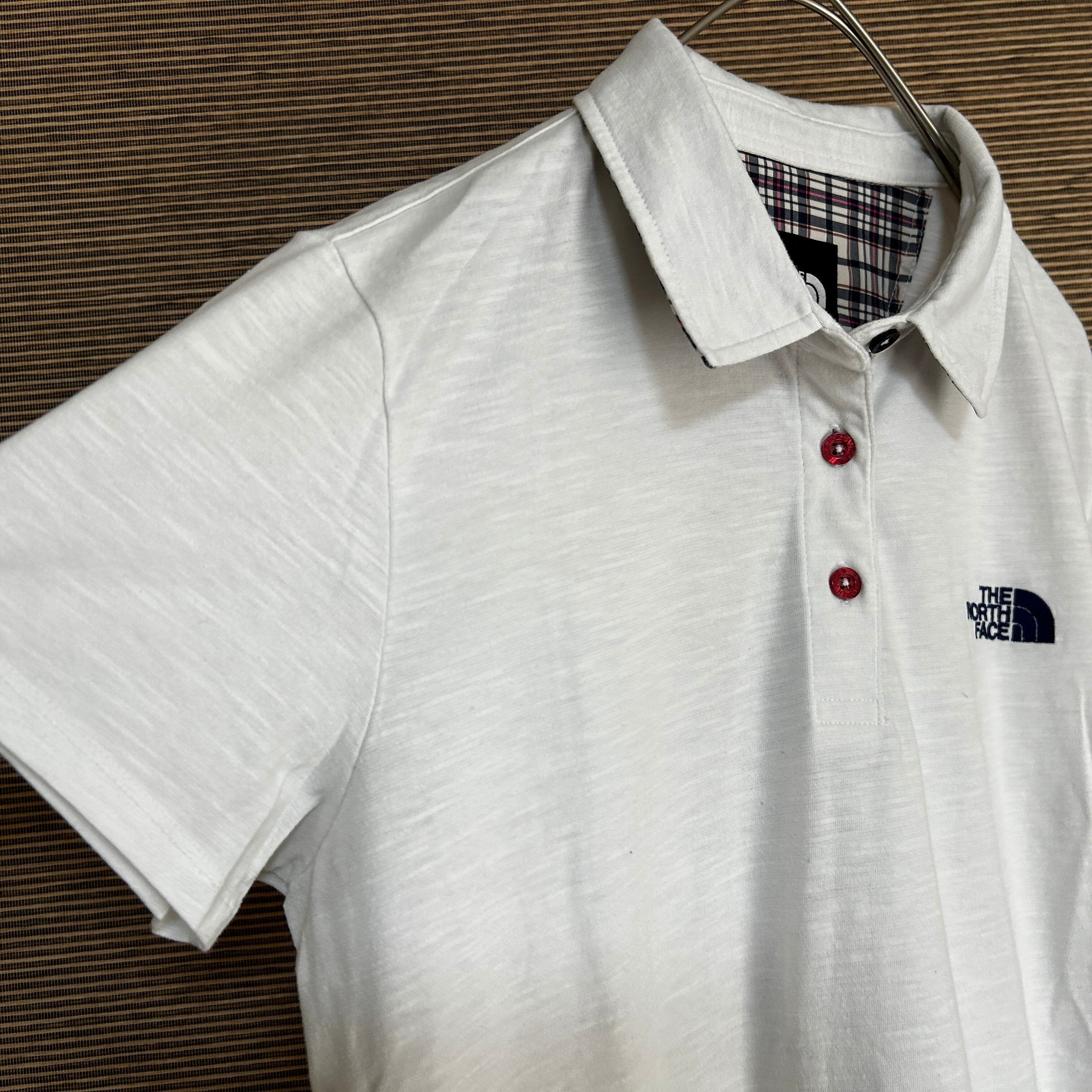 ノースフェイス 半袖ポロシャツ クールマックス 白 刺繍 チェックJ1 古着 レディース coolmax