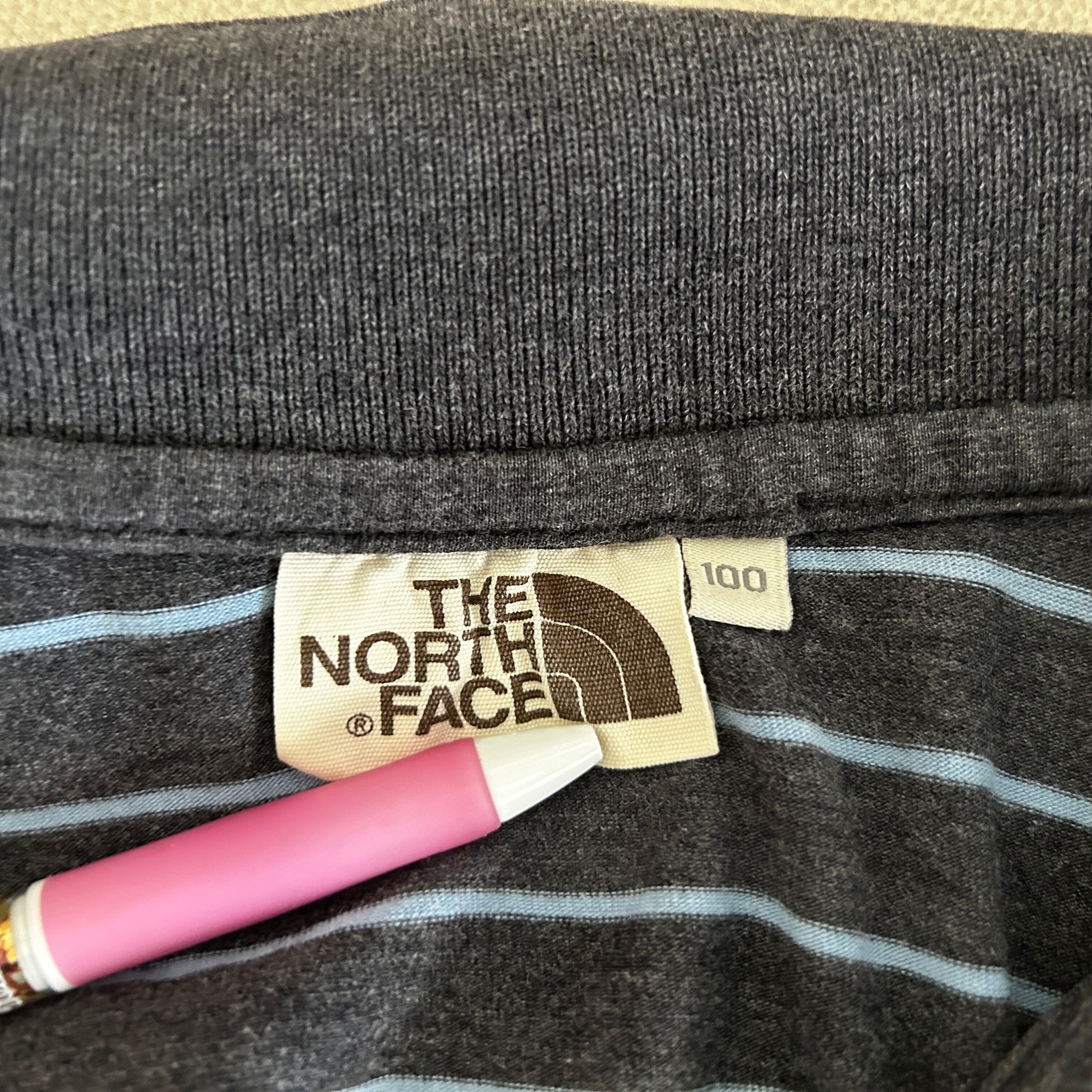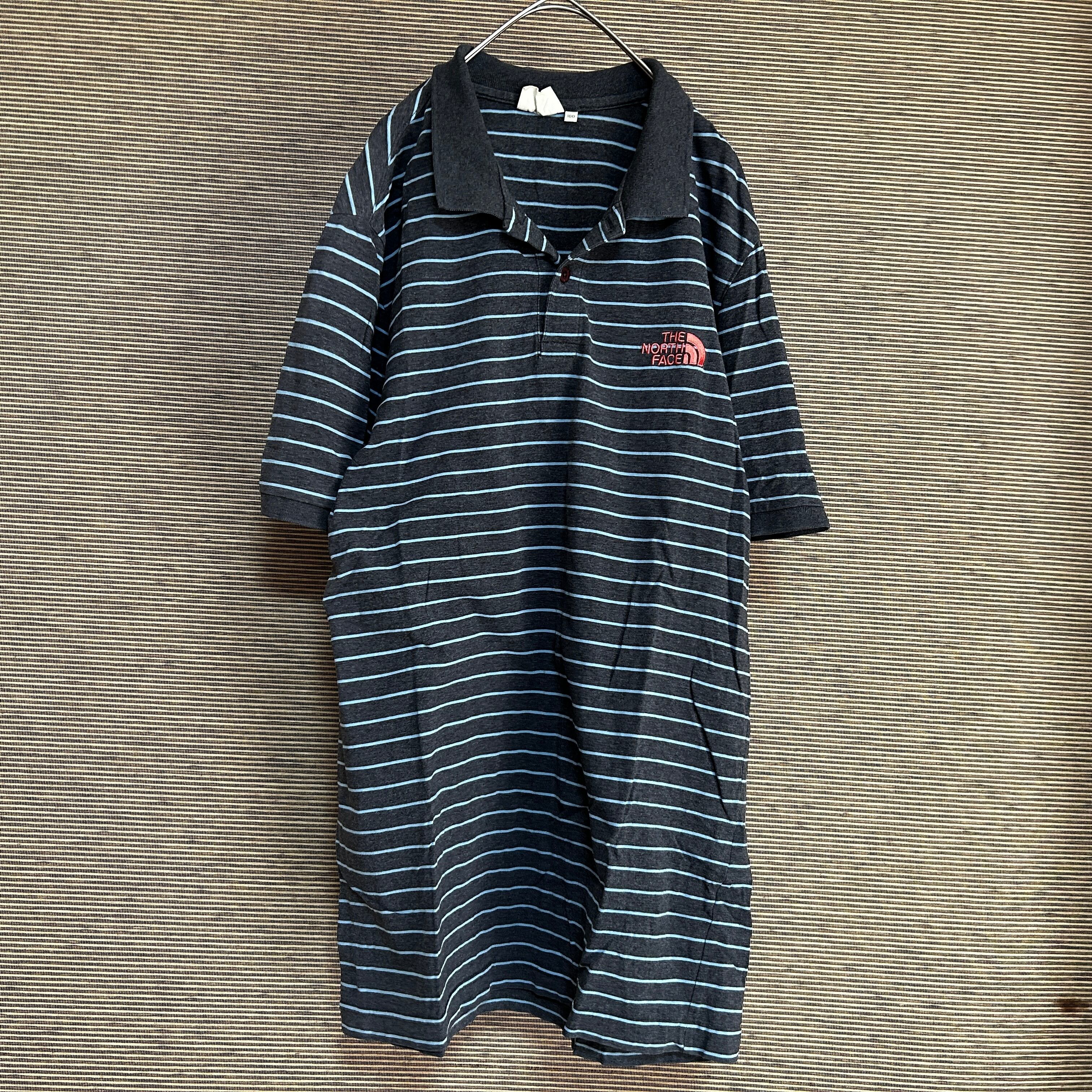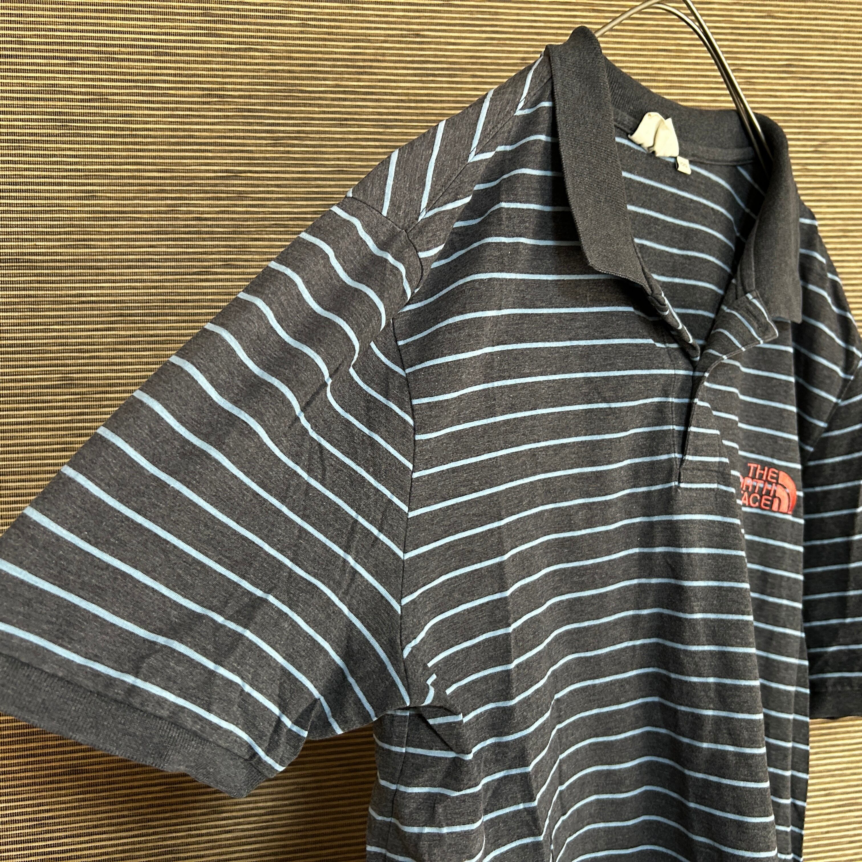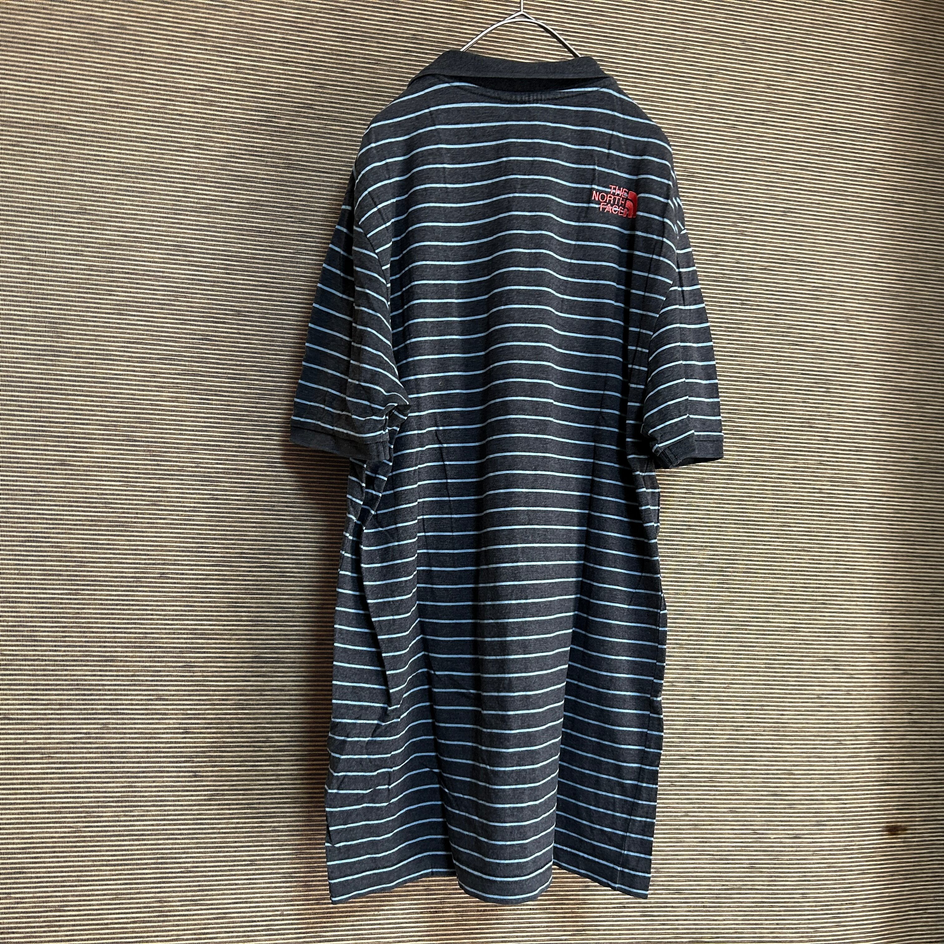 ノースフェイス 半袖ポロシャツ ダークグレー 刺繍 ピンク 韓国限定J1 古着 ホワイトレーベル ワンポイントロゴ