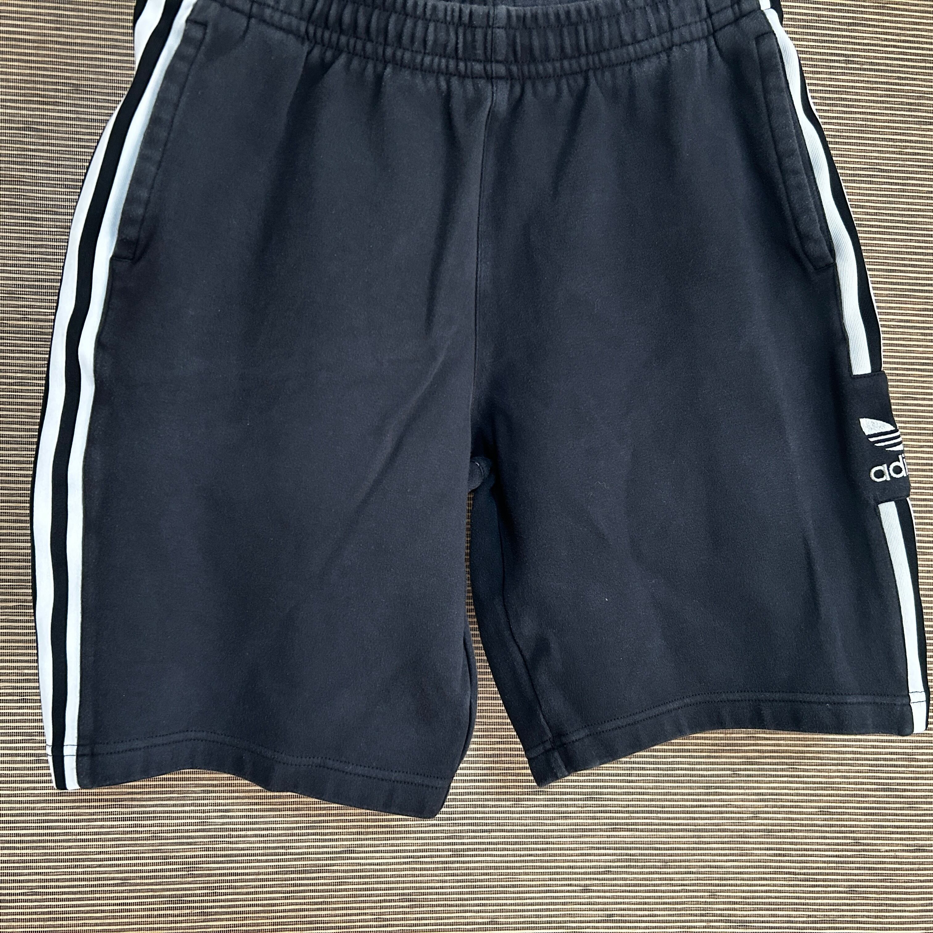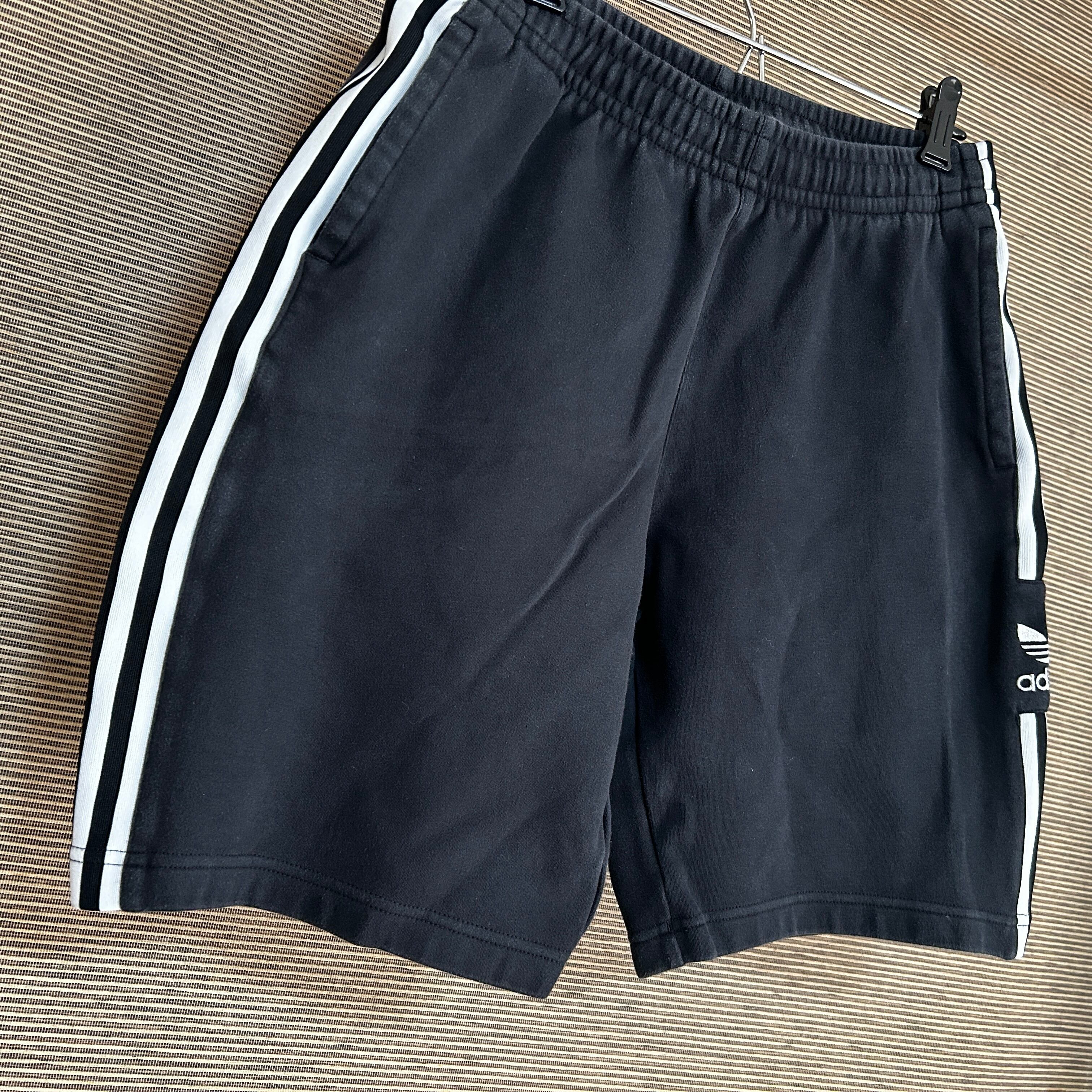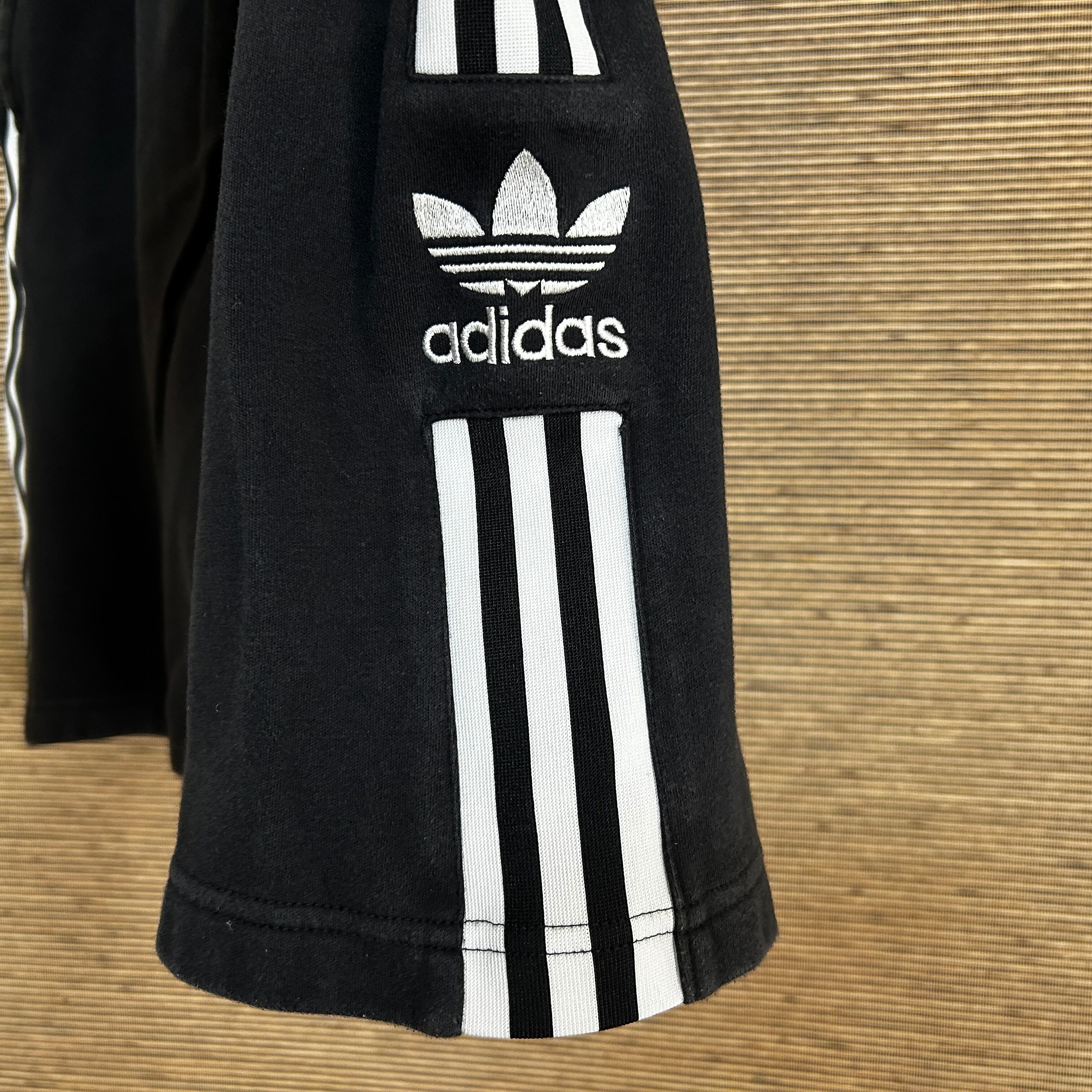 アディダス ハーフパンツ トレフォイル 黒ブラック 刺繍 ワンポインJ 古着 ブラック 人気 ビッグサイズ 三本線