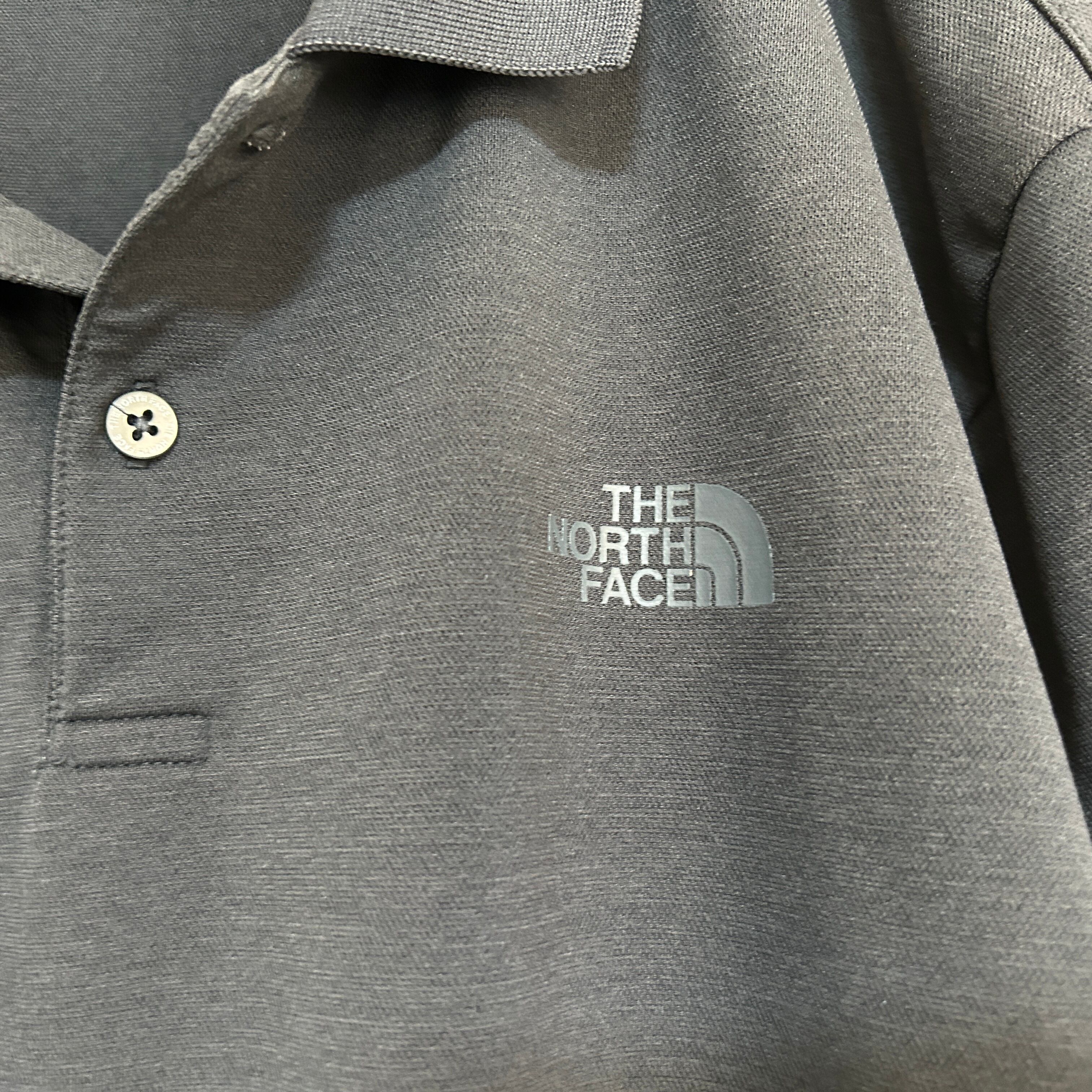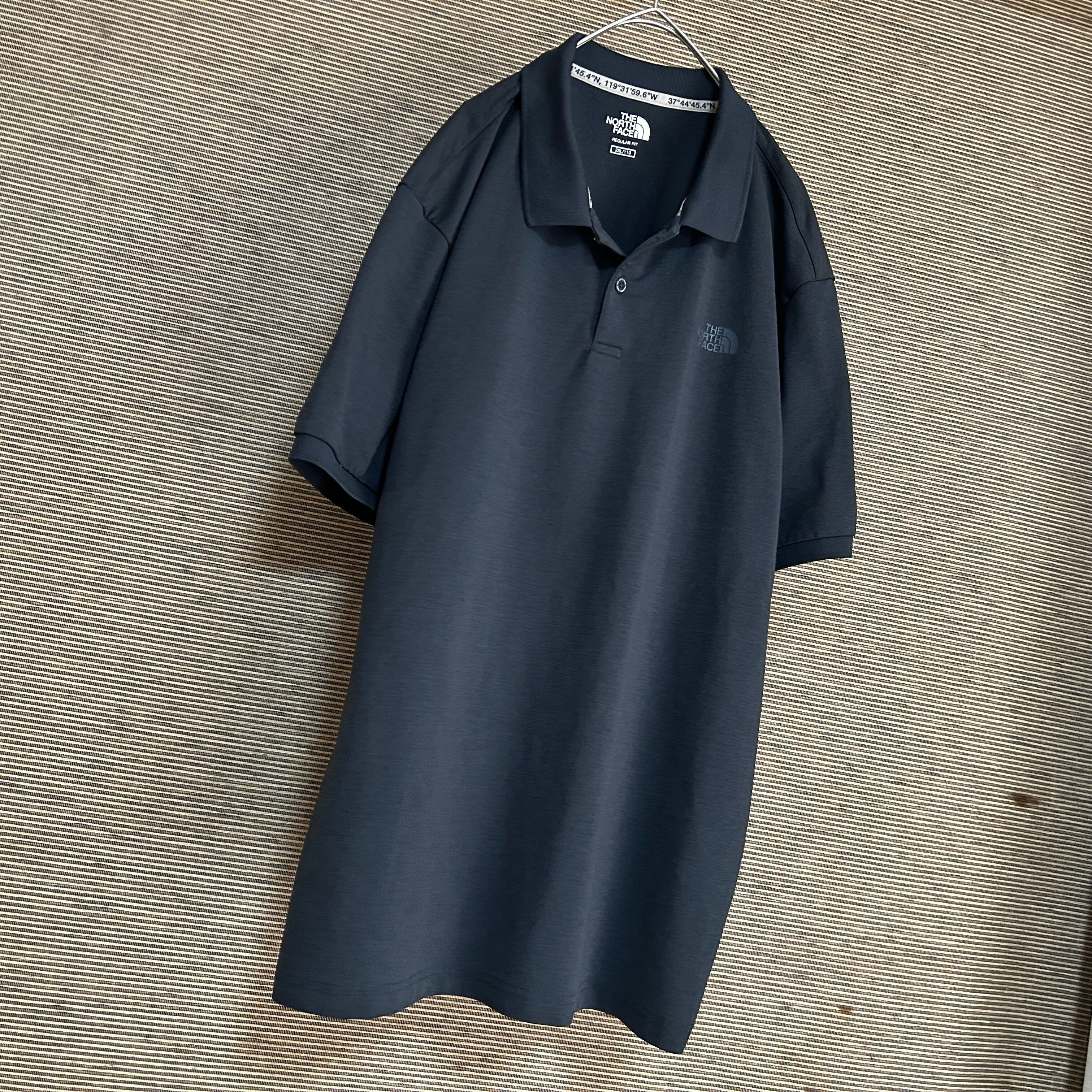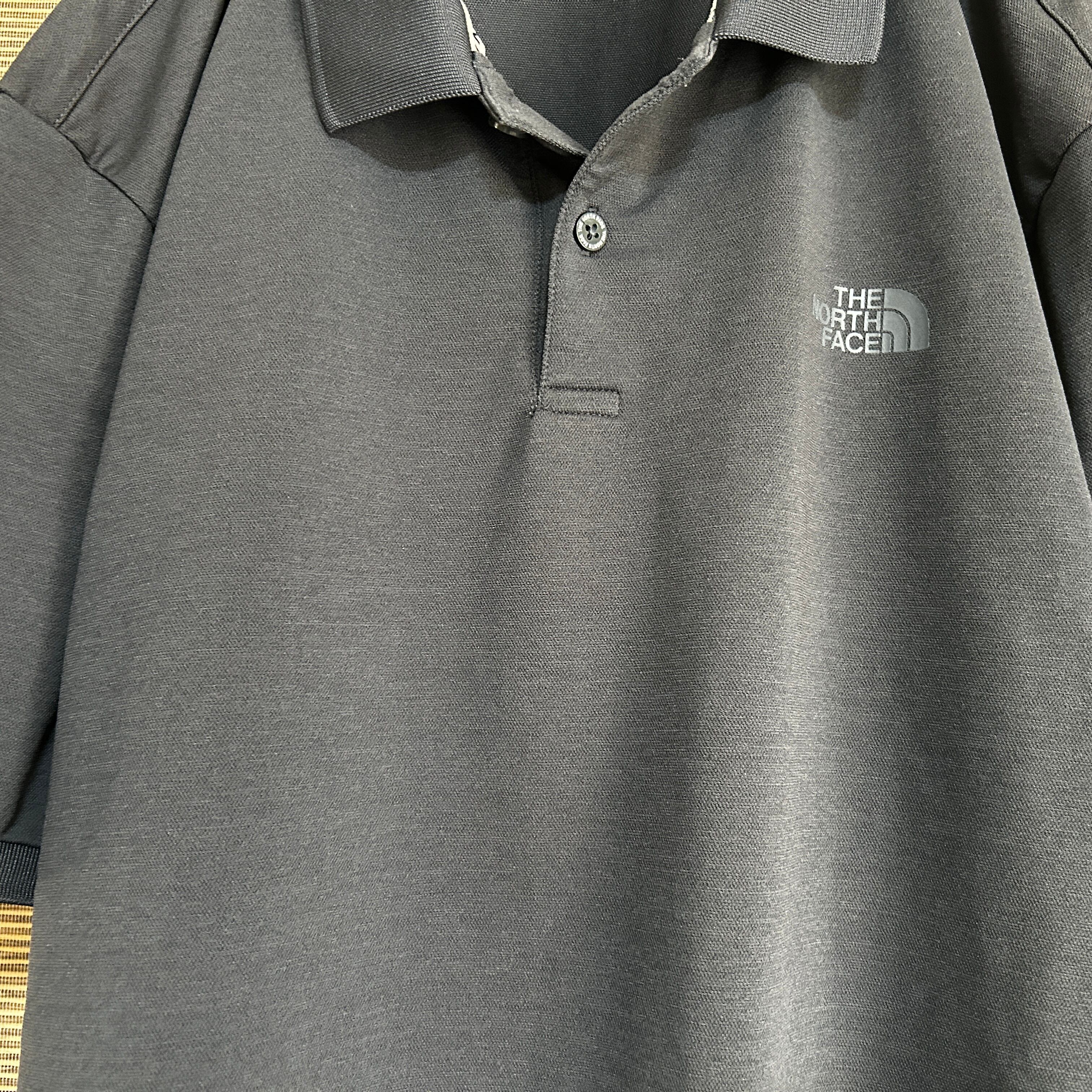 ノースフェイス 半袖ポロシャツ ダークグレー 2XL 刺繍ワンポイントロゴH1 古着 ビッグサイズ 激レア ゆるだぼ プリントロゴ