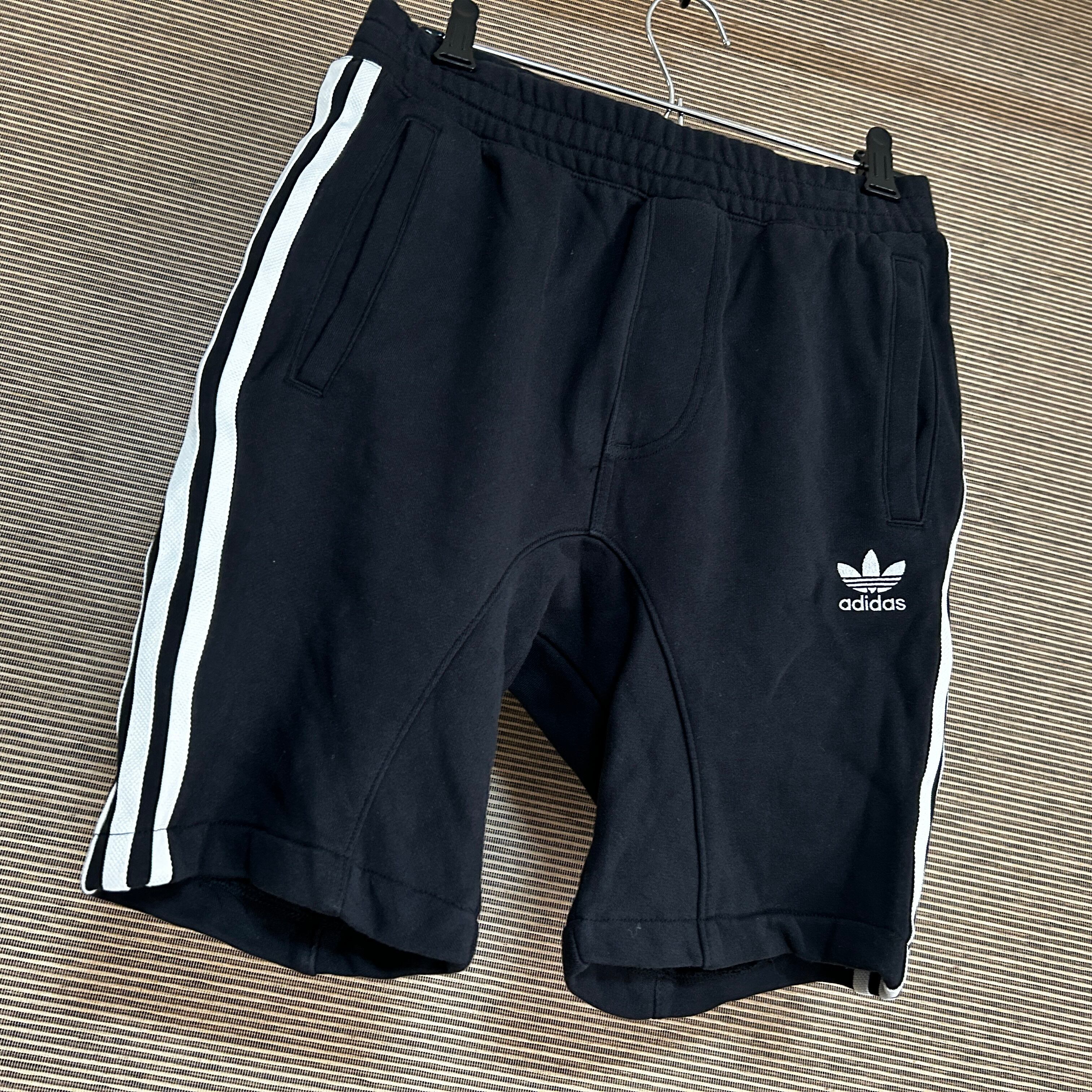 アディダス ハーフパンツ トレフォイル 黒ブラック 刺繍 スウェットH1 古着 人気 三本線 ワンポイントロゴ