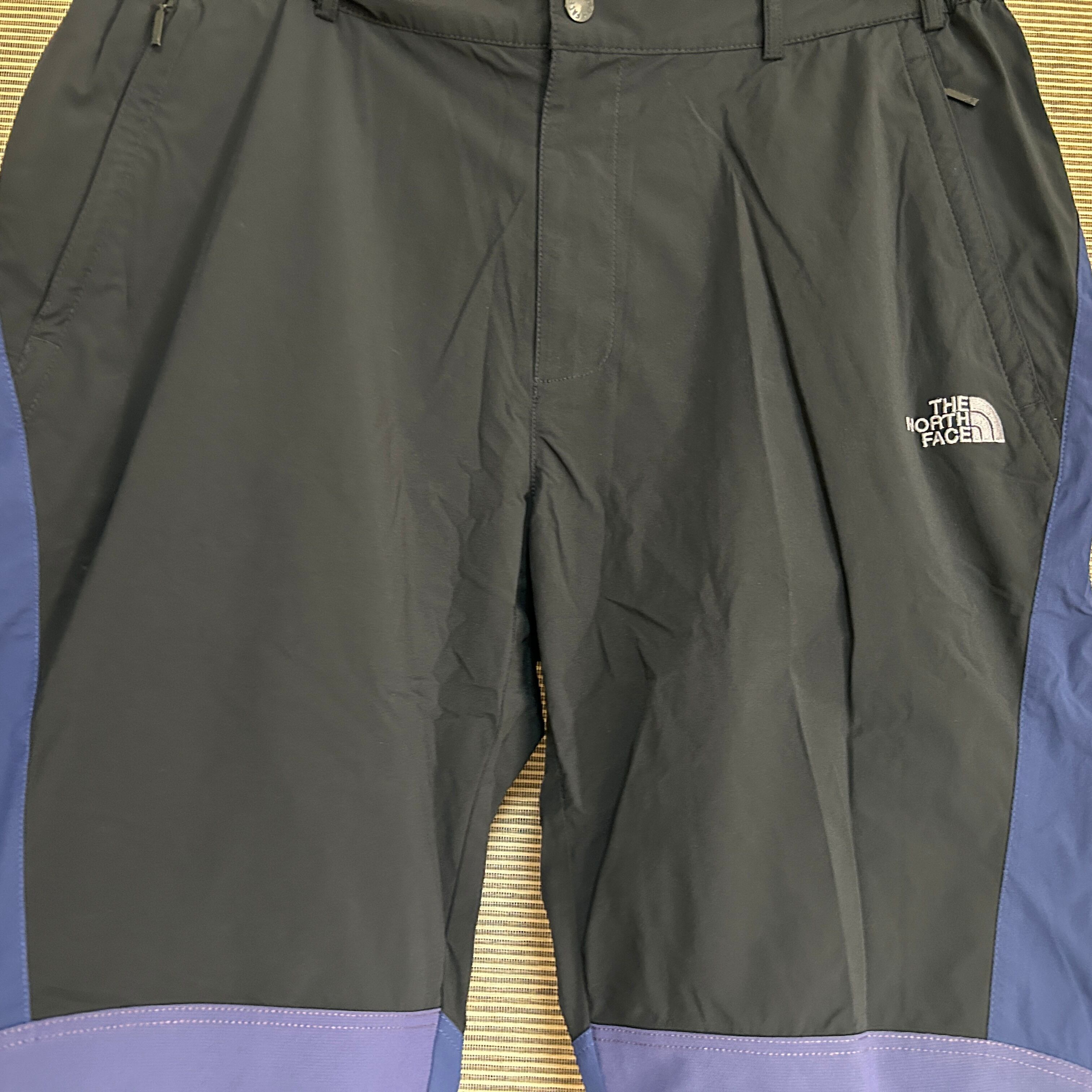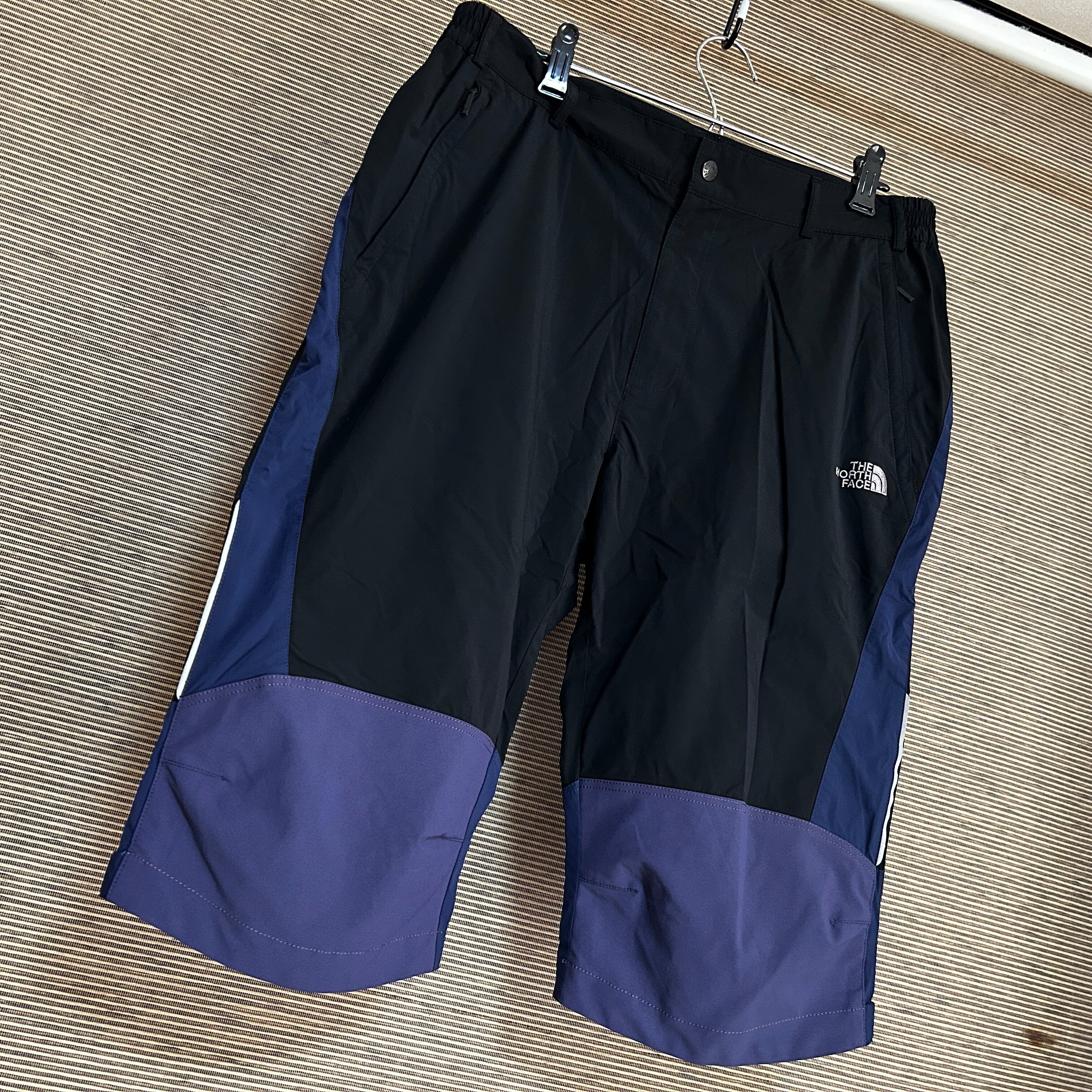 ノースフェイス ハーフパンツ 紫 黒ブラック 刺繍ストレッチワンポイントG1 古着 伸縮性 パープル 激レアカラー