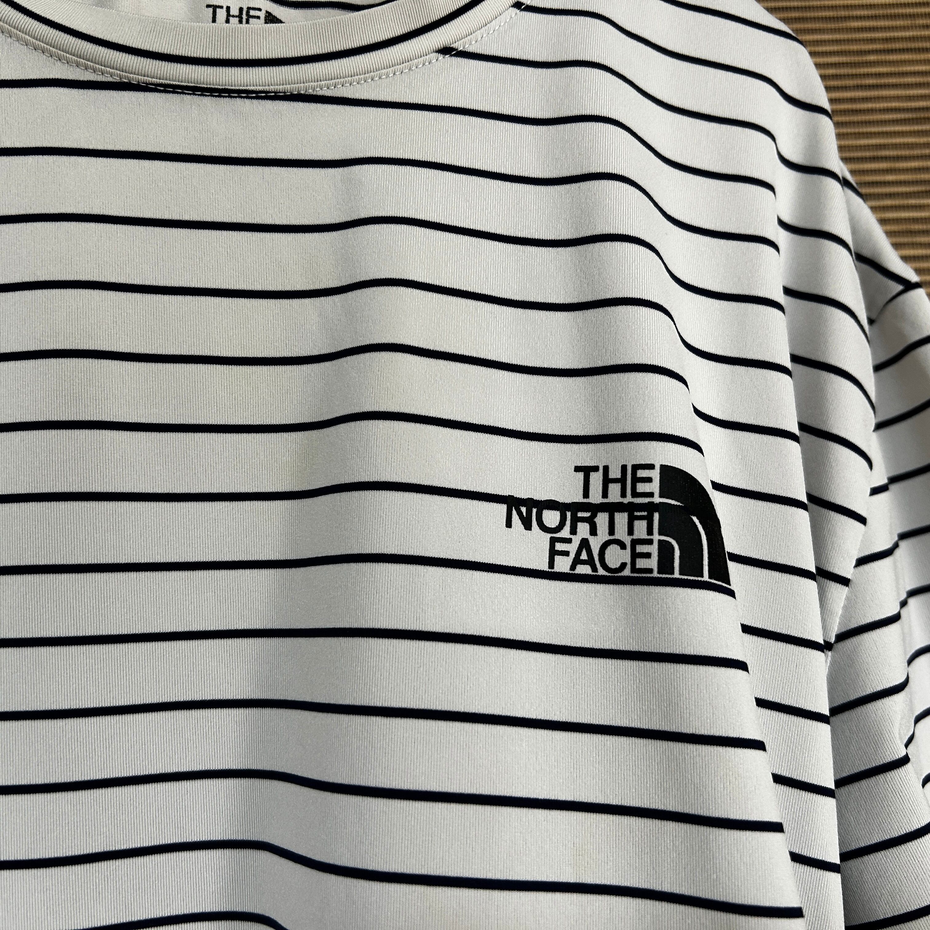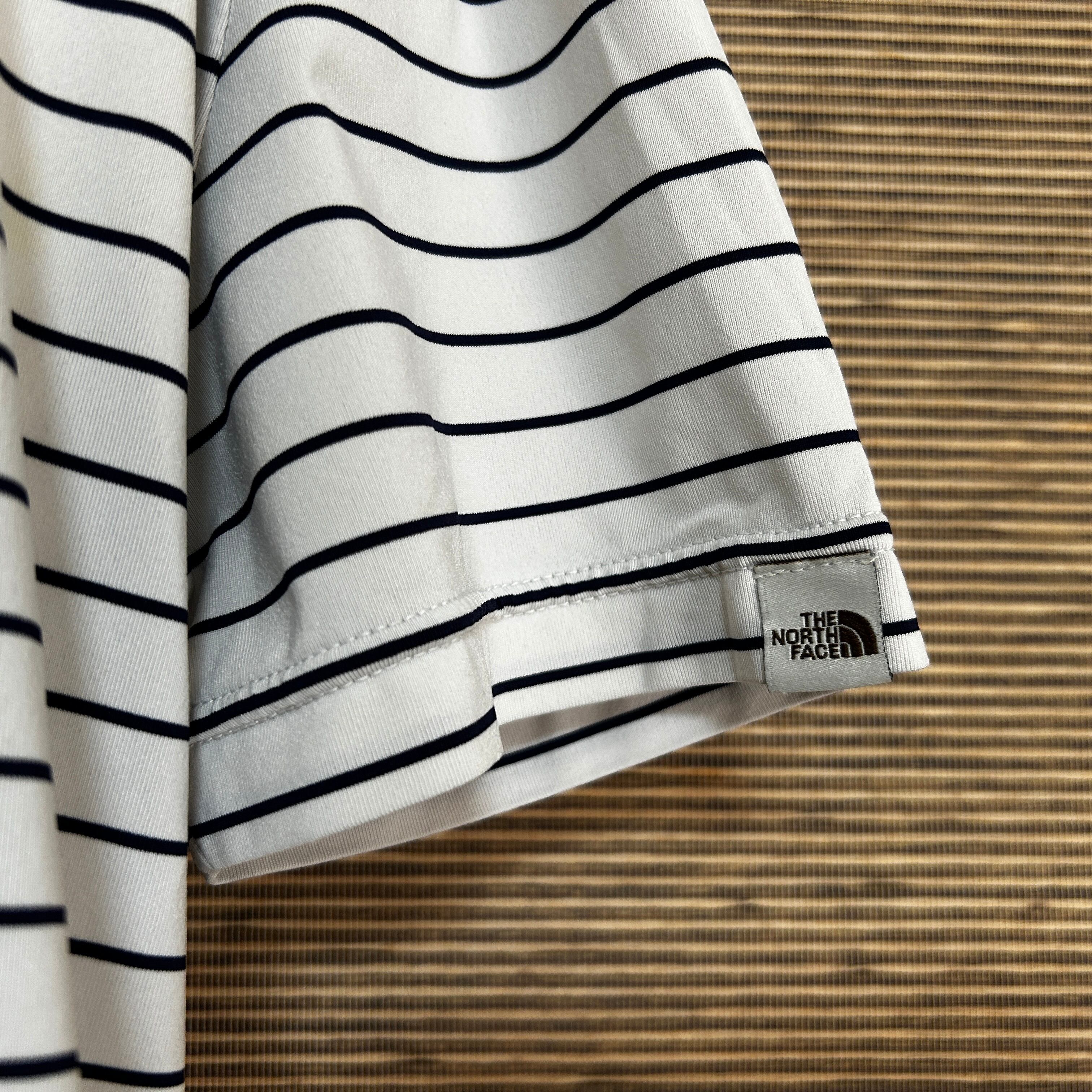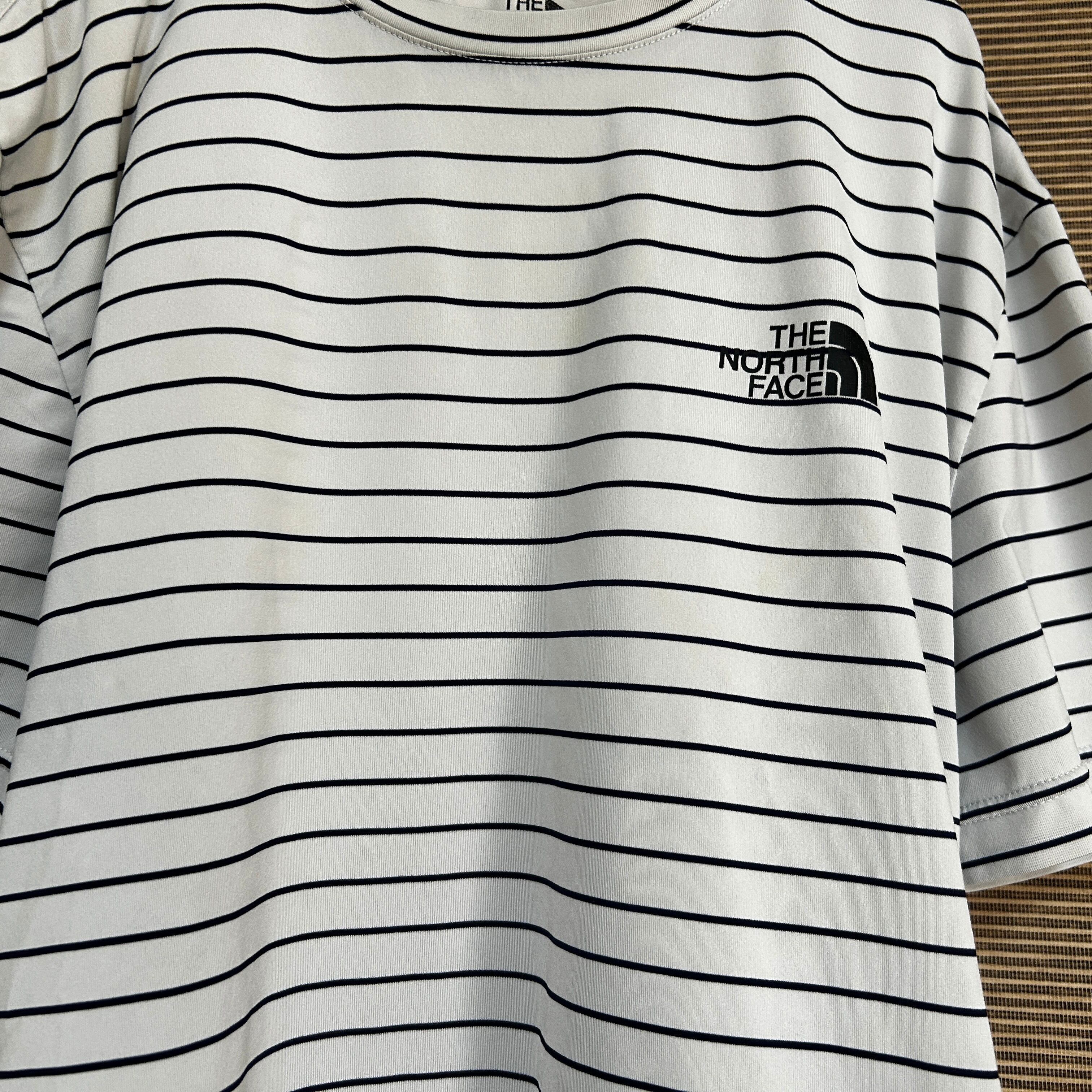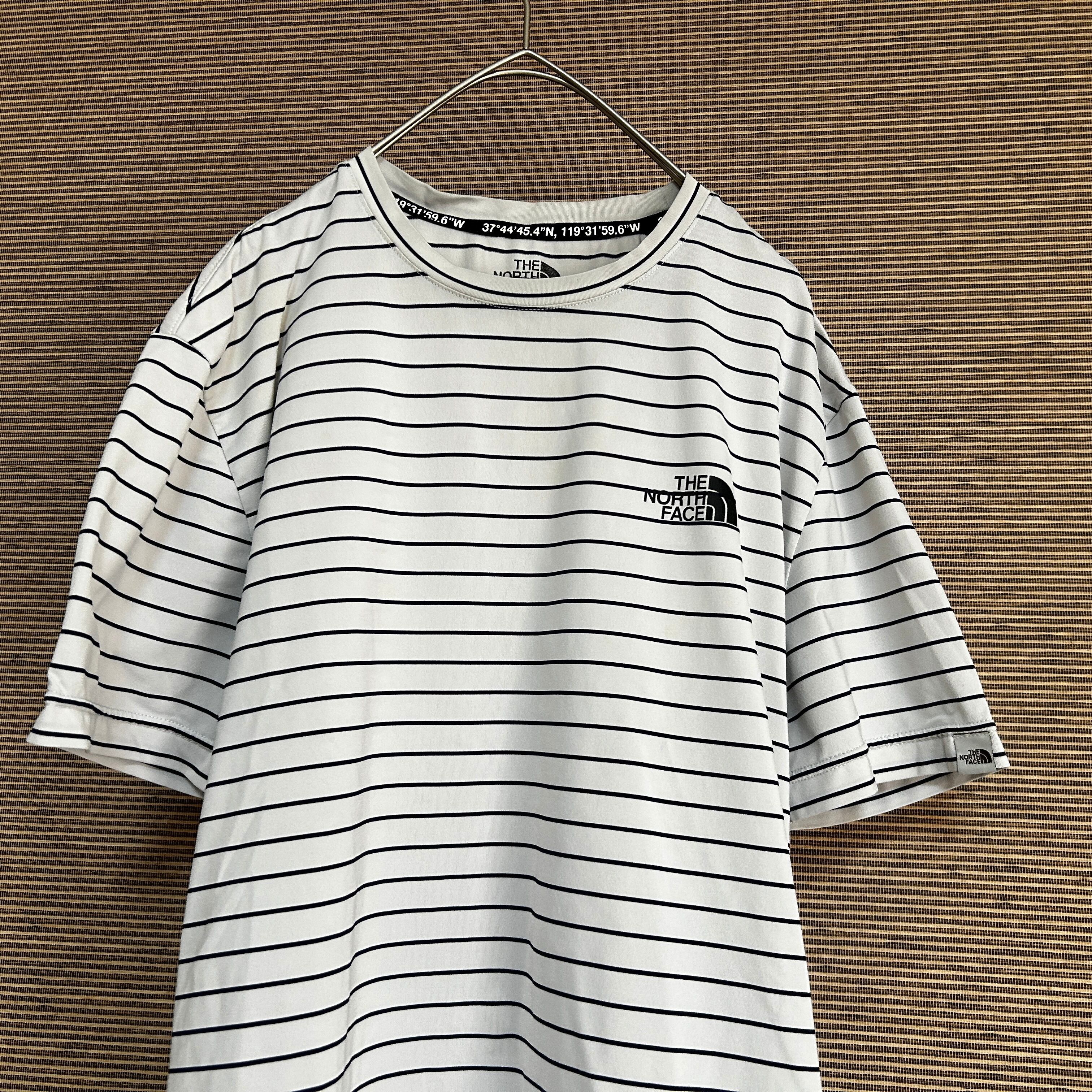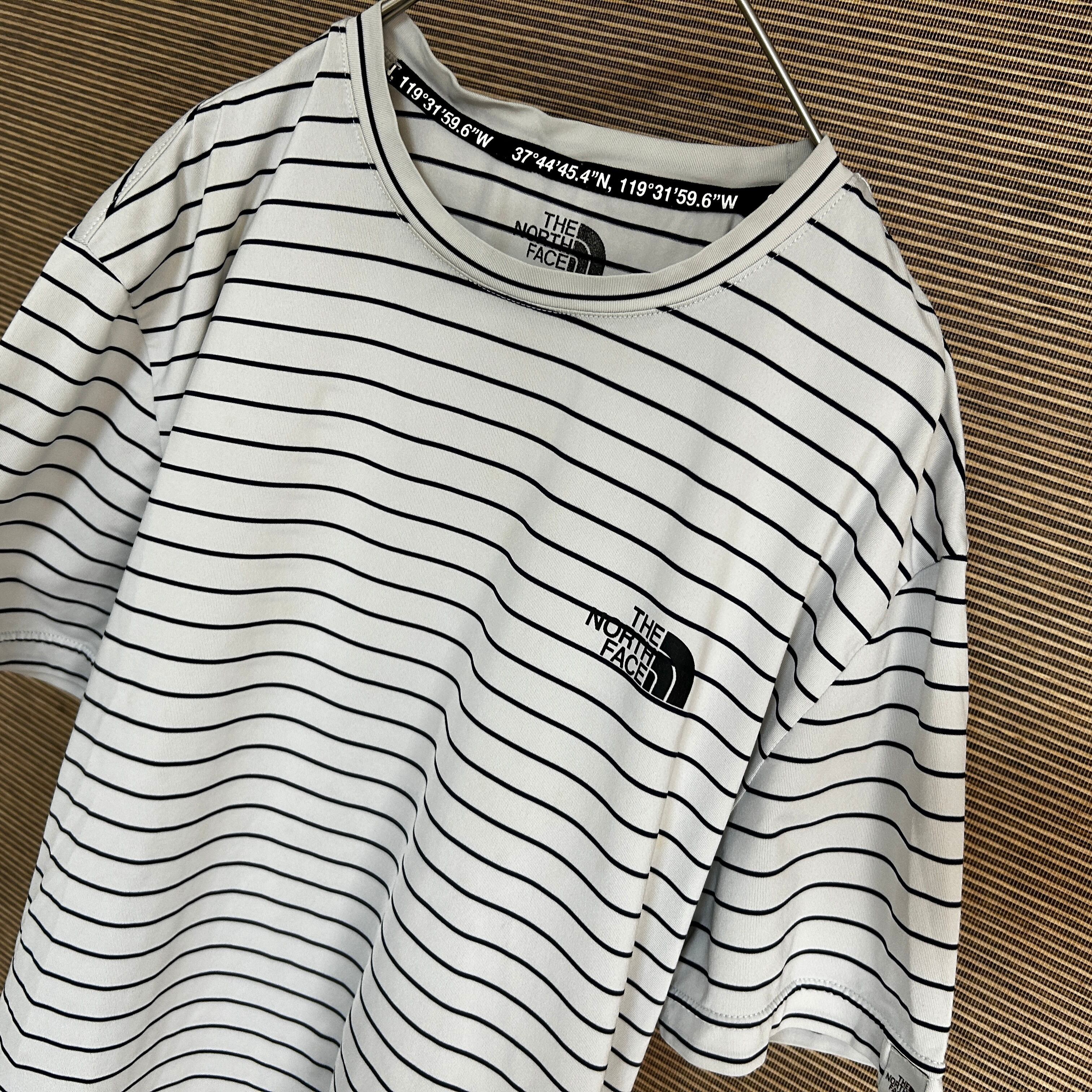 ノースフェイス 半袖ドライTシャツ 白黒 速乾 ボーダー 韓国限定G1 古着 ワンポイントロゴ ホワイトレーベル 人気