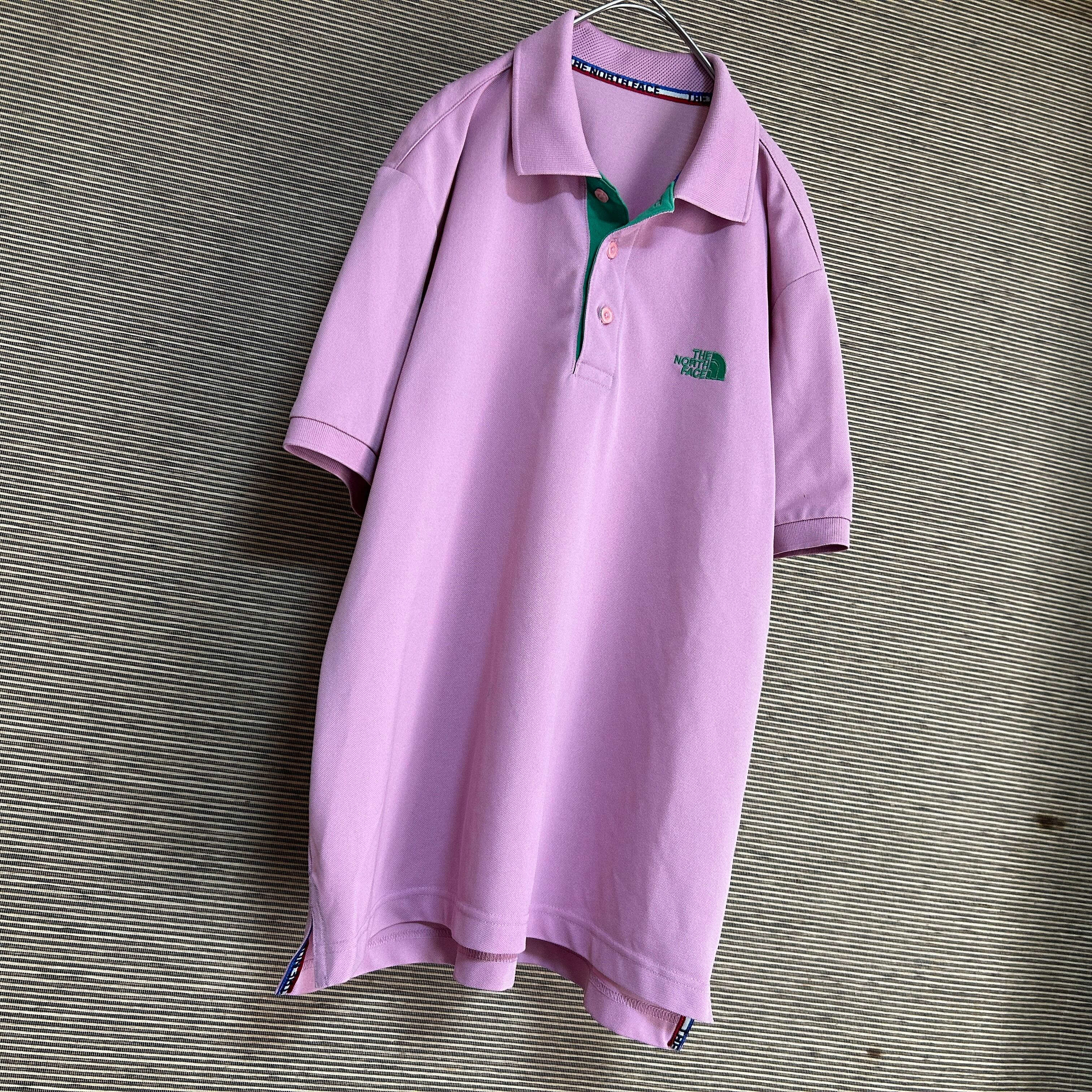 ノースフェイス 半袖ポロシャツ ピンク紫 クールマックス 速乾 刺繍 G1 古着 ワンポイントロゴ coolmax 人気