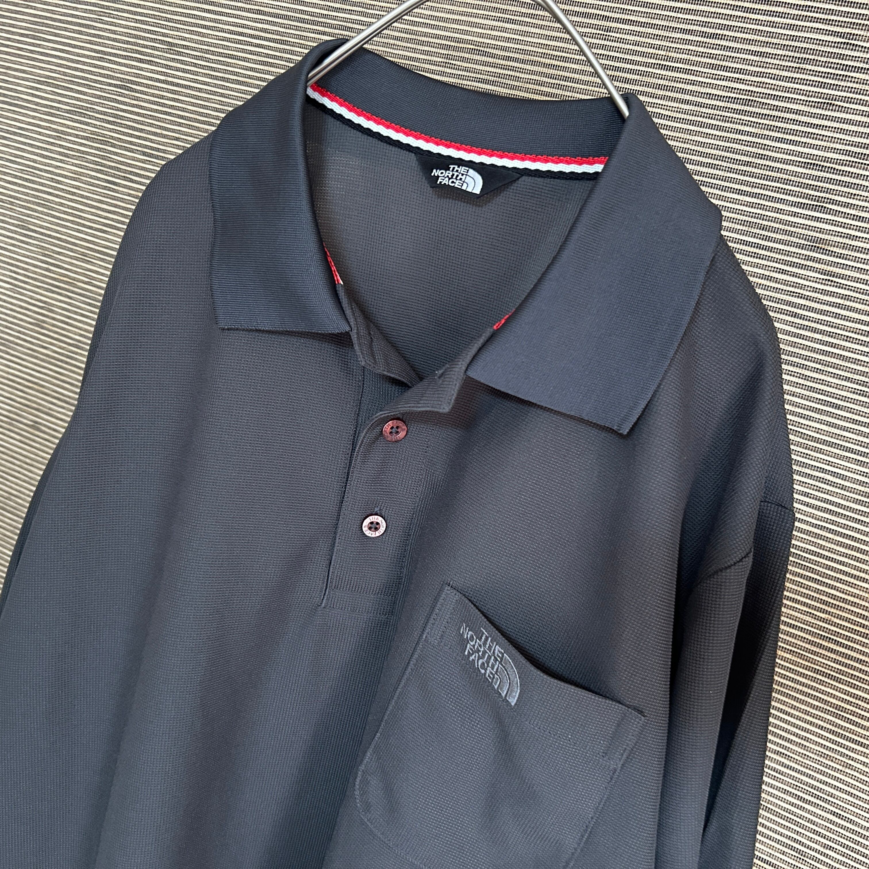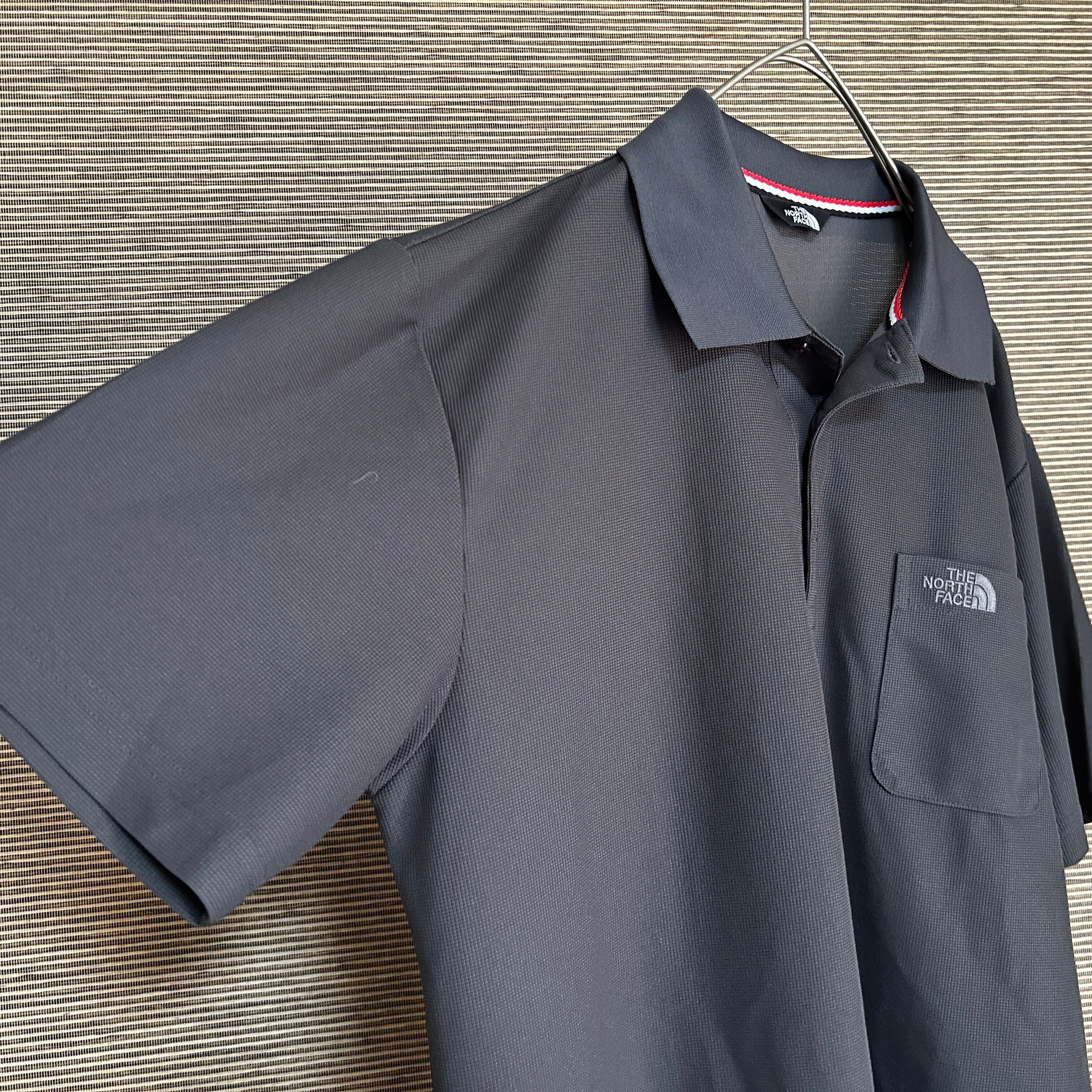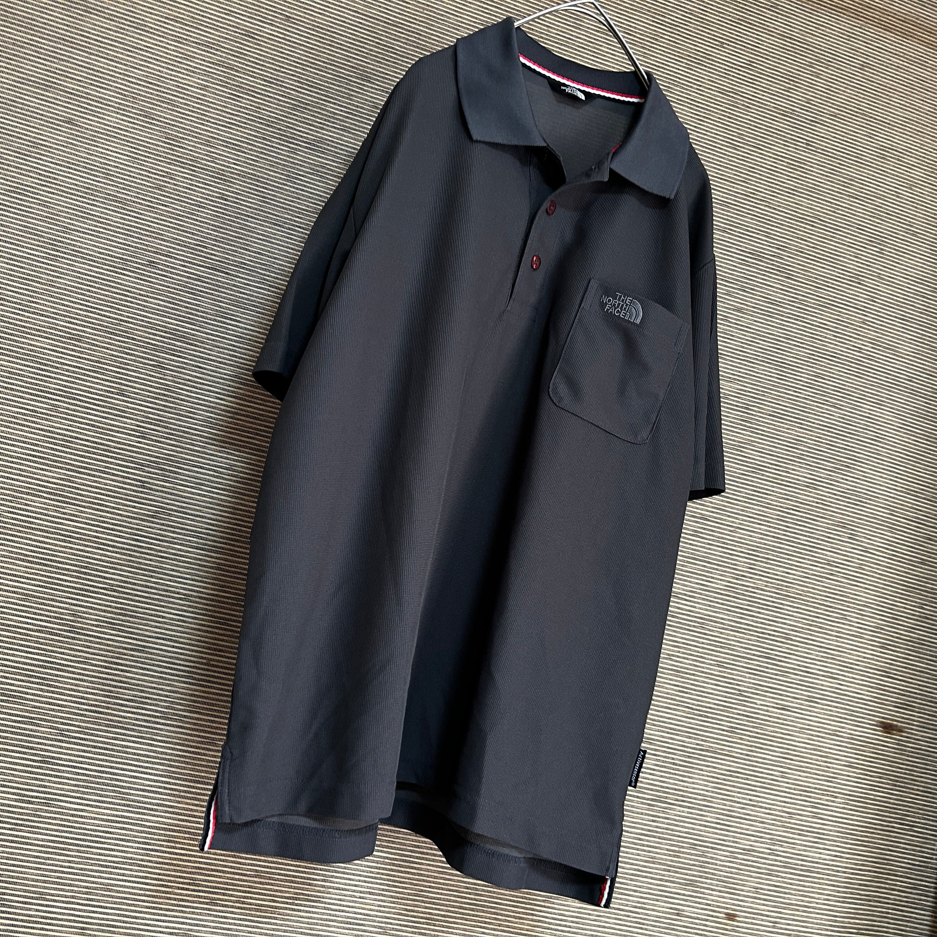 ノースフェイス 半袖ポロシャツ ダークグレー 速乾 刺繍 ワンポイントG1 古着 ドライ 人気