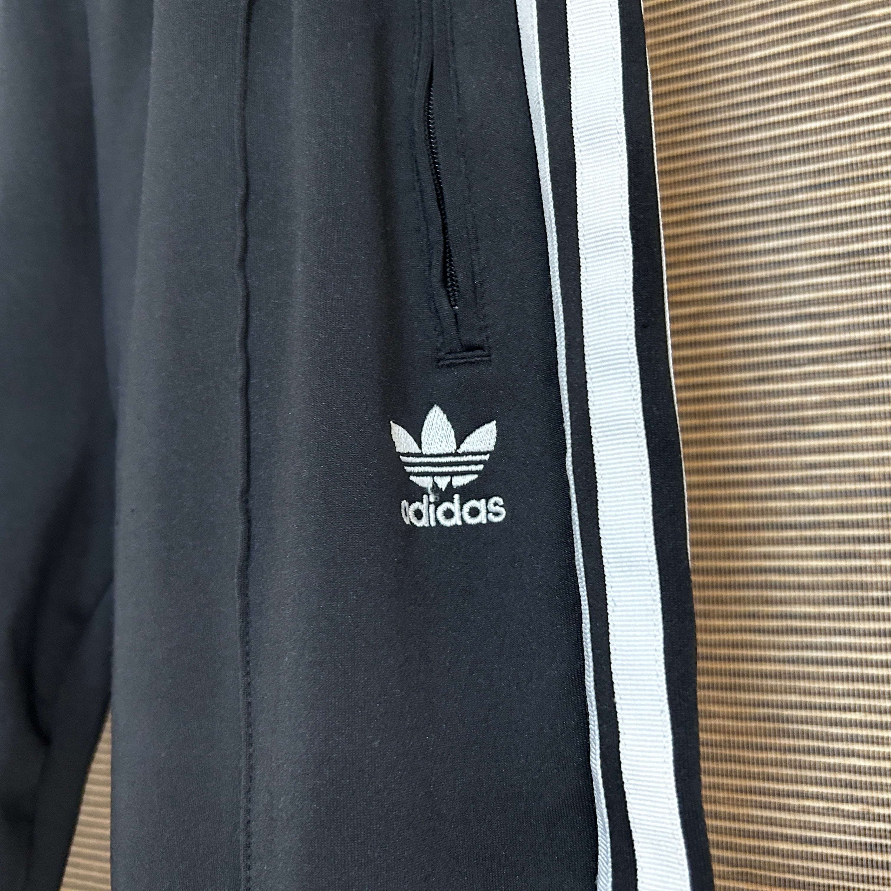 アディダス ジャージトラックパンツ SST 黒白刺繍 トレフォイルN1 古着 スーパースター ワンポイントロゴ ブラック