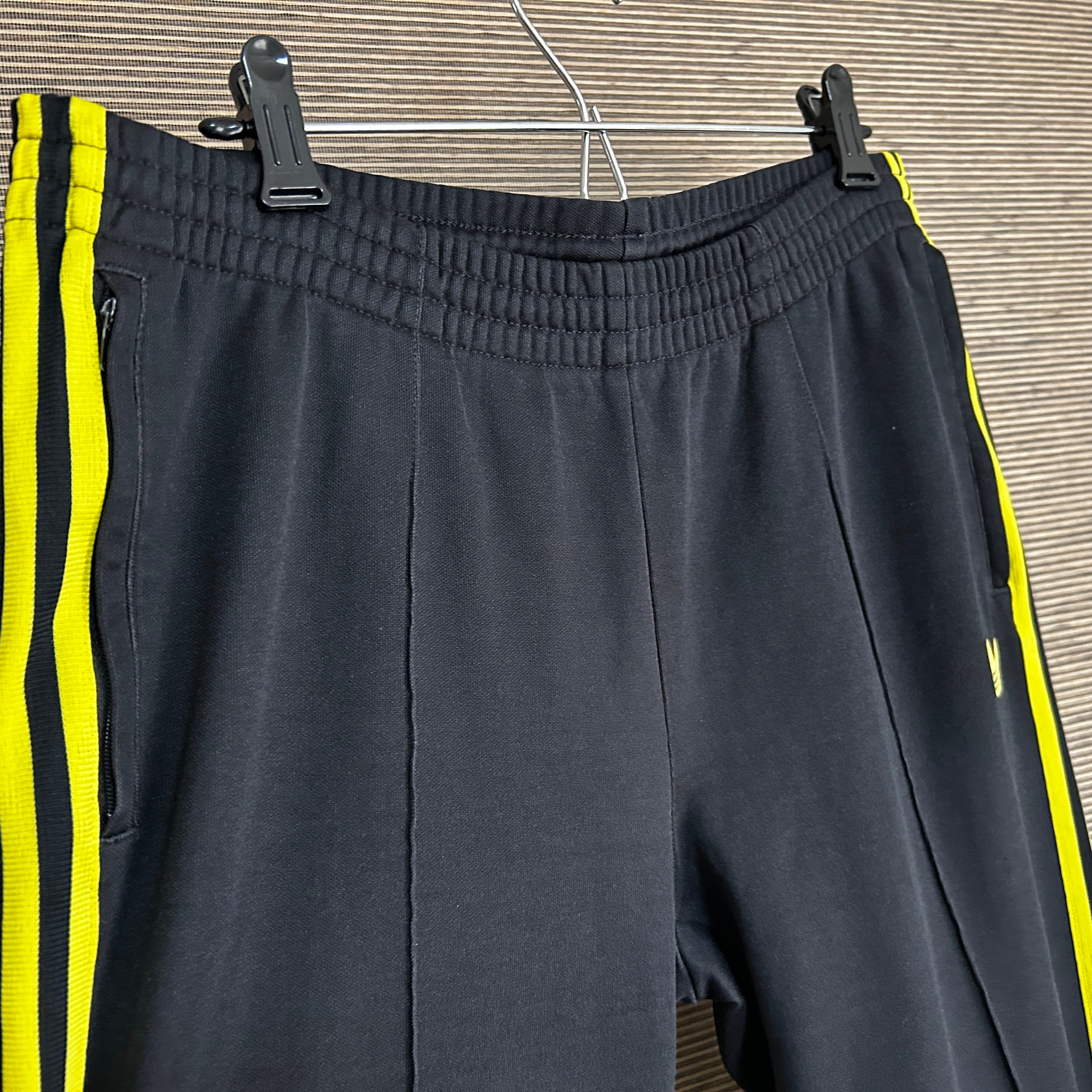 アディダス ジャージトラックパンツ FRANZ 黒黄色刺繍 トレフォイルN1 古着 ワンポイントロゴ 希少カラー 激レアデザイン 黒タグ