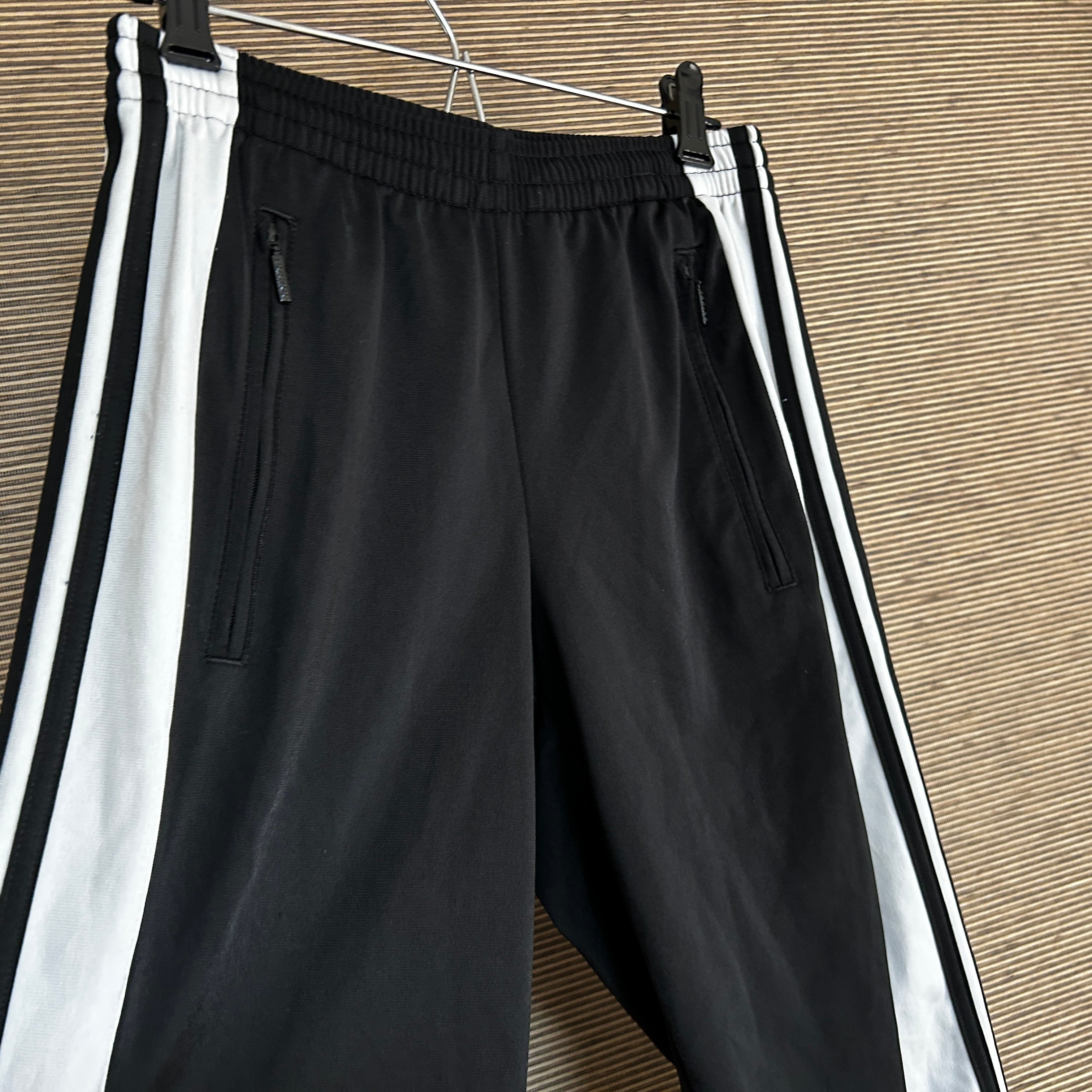 アディダス ジャージトラックパンツ スナップパンツ黒白刺繍トレフォイルN1 古着 人気 希少デザイン ブラック