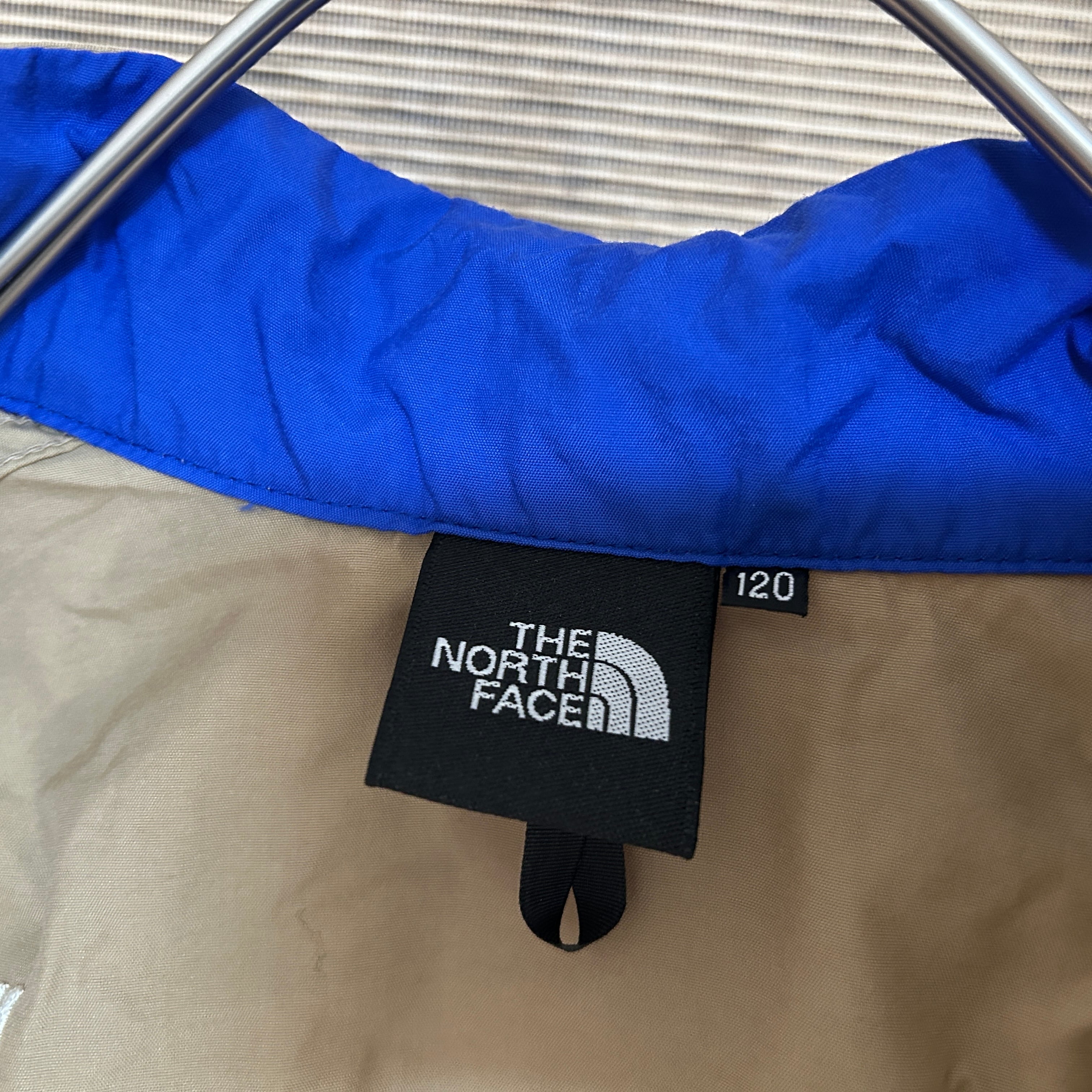 ノースフェイス ゴールドウィン製ナイロンジャケット 子供120キッズ緑刺繍N1 古着 ワンポイントロゴ ワッペン