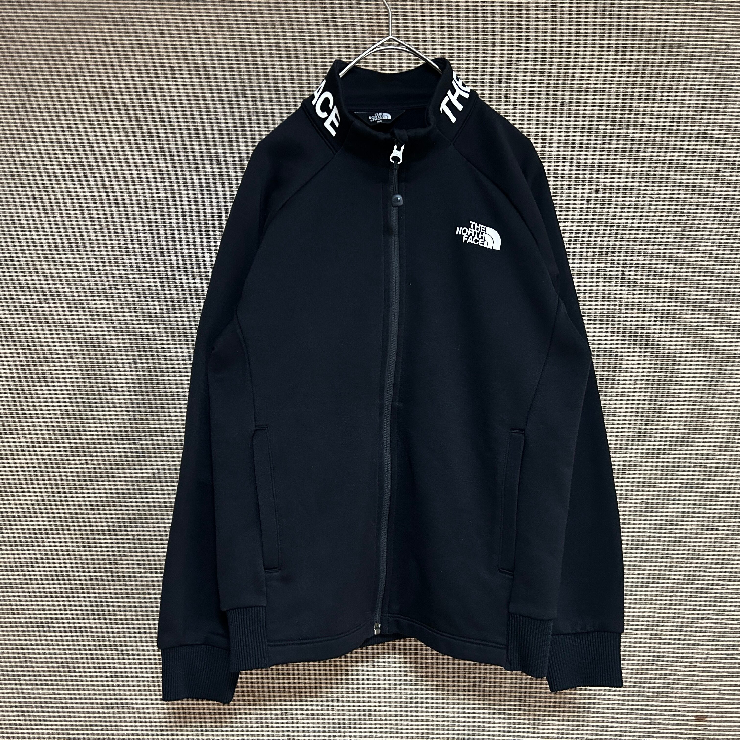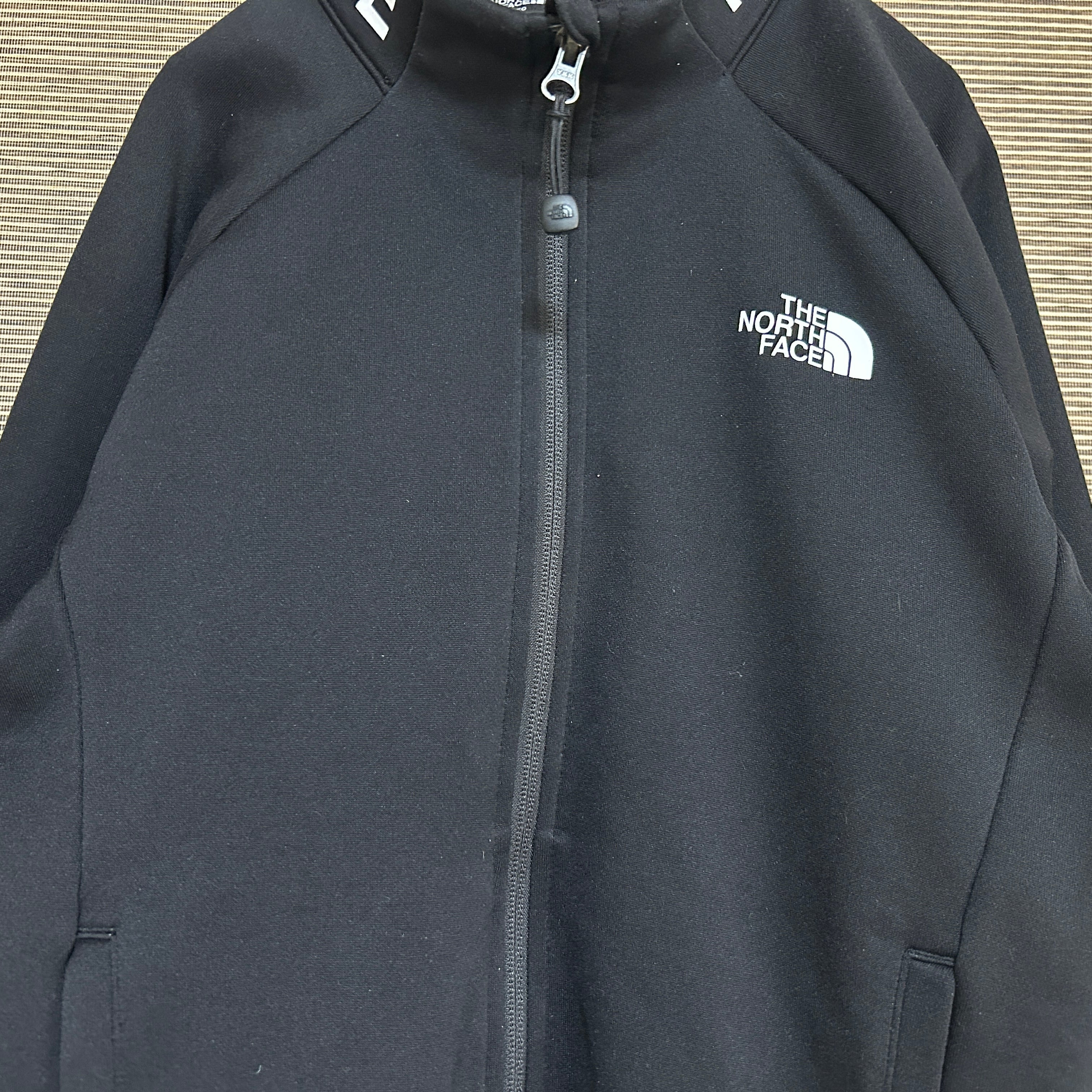 ノースフェイス トラックジャケット ジャージ 子供150キッズ 黒デカロゴ N1 古着 ブラック 人気 ワンポイントロゴ