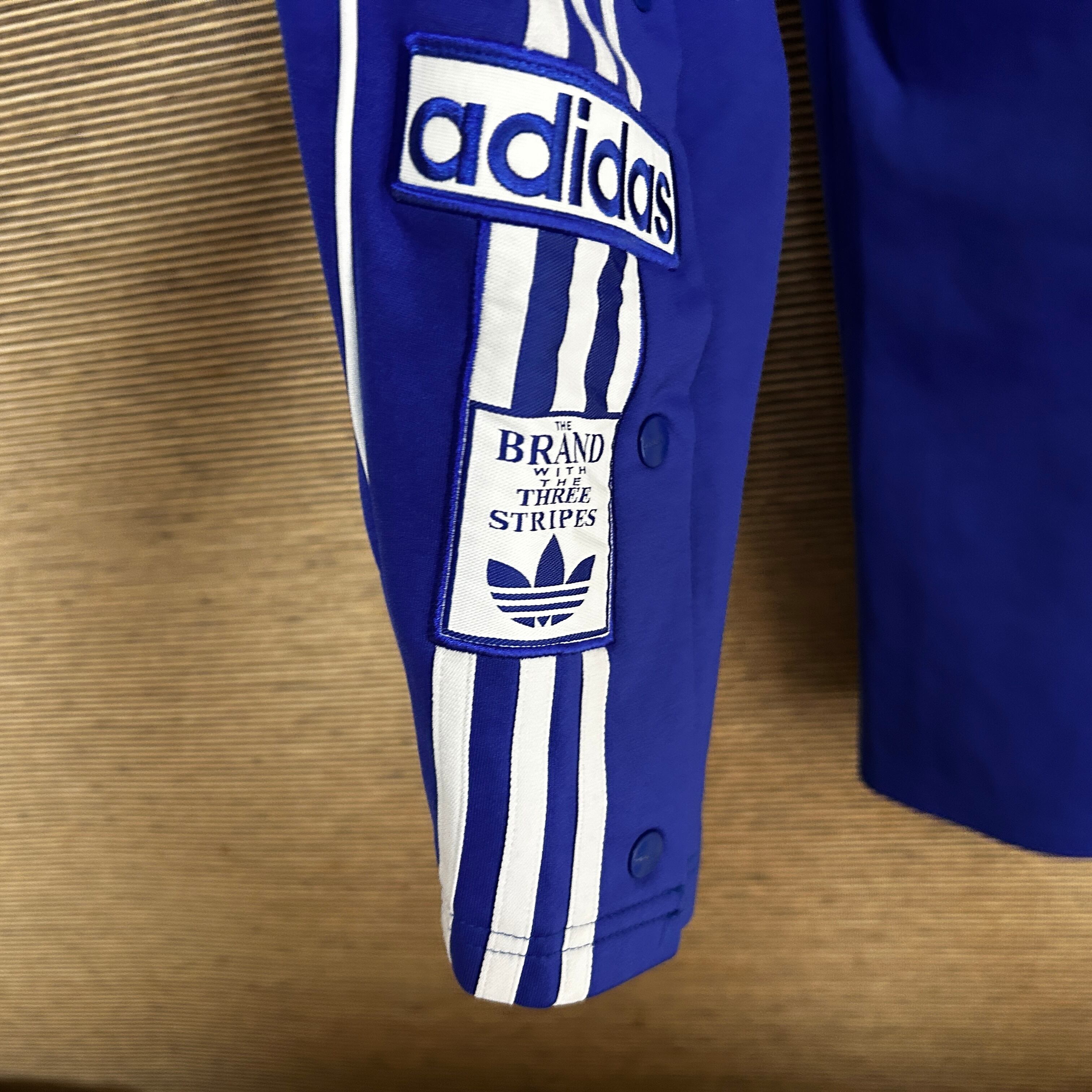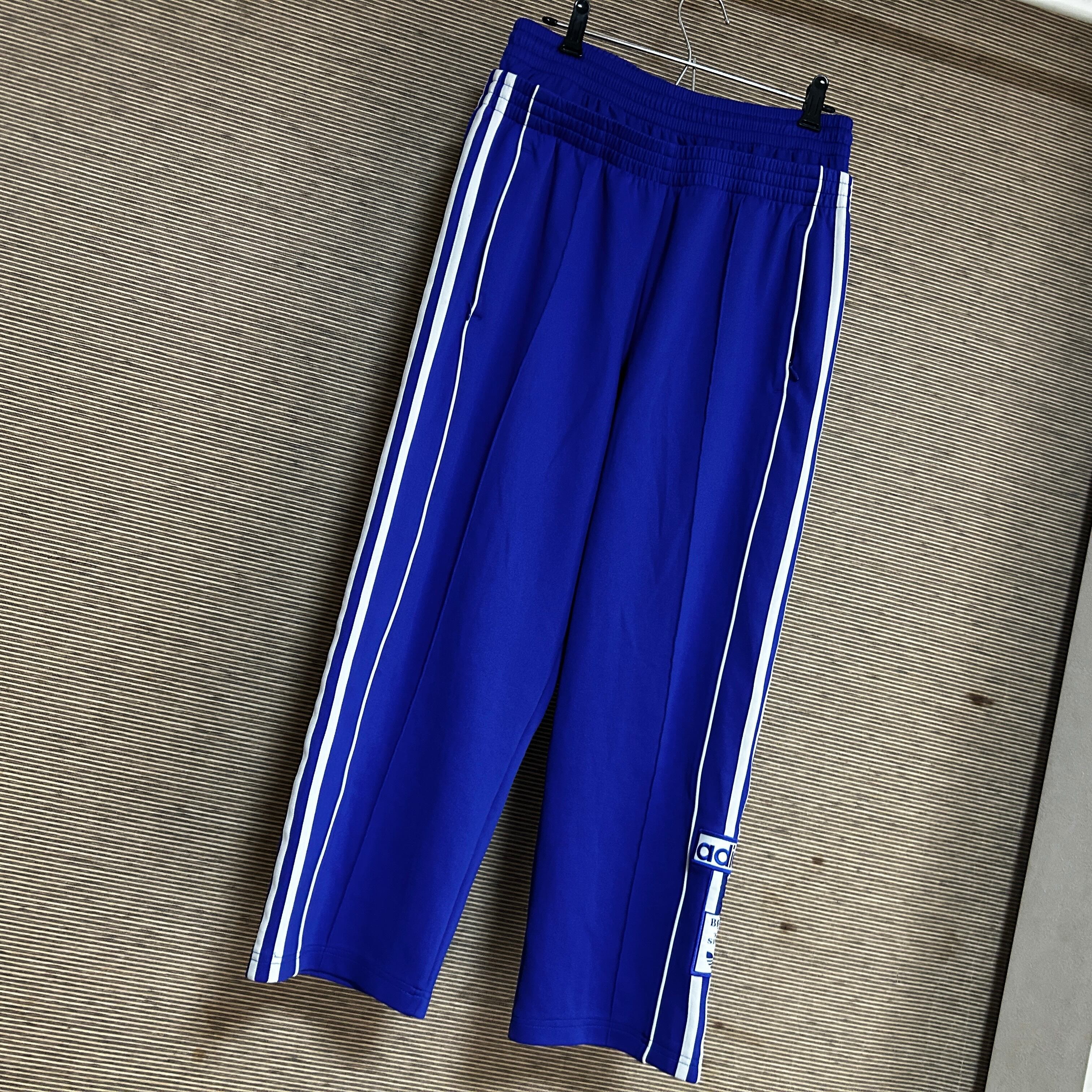 アディダス アディブレイク ダブルウエストジャージ トラックパンツ青白N1 古着 ワンポイントロゴ adibreak 人気