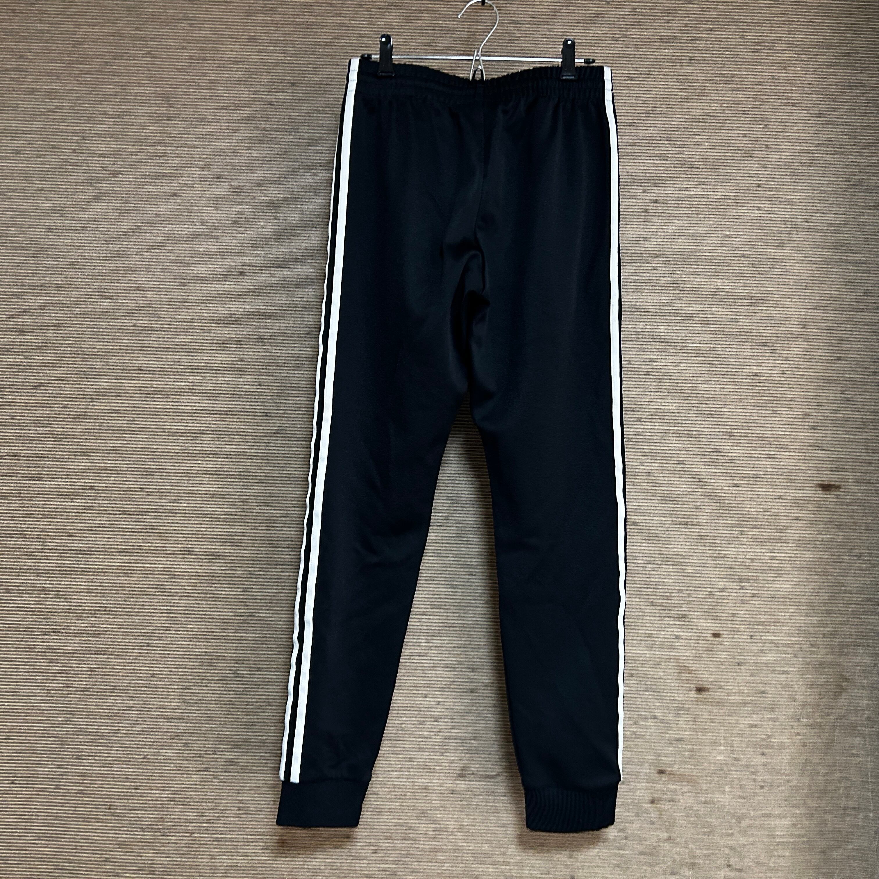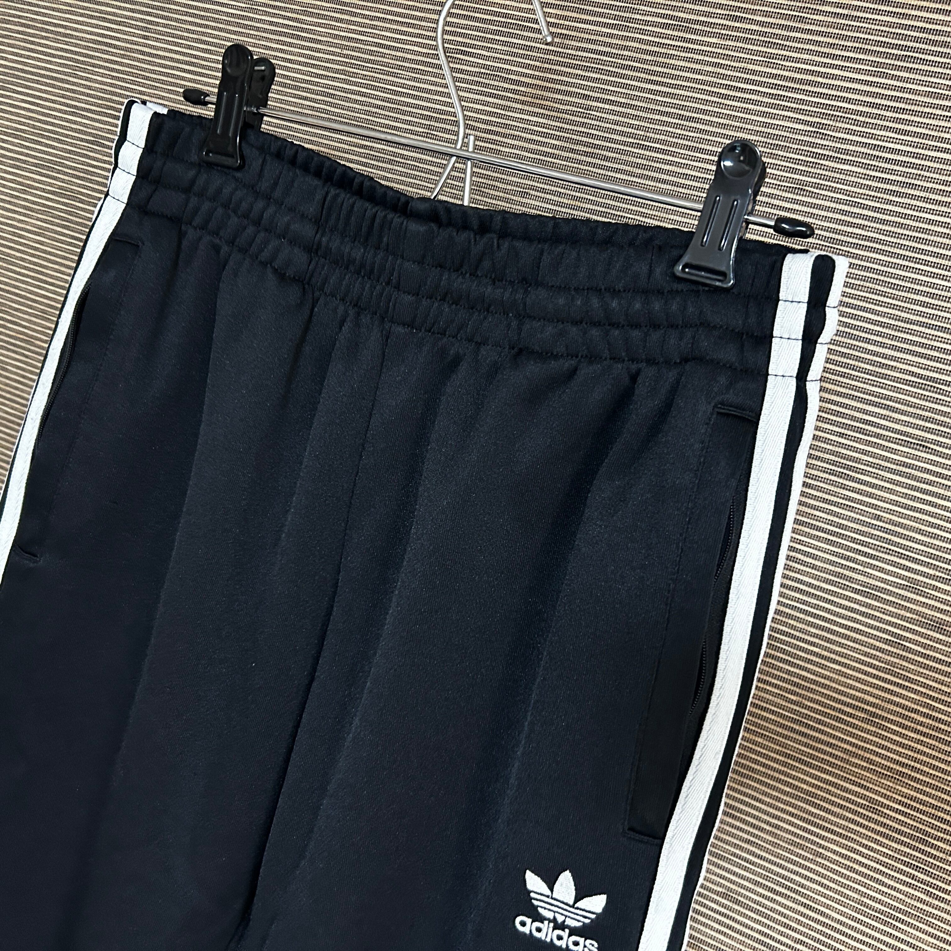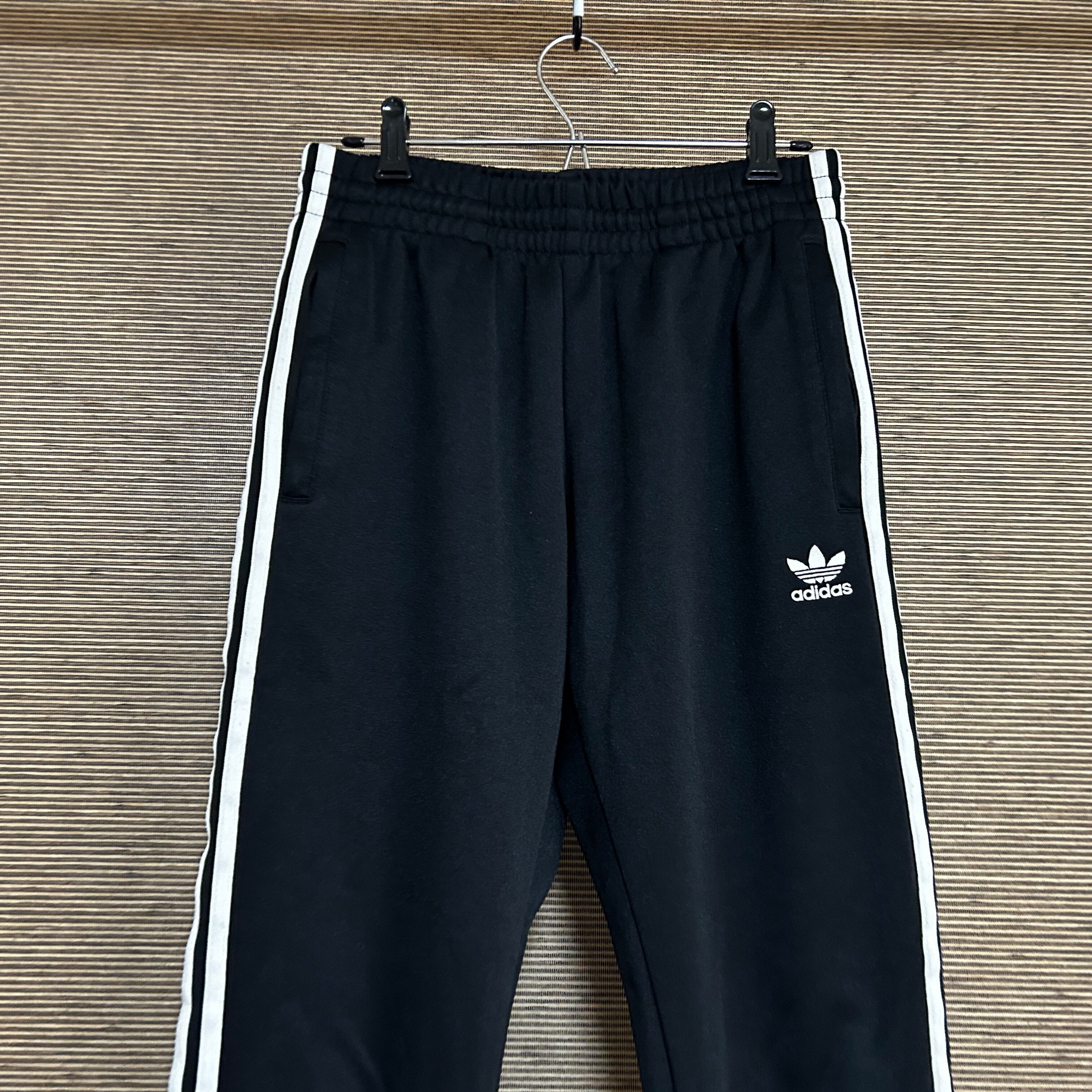 アディダス ジャージトラックパンツSST 黒白 刺繍 スーパースターN1 古着 ワンポイントロゴ ブラック 人気