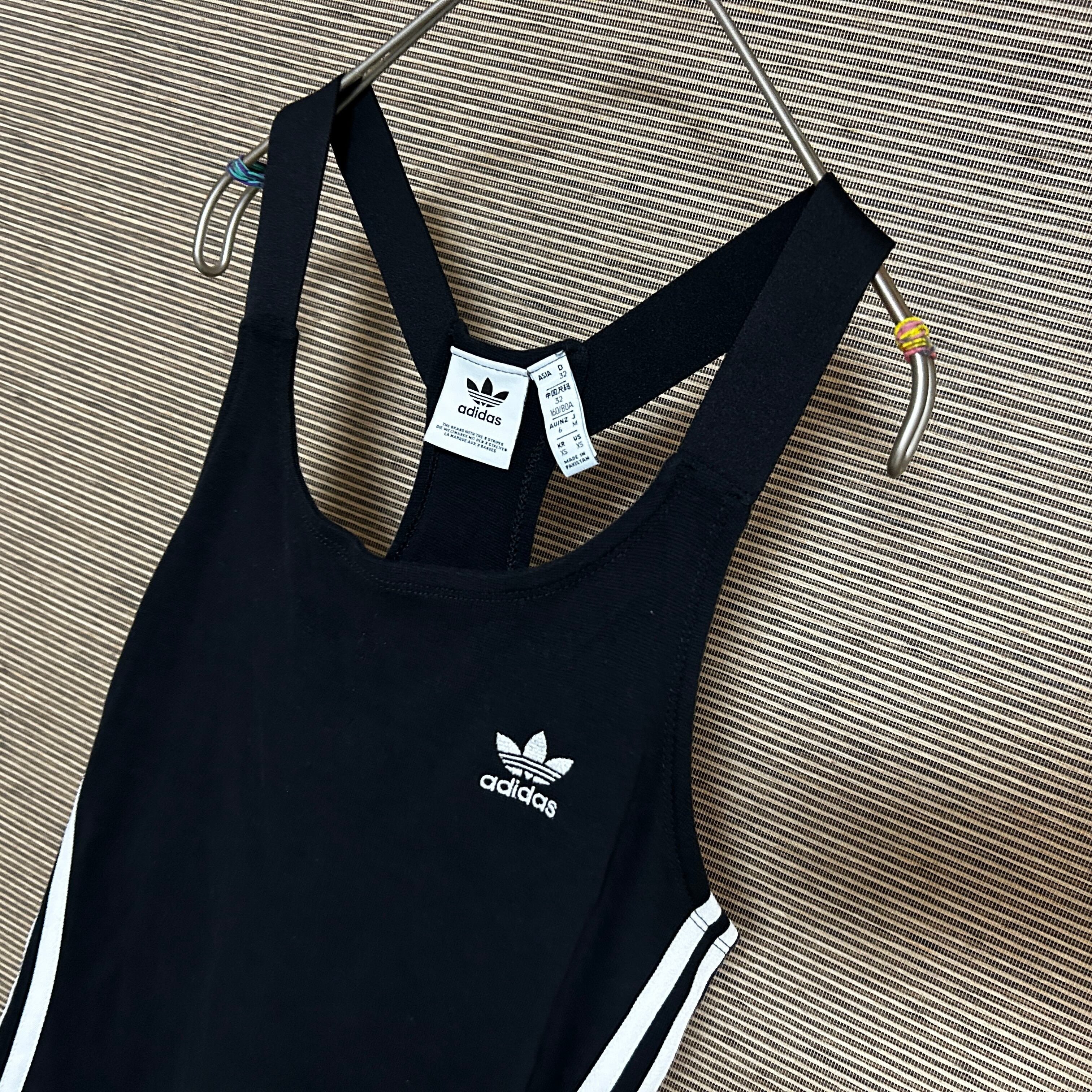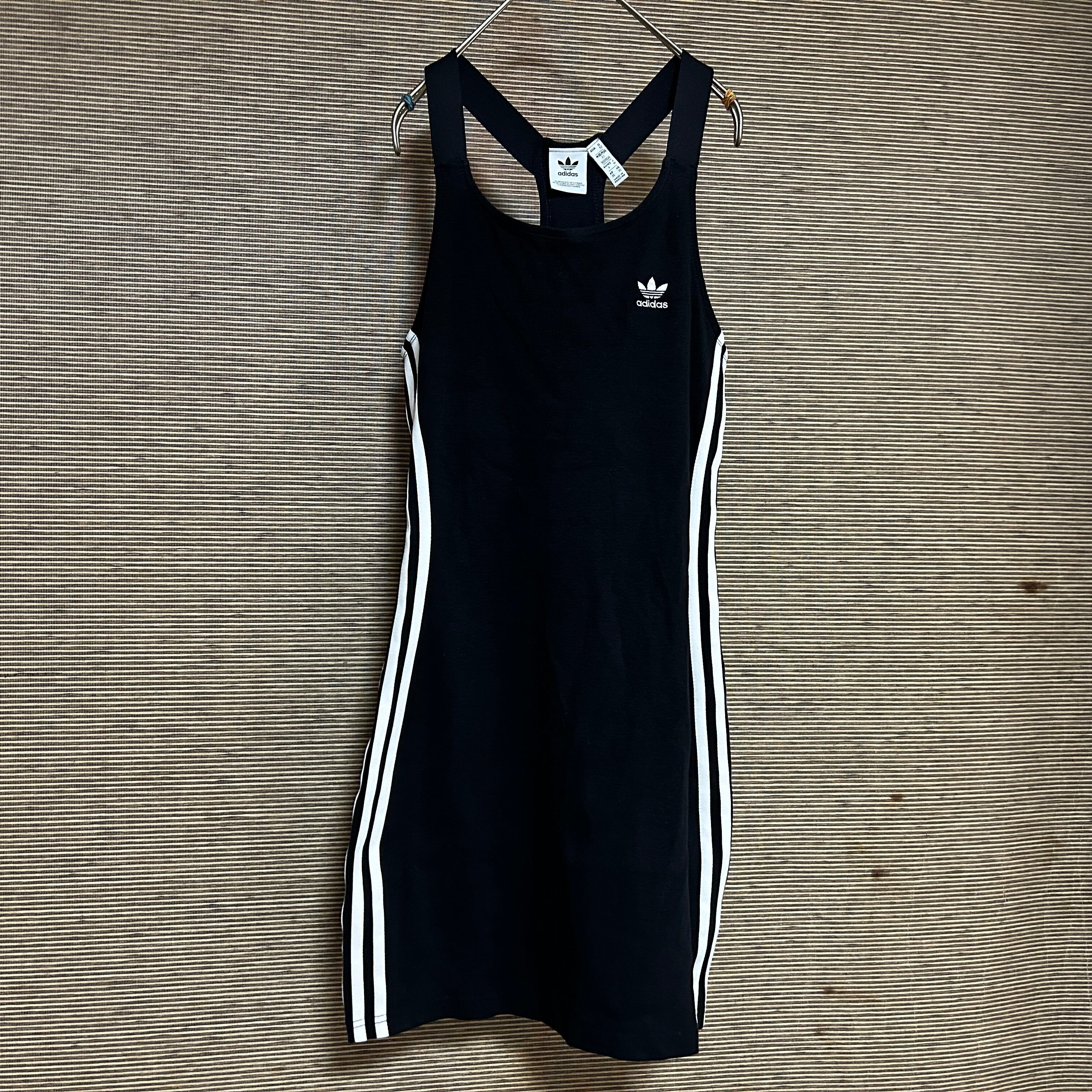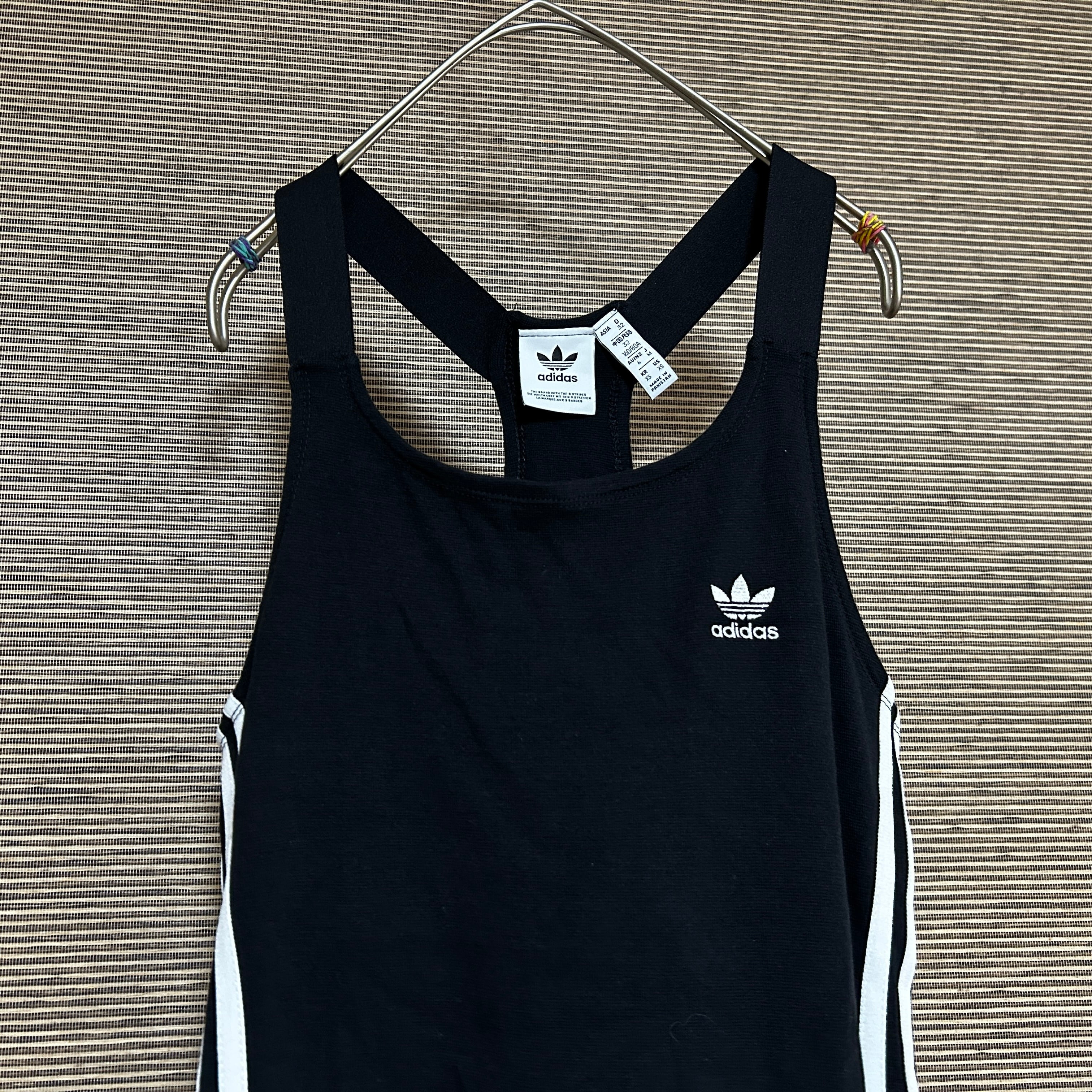 アディダス ノースリーブスタンクトップワンピース 黒 刺繍 トレフォイルN1 古着 ワンポイントロゴ レディース