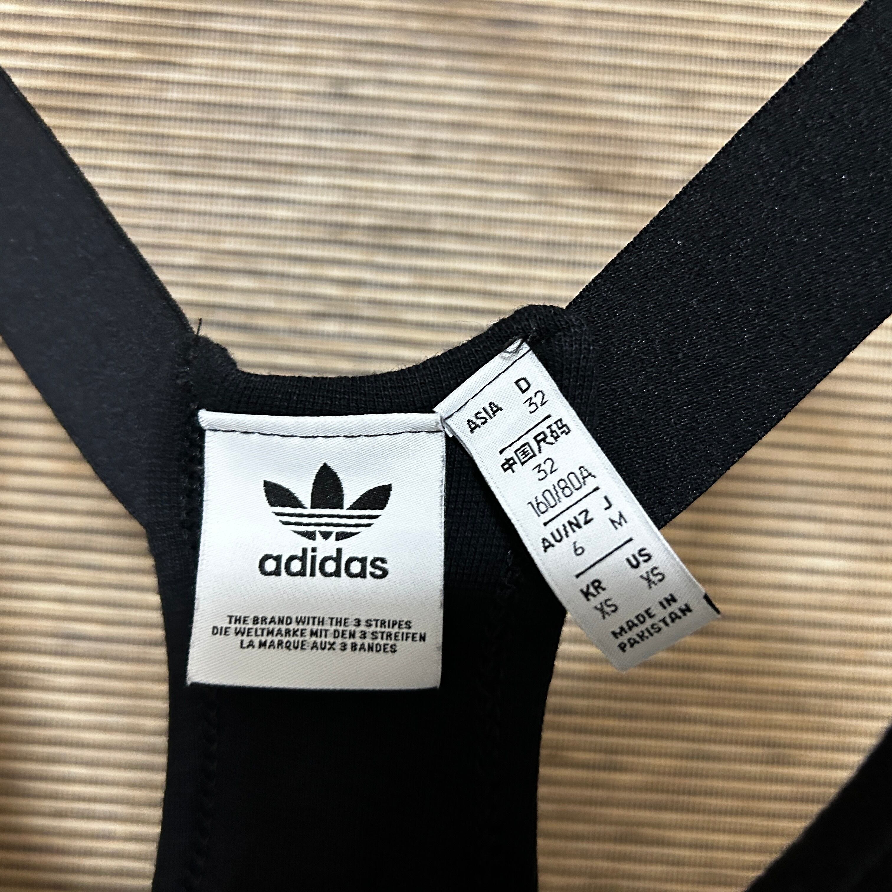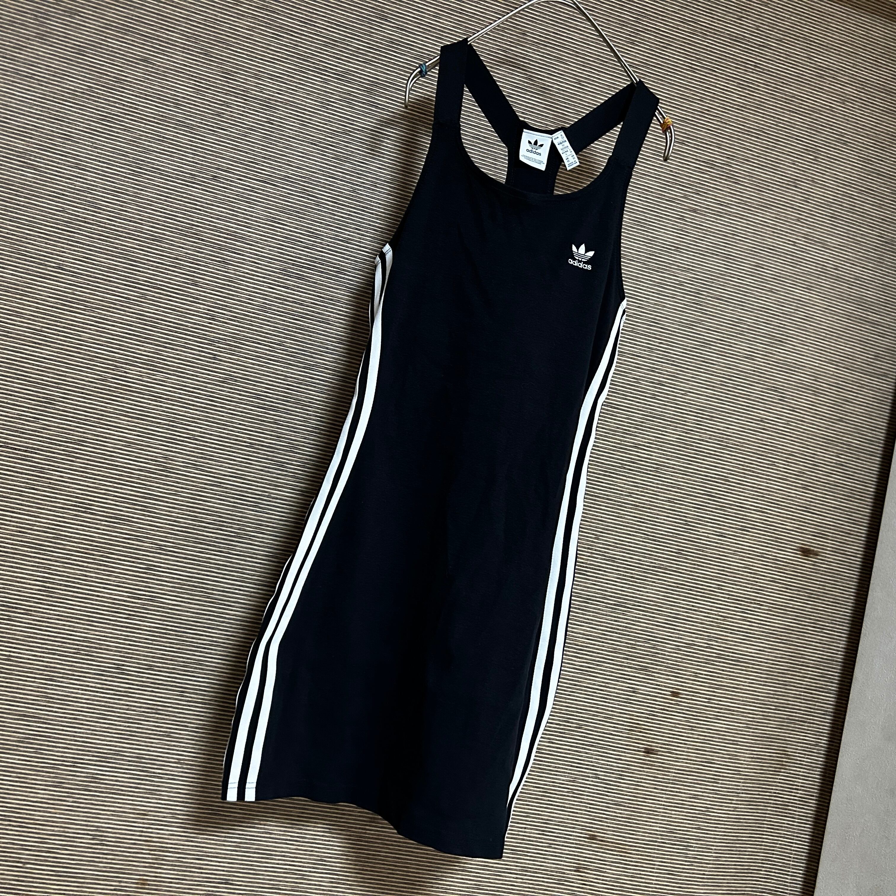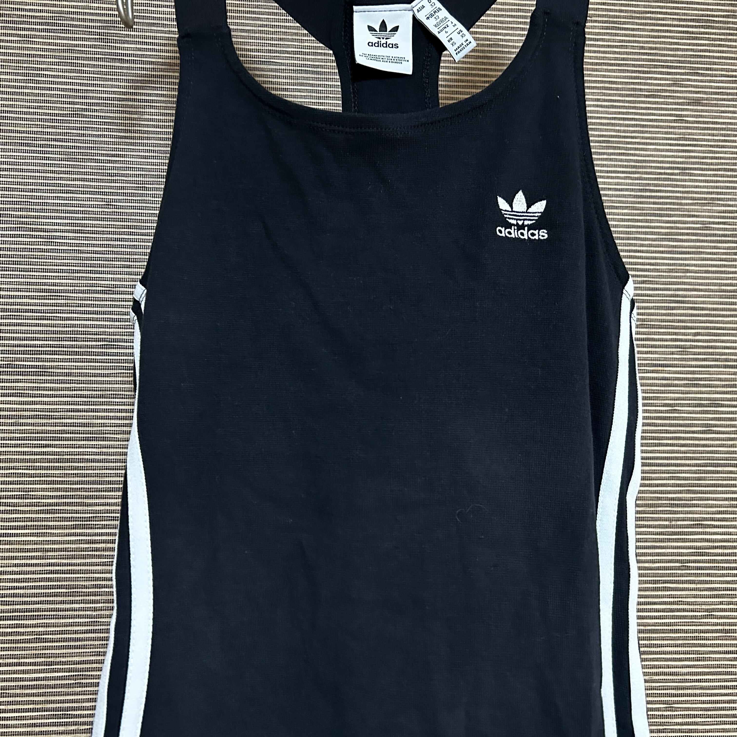 アディダス ノースリーブスタンクトップワンピース 黒 刺繍 トレフォイルN1 古着 ワンポイントロゴ レディース