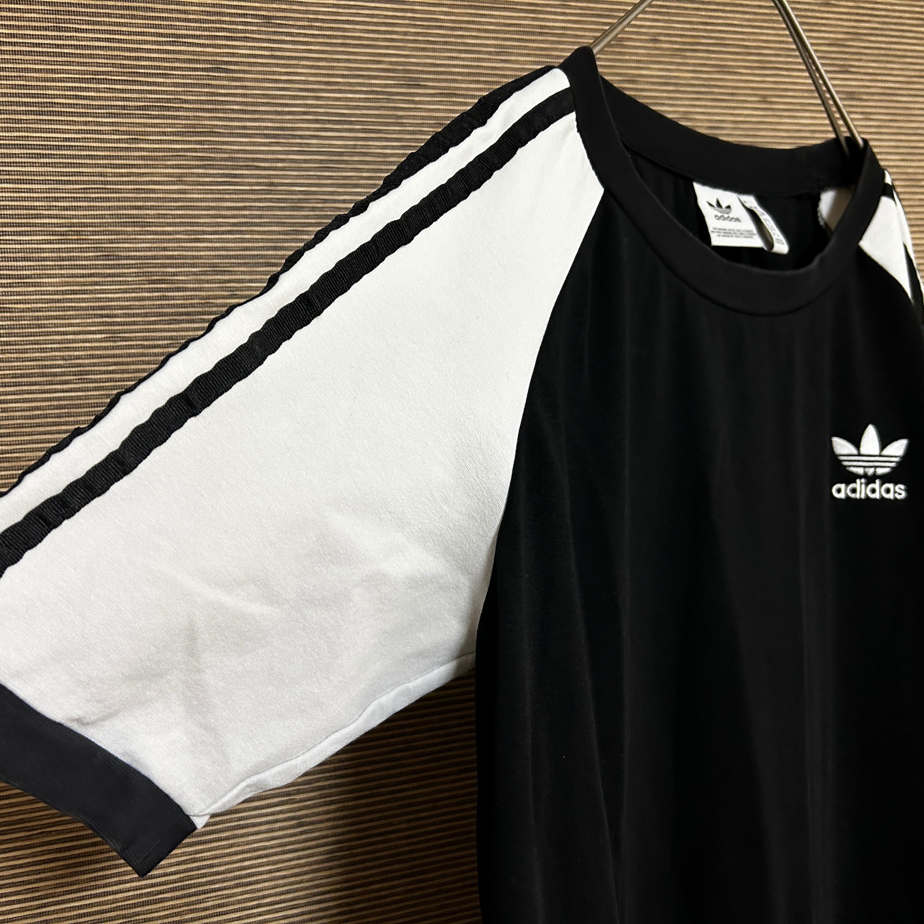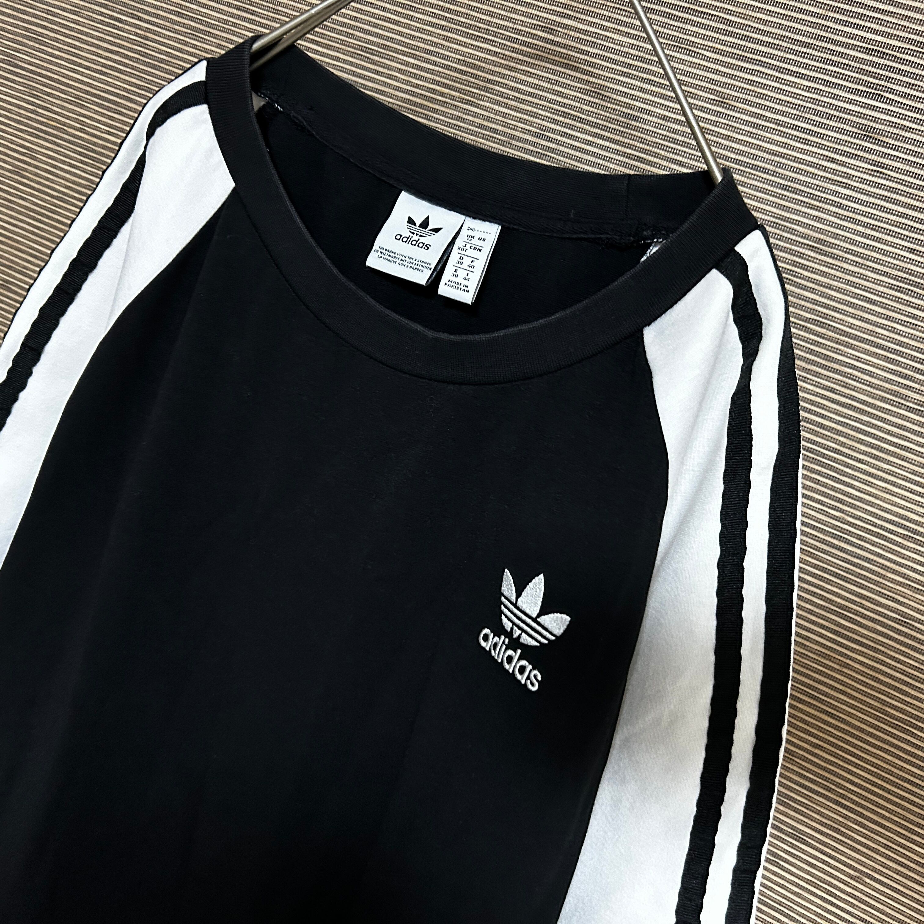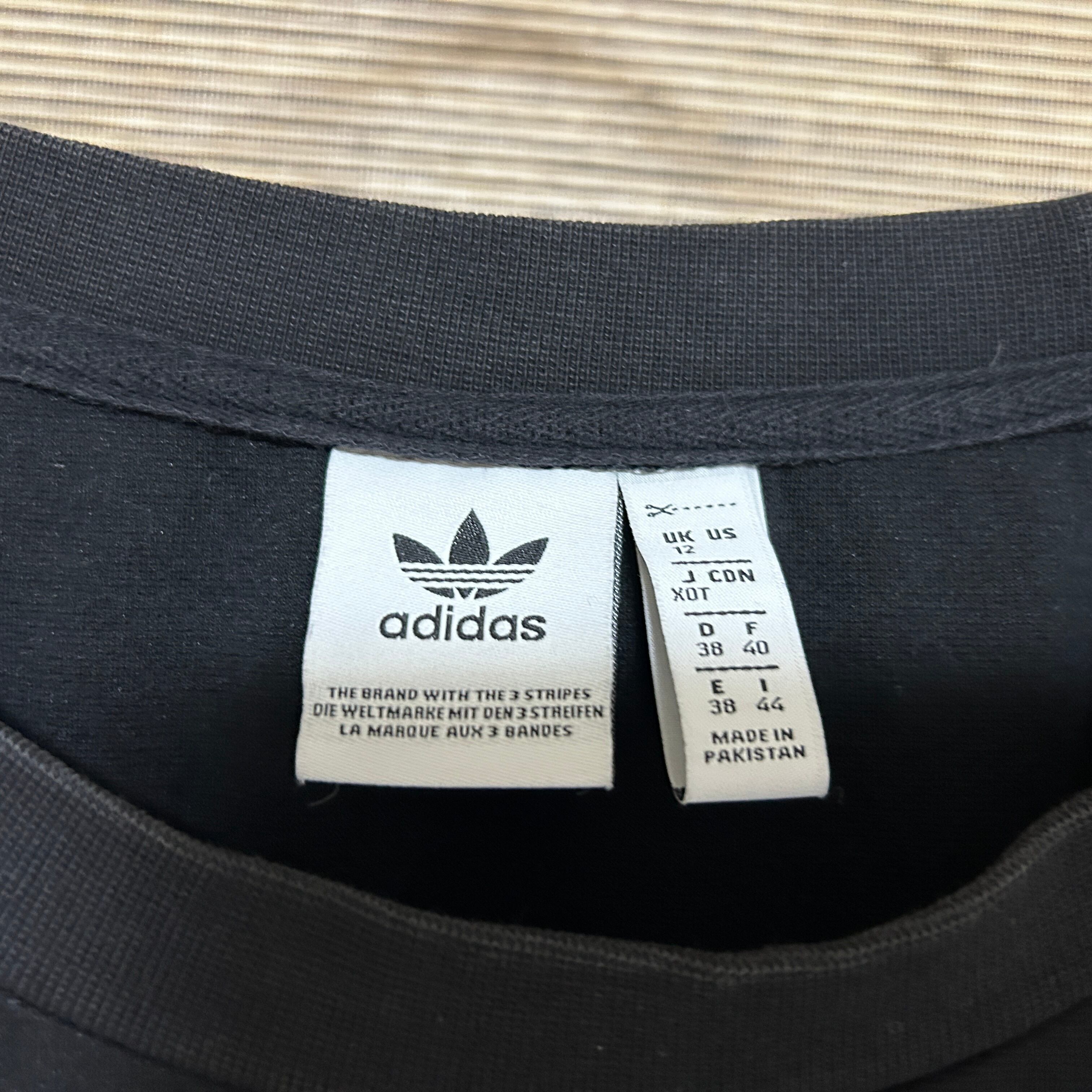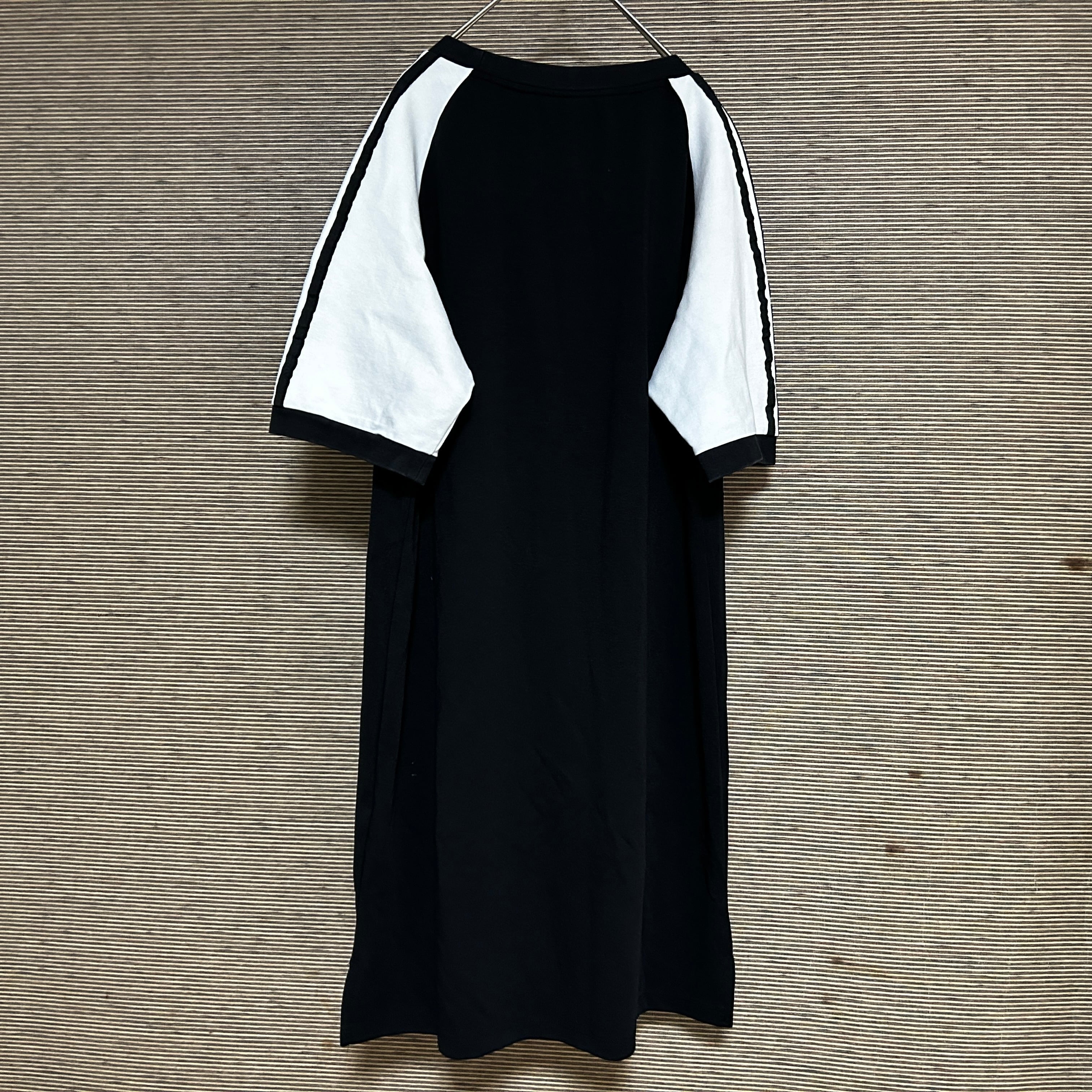 アディダス 半袖ワンピース チュニック黒 刺繍 Mトレフォイル 三本線N1 古着 レディース ワンポイントロゴ 人気